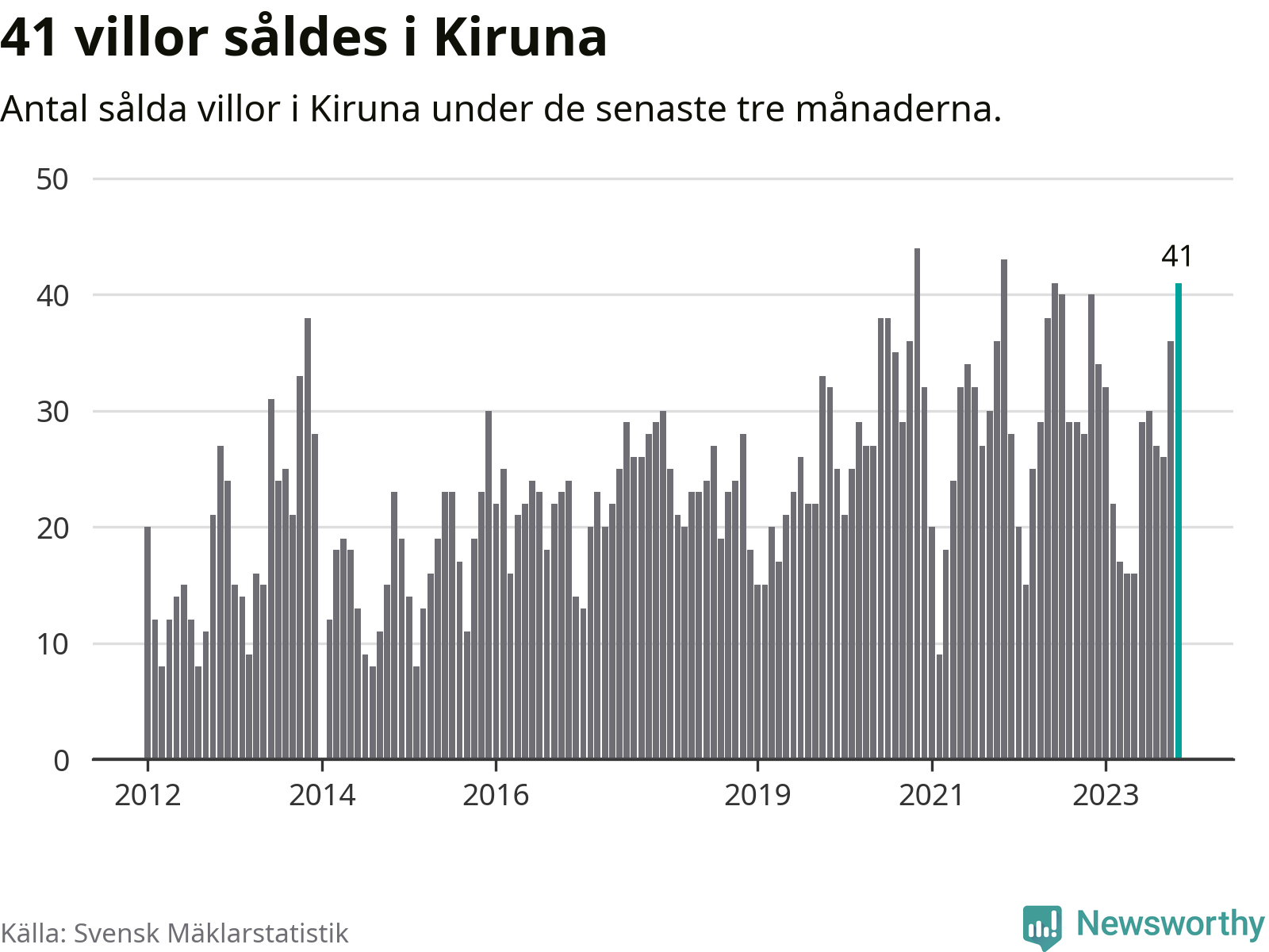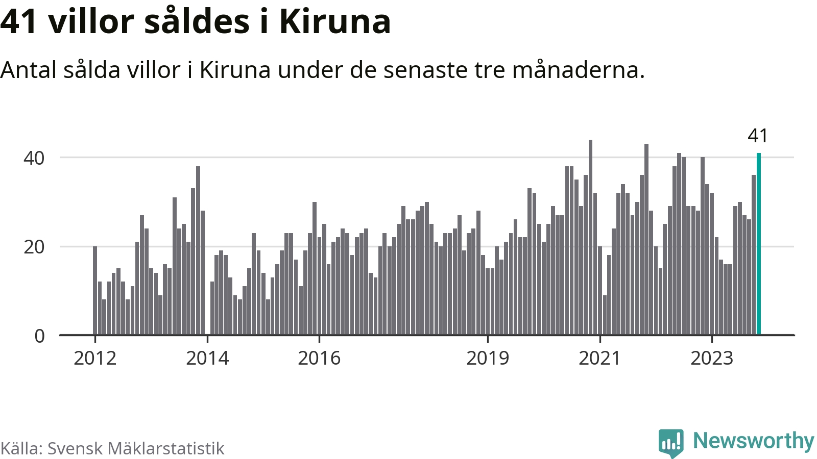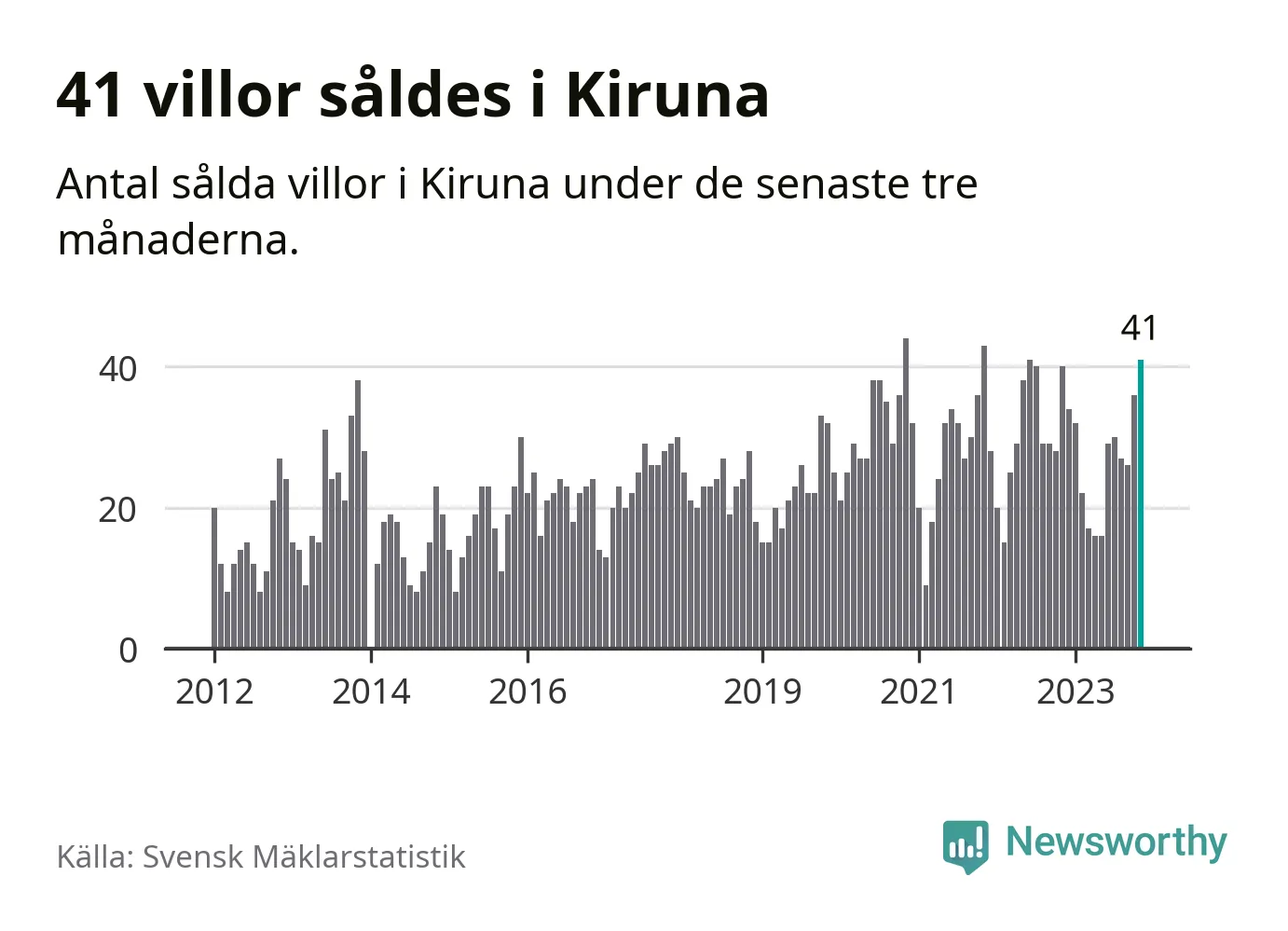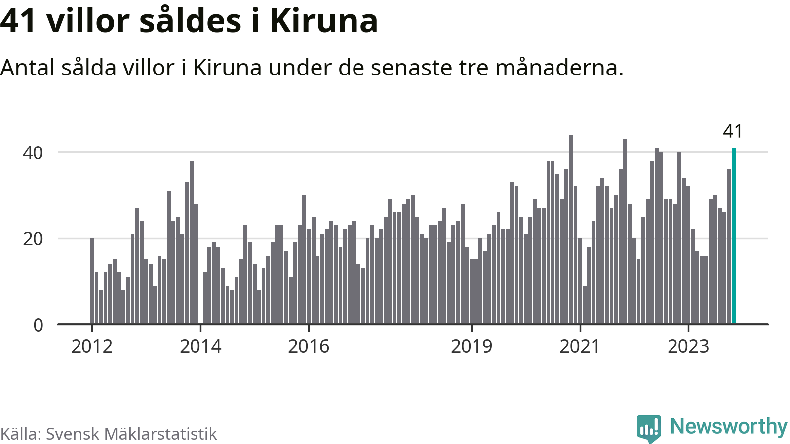 Mellan september och november gjordes sammanlagt 41 affärer med villor i Kiruna kommun. Det kan jämföras med 40 vid motsvarande tid i fjol.
