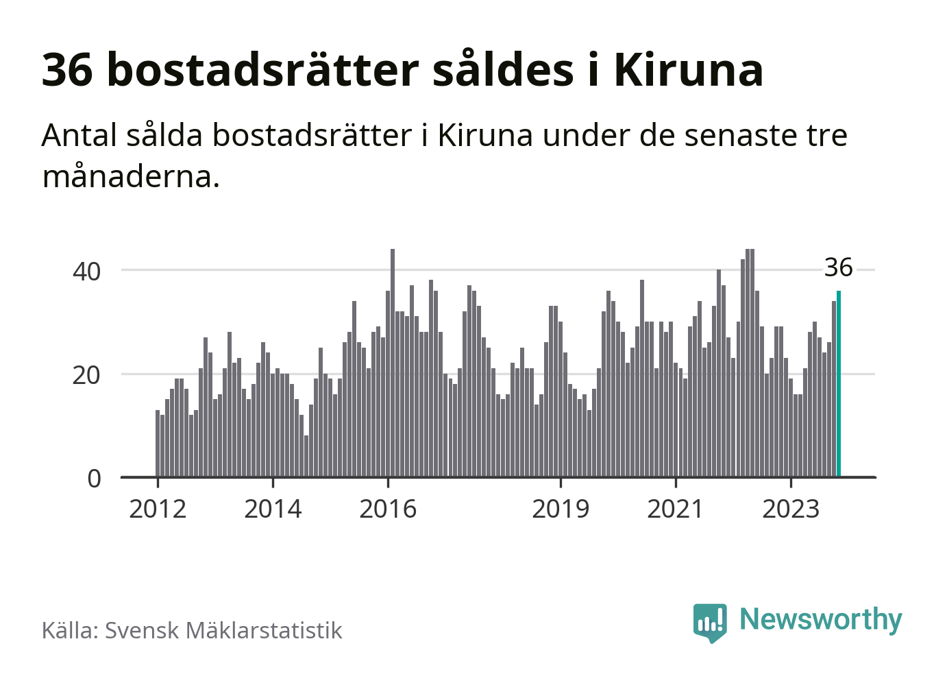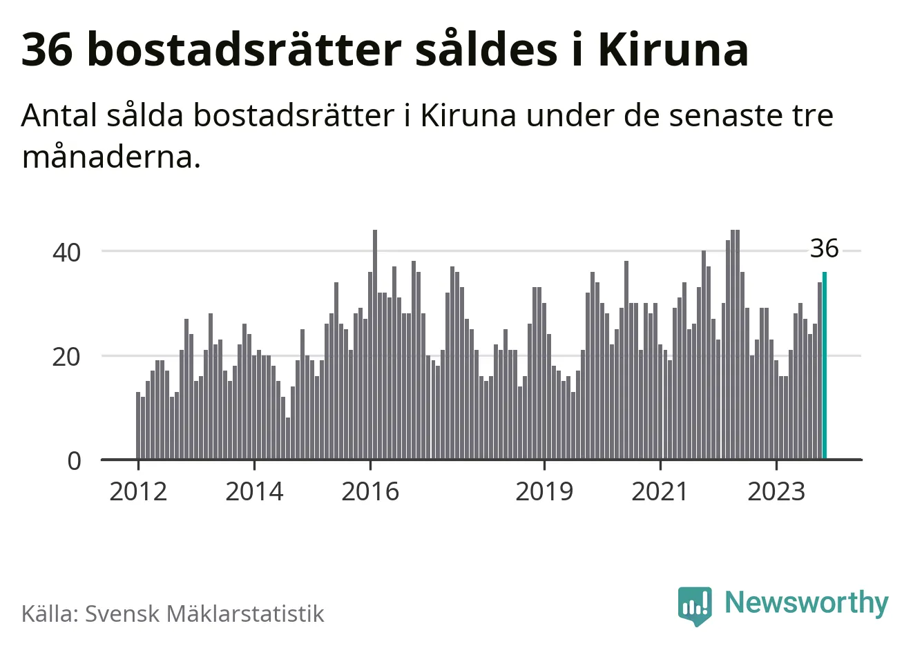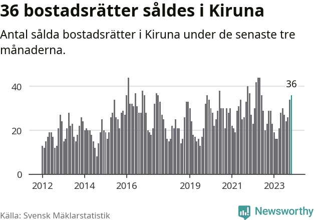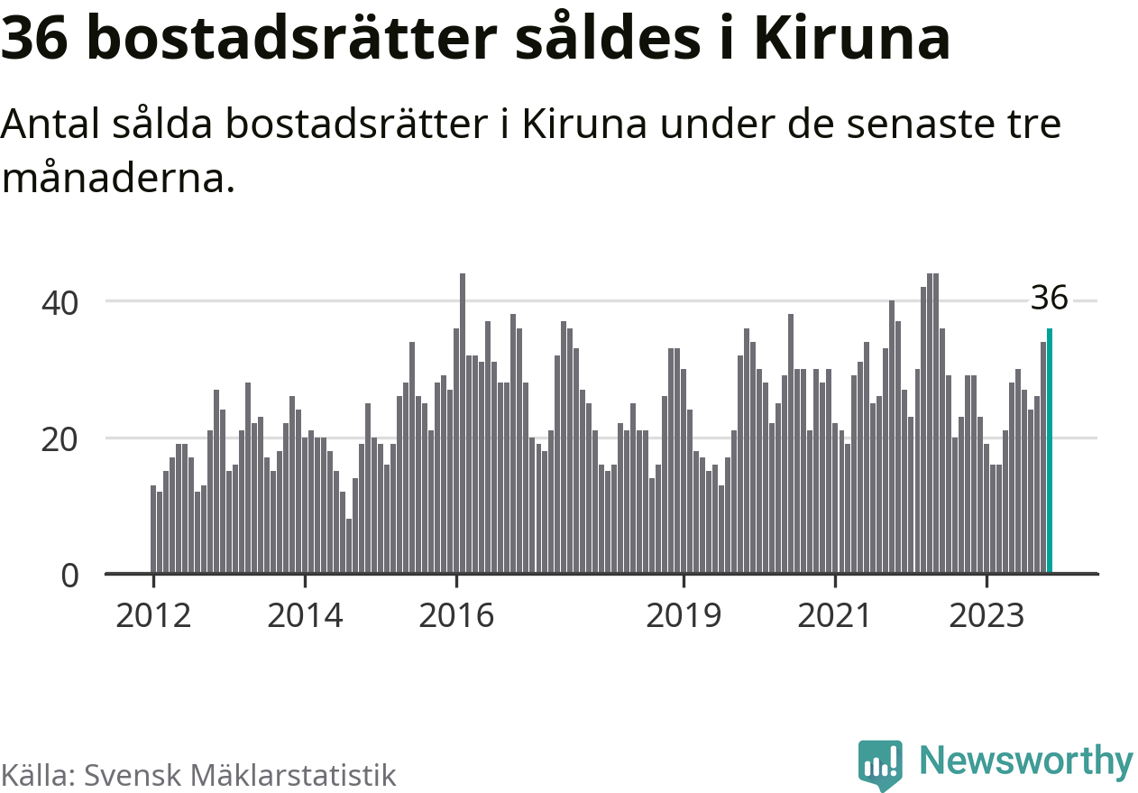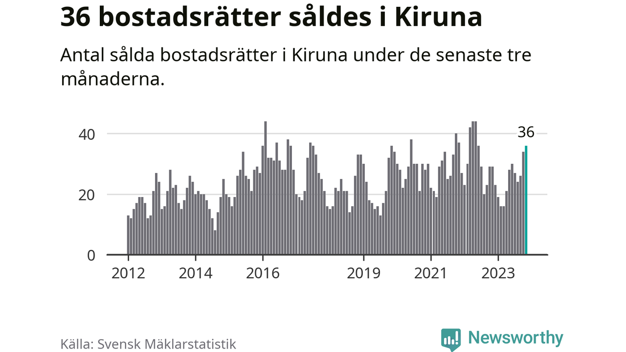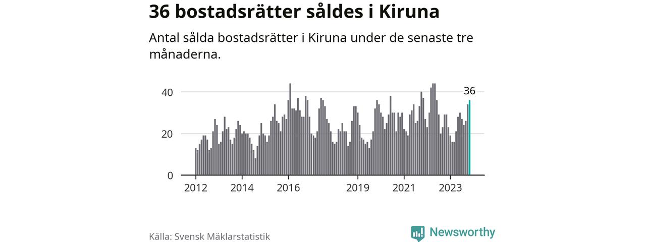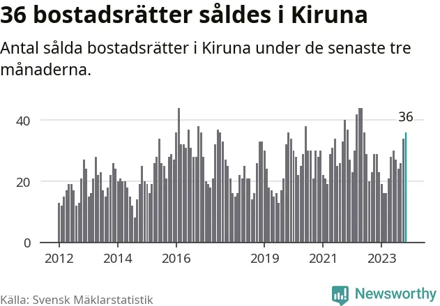 Mellan september och november gjordes sammanlagt 36 affärer med bostadsrätter i Kiruna kommun. Det kan jämföras med 29 vid motsvarande tid i fjol.