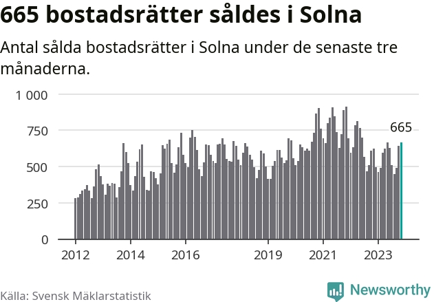 | Solna | −3 % ▼ | 665 | 3,9 miljoner |