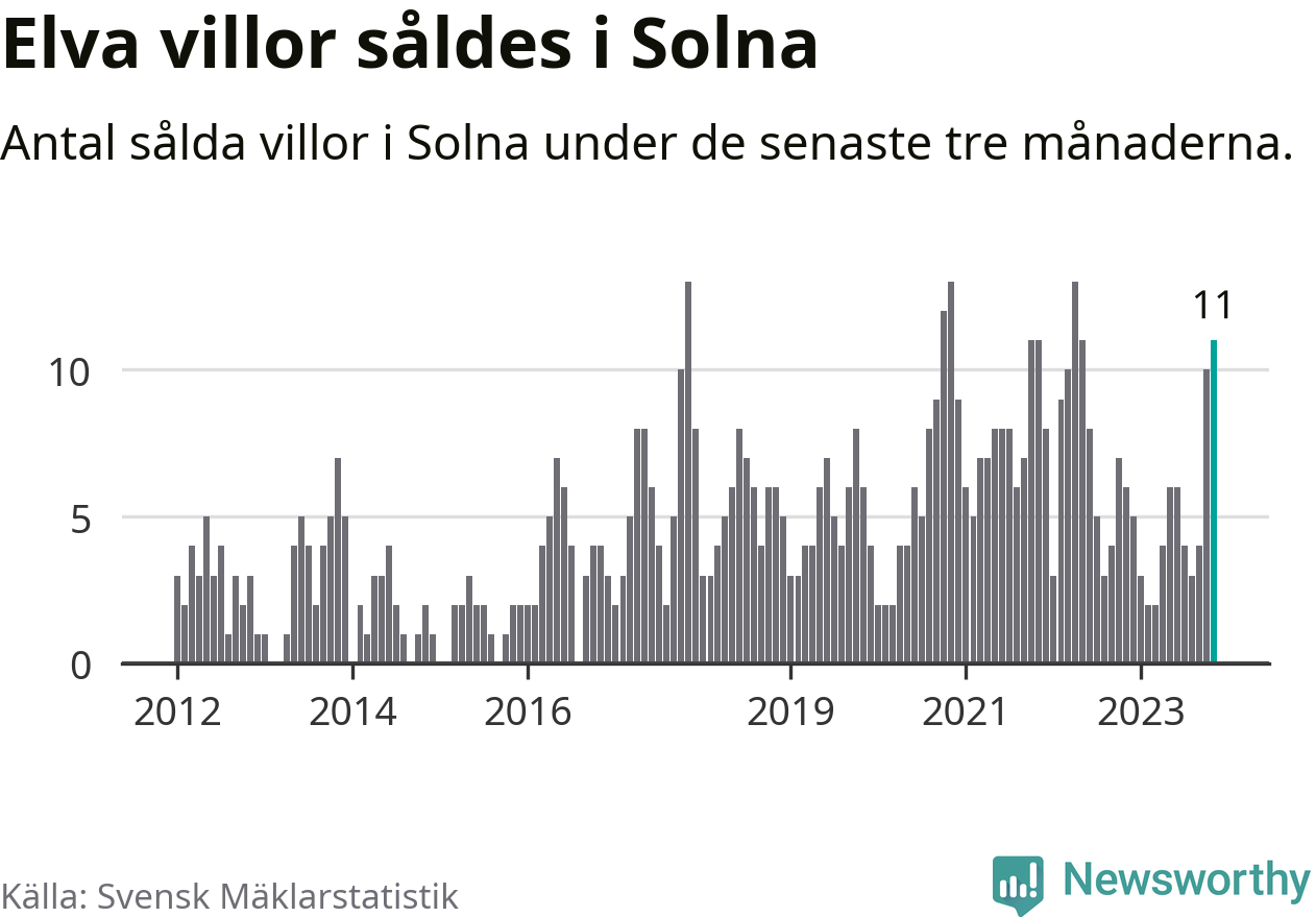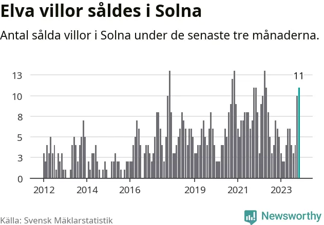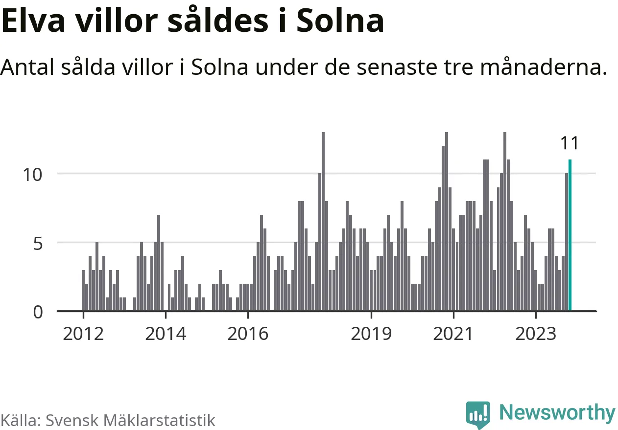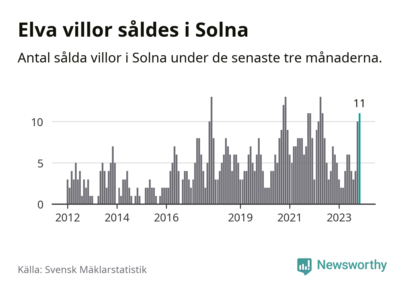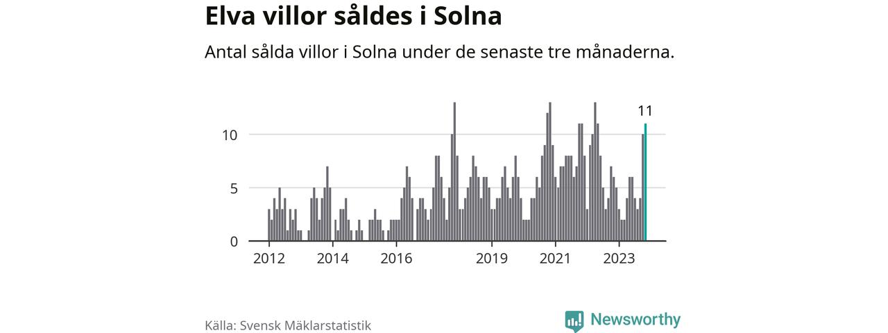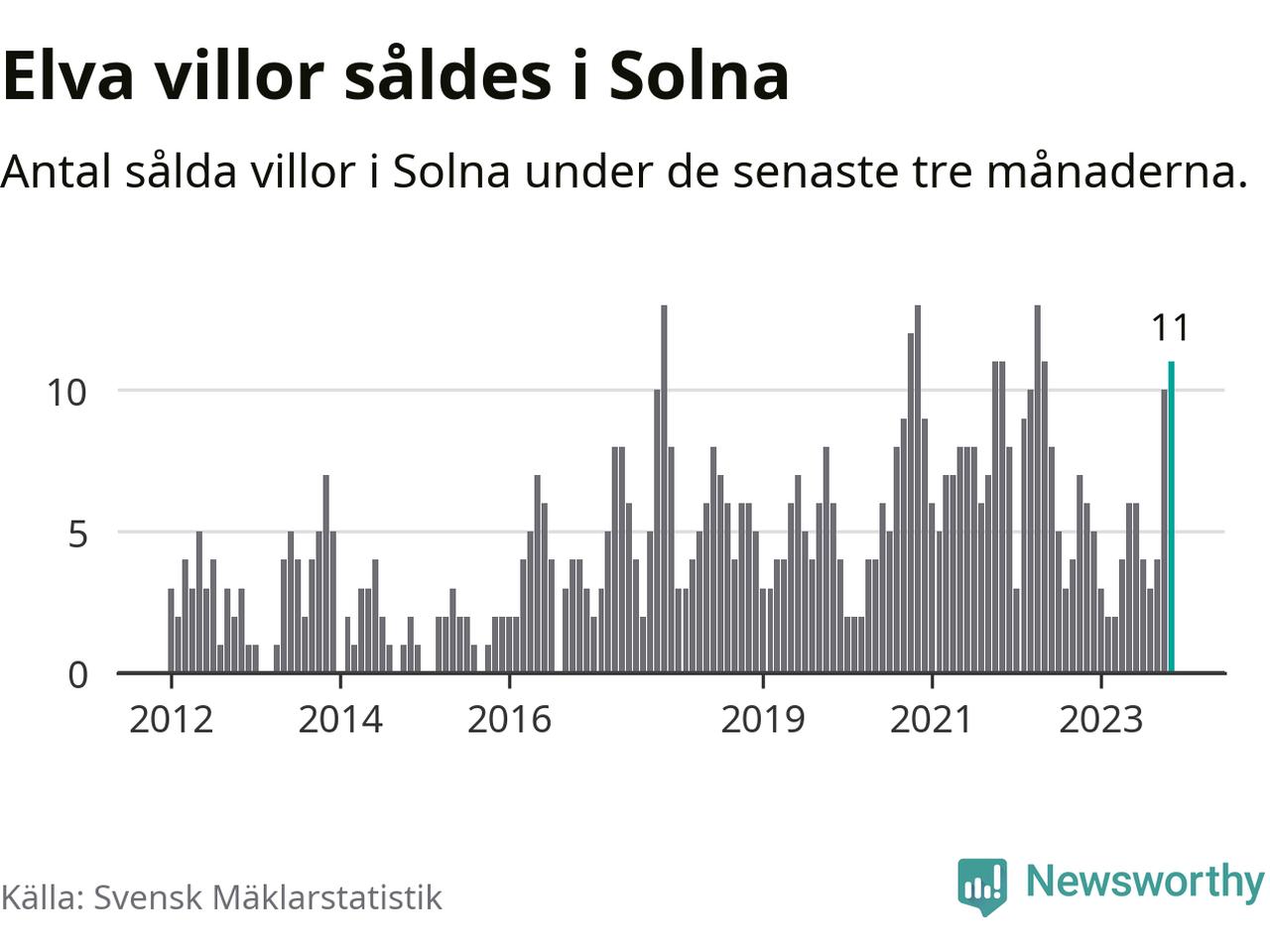 Mellan september och november gjordes sammanlagt elva affärer med villor i Solna kommun. Det kan jämföras med sex vid motsvarande tid i fjol.
