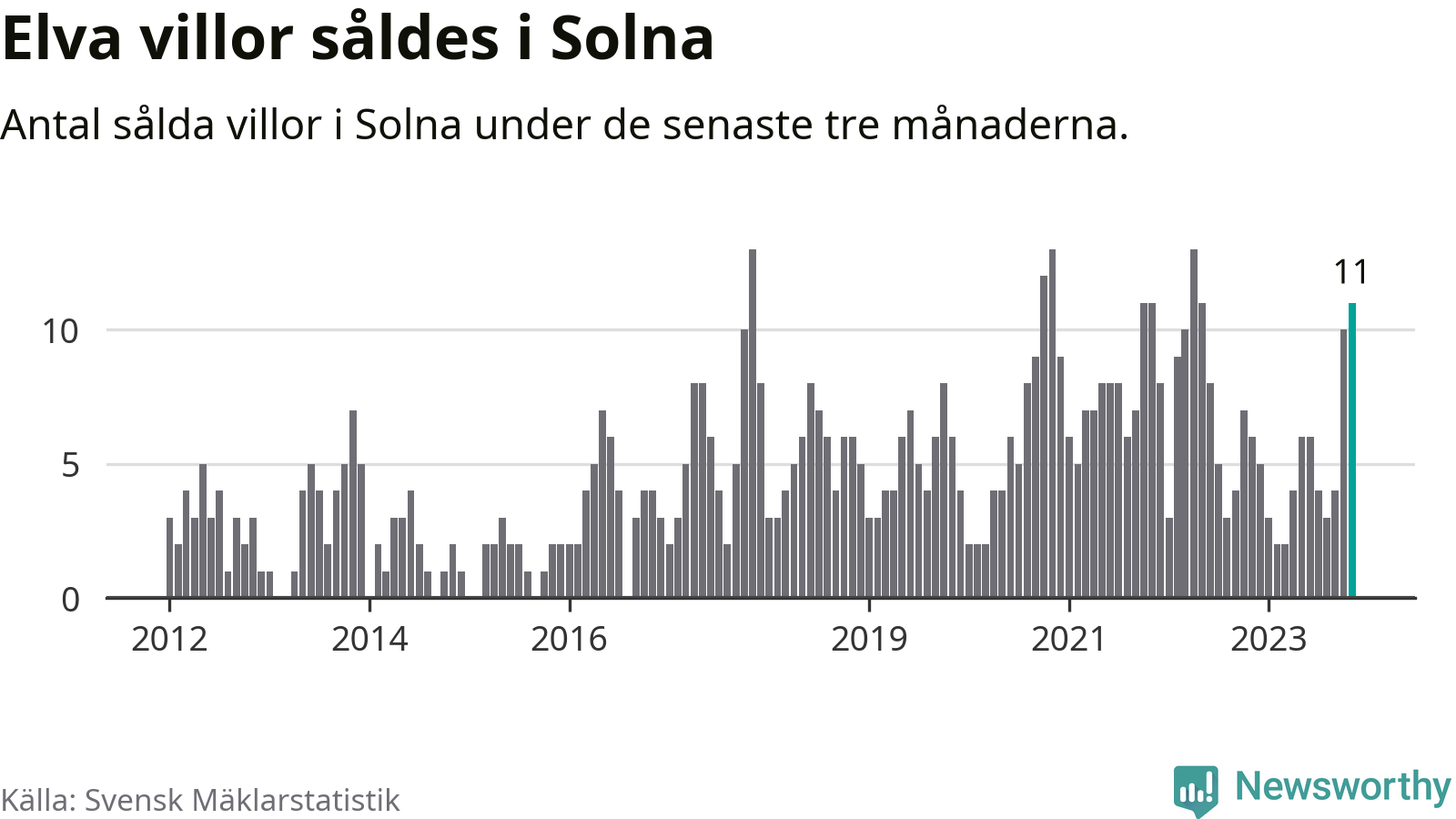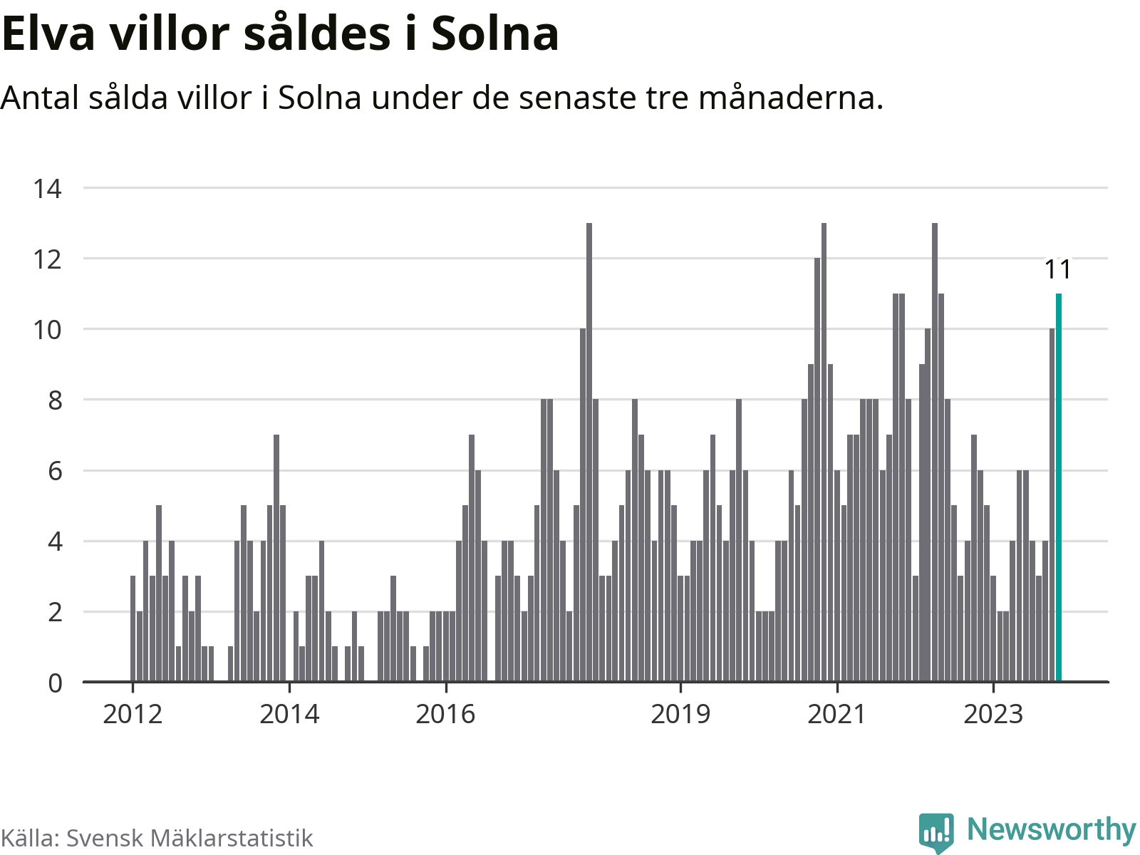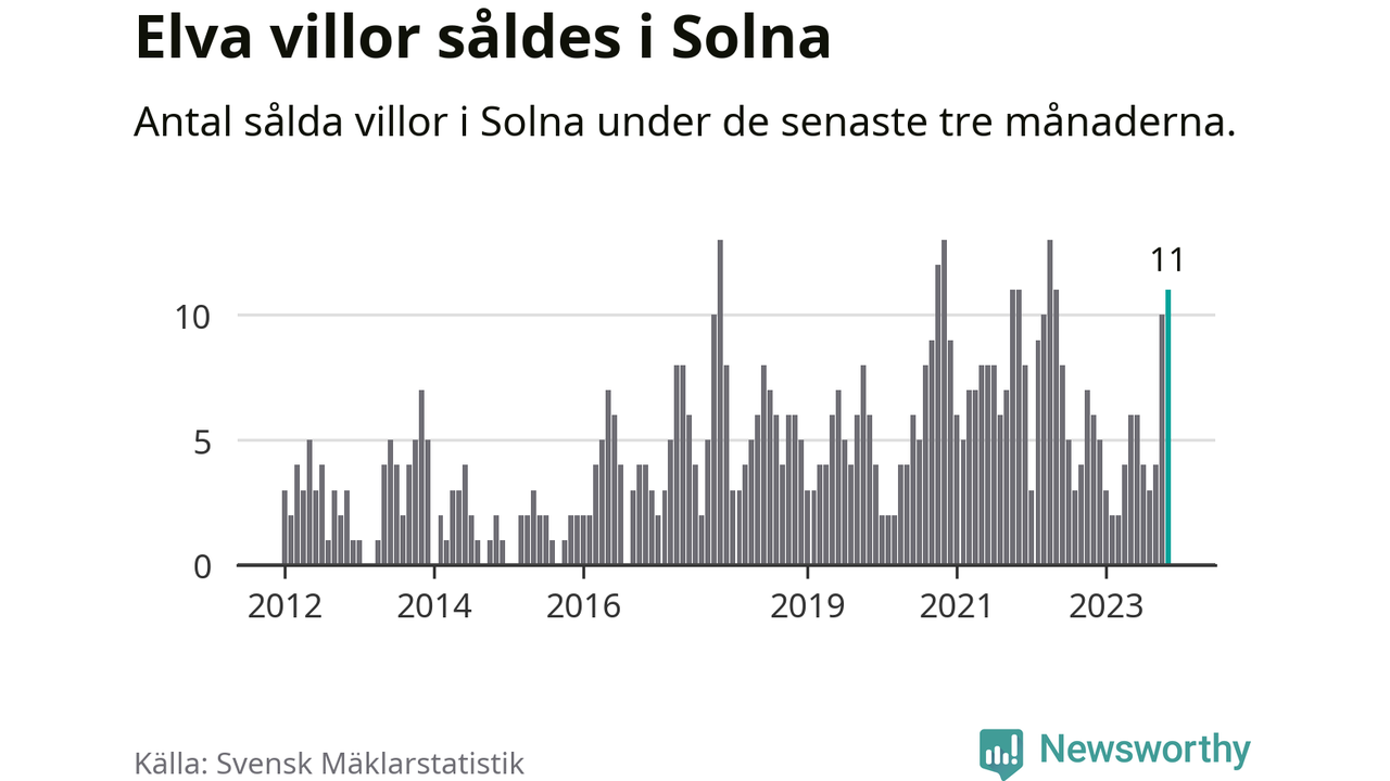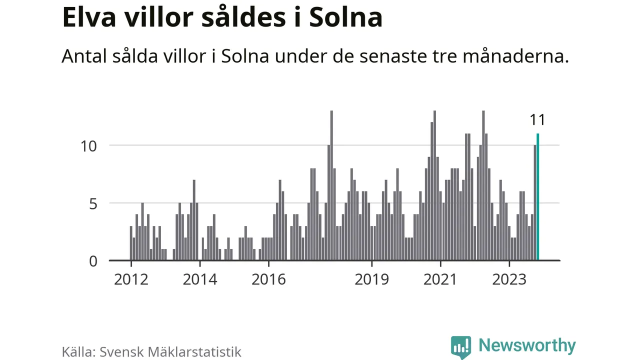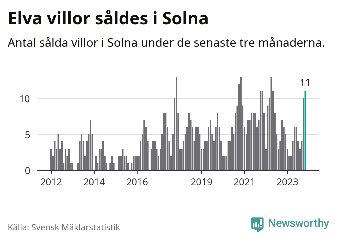 Mellan september och november gjordes sammanlagt elva affärer med villor i Solna kommun. Det kan jämföras med sex vid motsvarande tid i fjol.