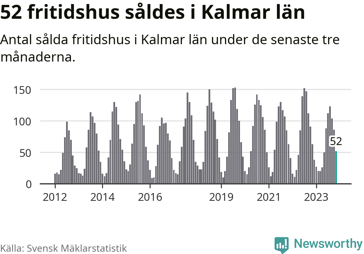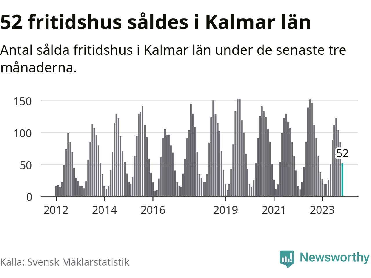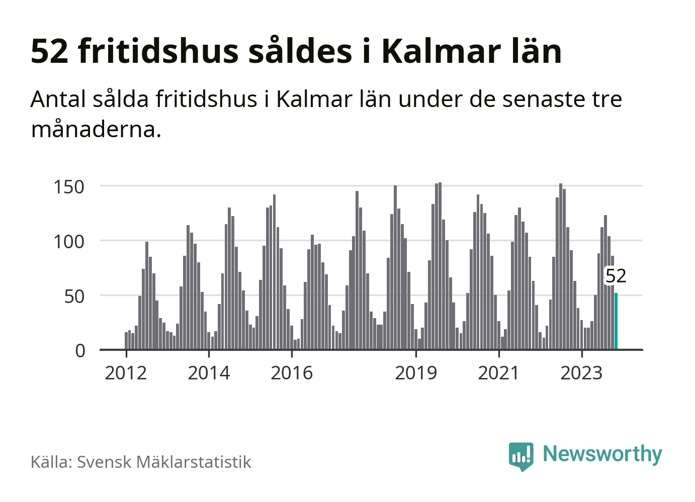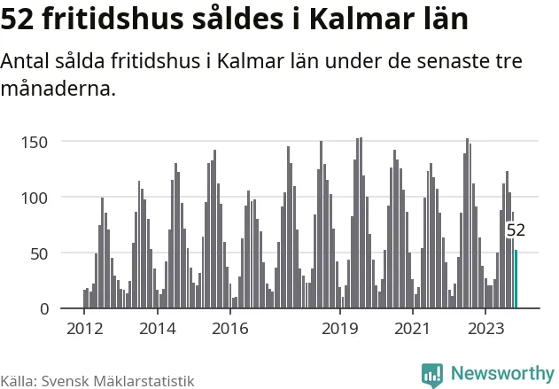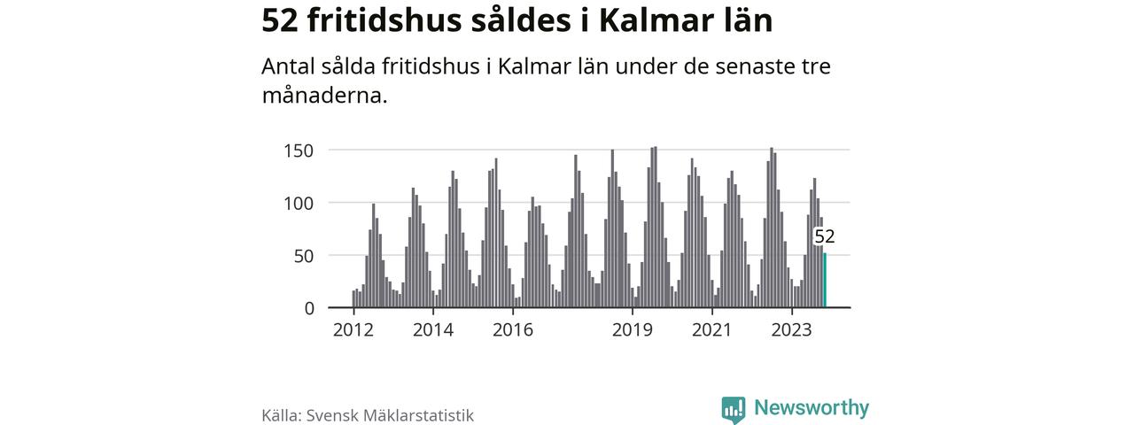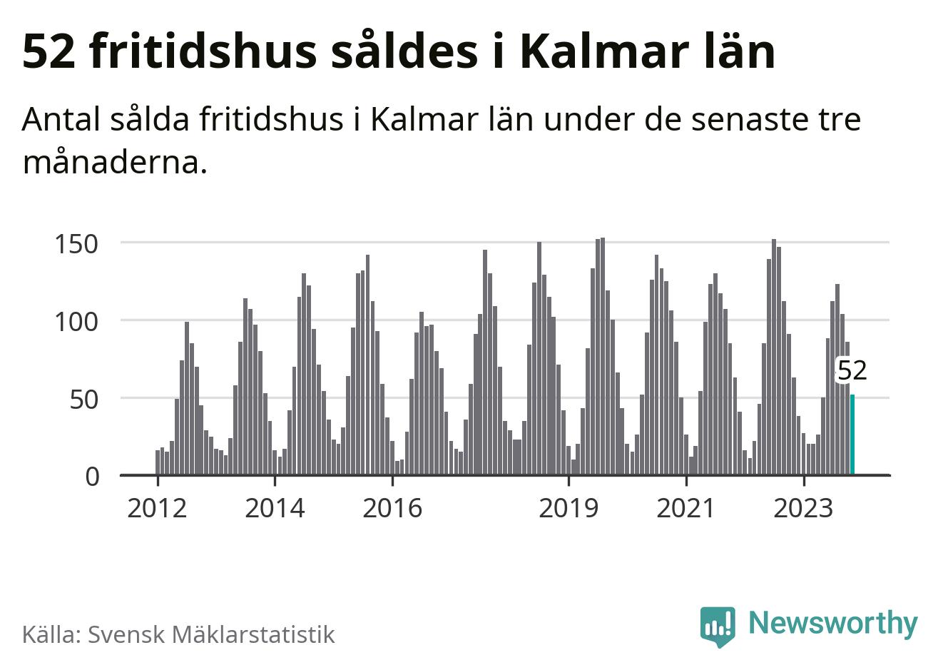 Sammanlagt såldes 52 fritidshus i Kalmar län mellan september och november till ett genomsnittligt pris på 2,1 miljoner kronor. I fjol gjordes 63 affärer vid den här tiden på året.