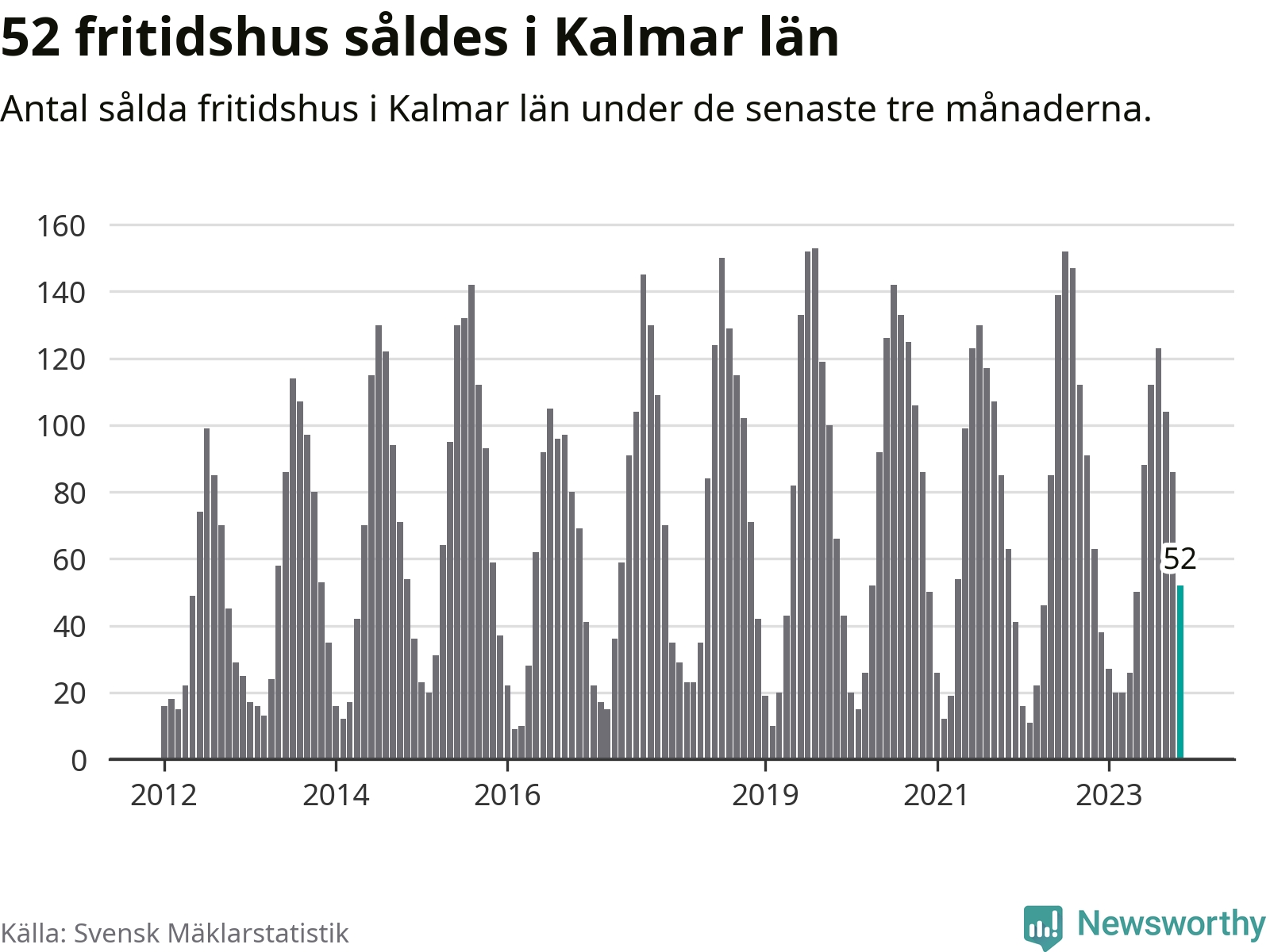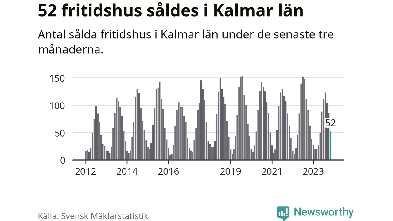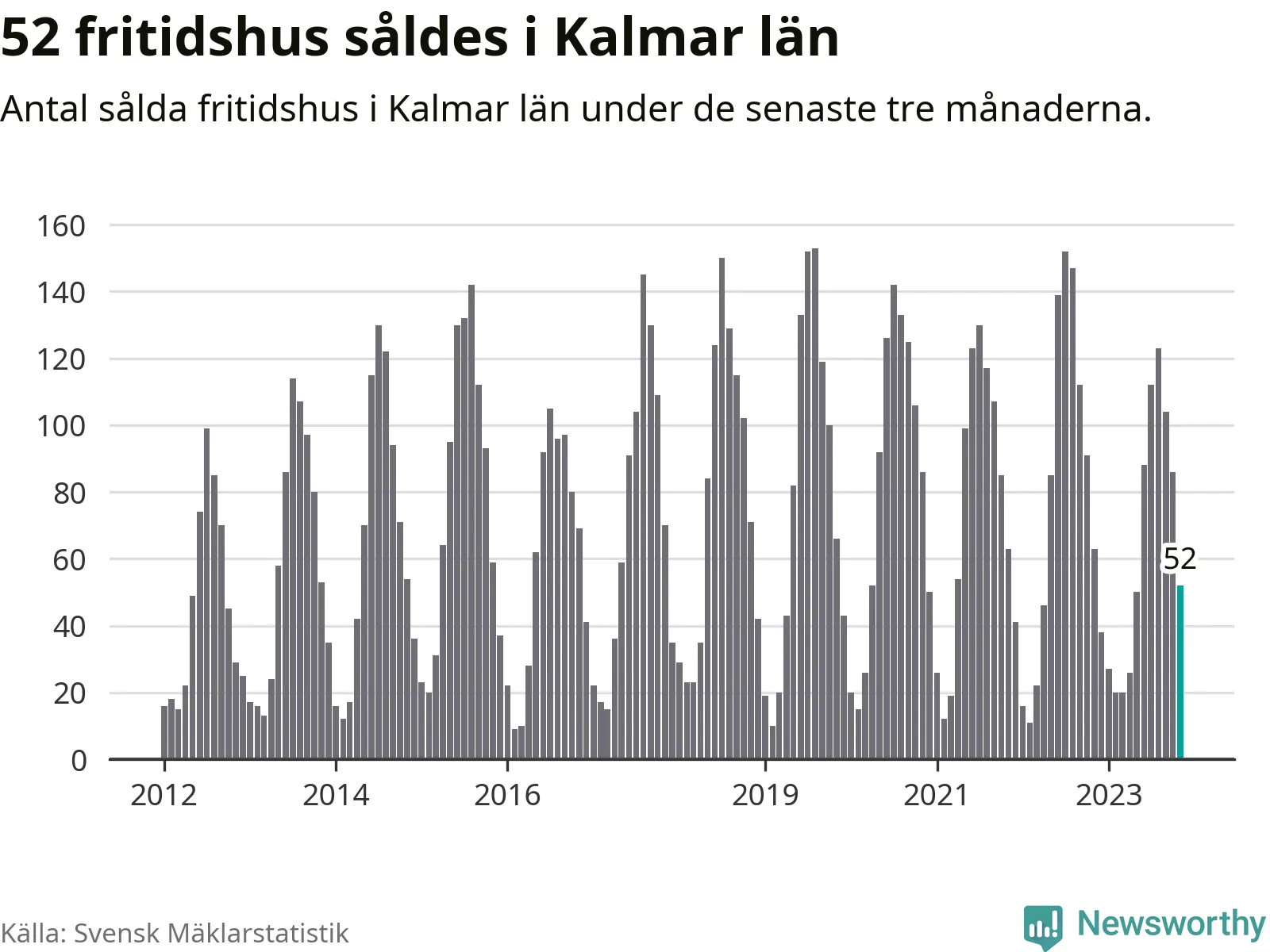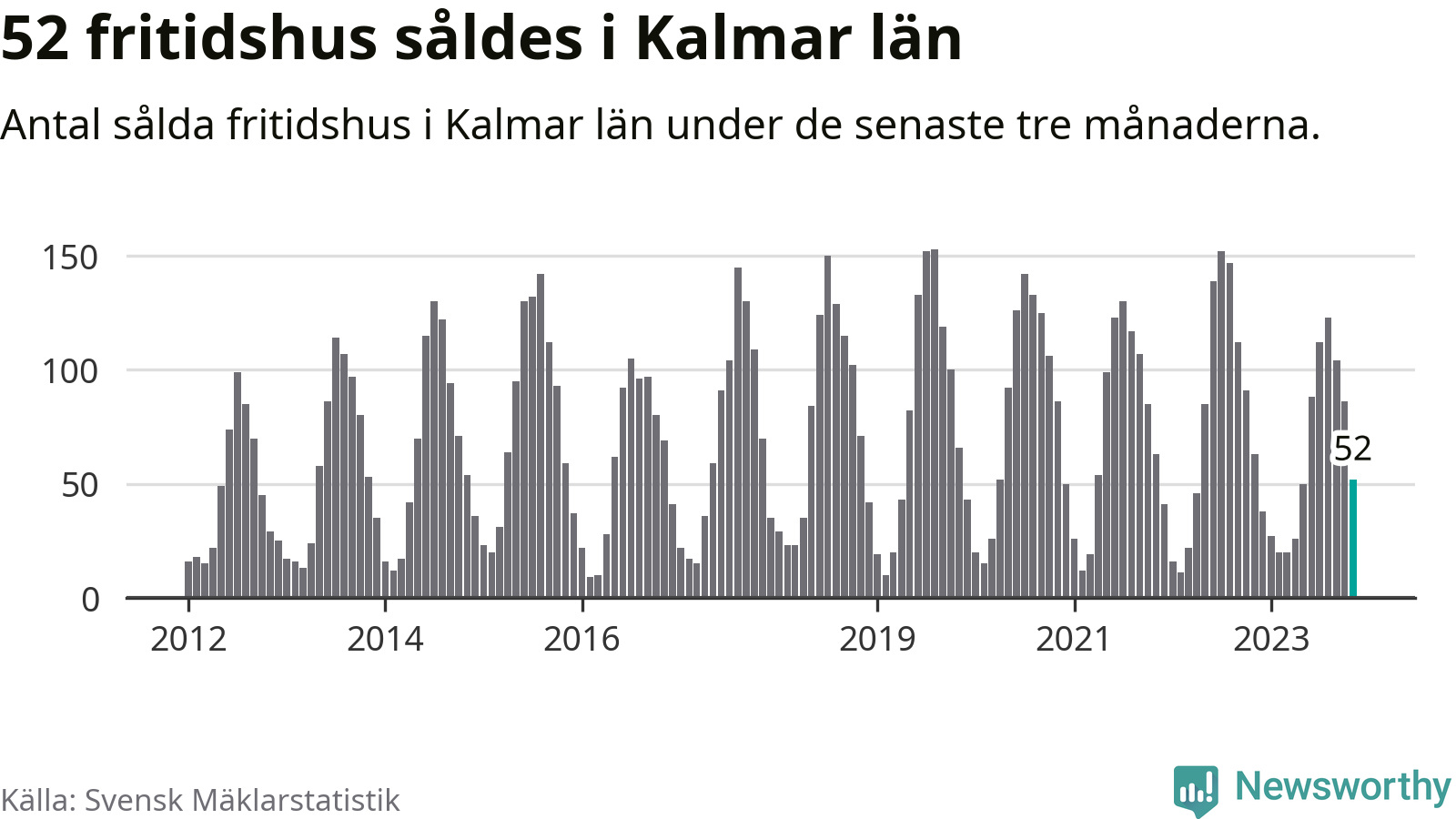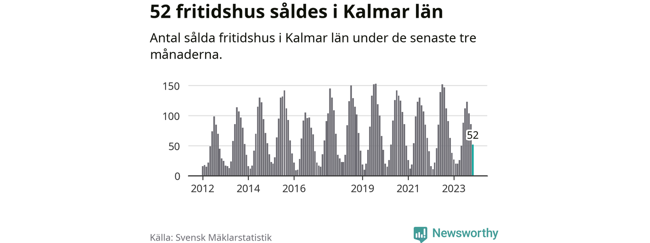 Sammanlagt såldes 52 fritidshus i Kalmar län mellan september och november till ett genomsnittligt pris på 2,1 miljoner kronor. I fjol gjordes 63 affärer vid den här tiden på året.