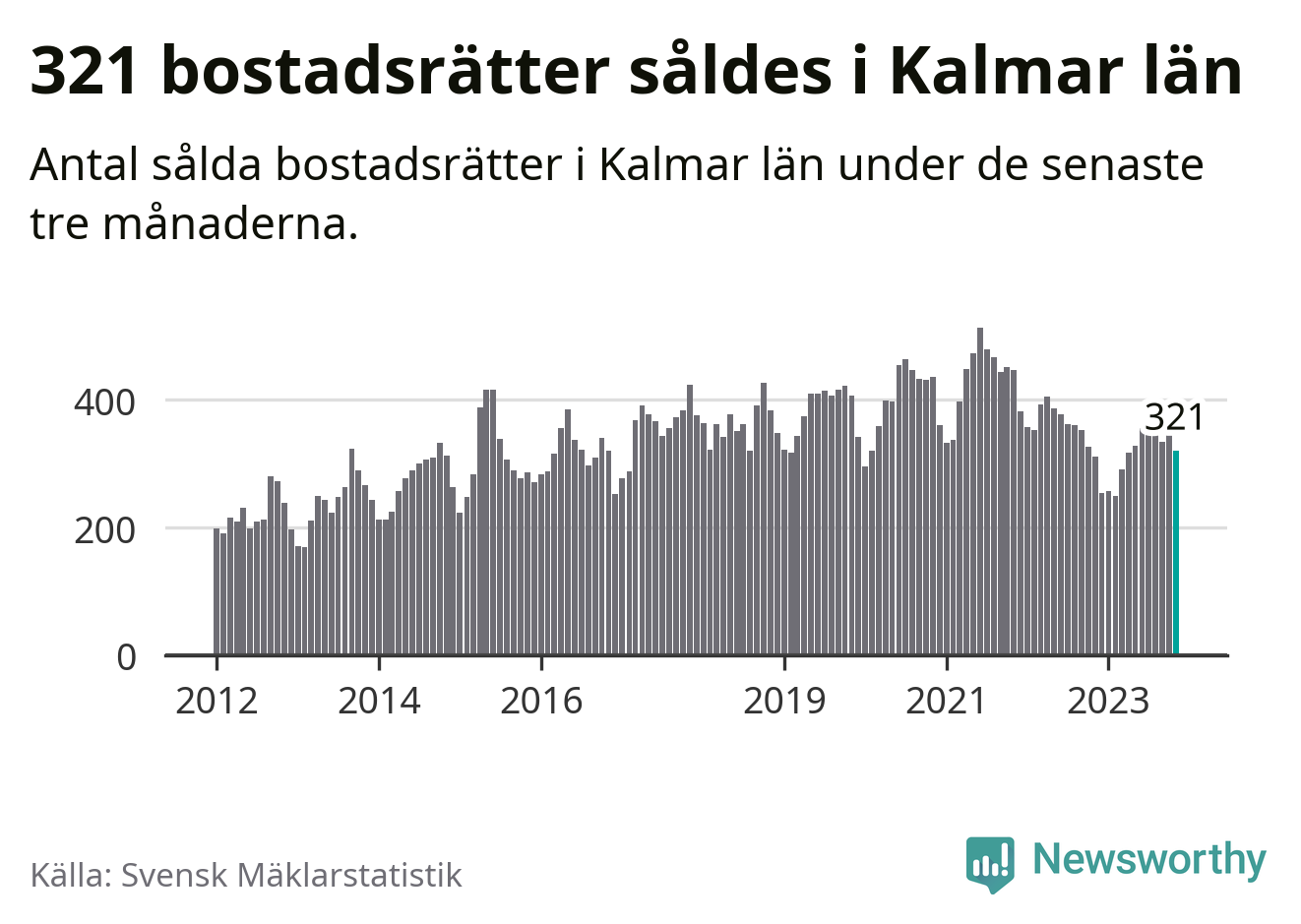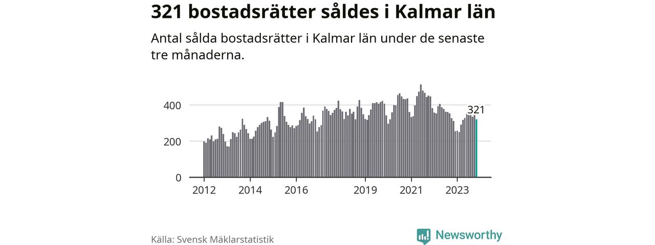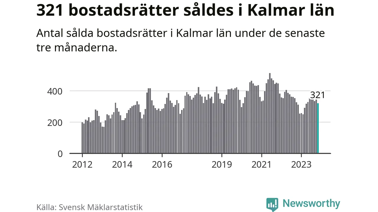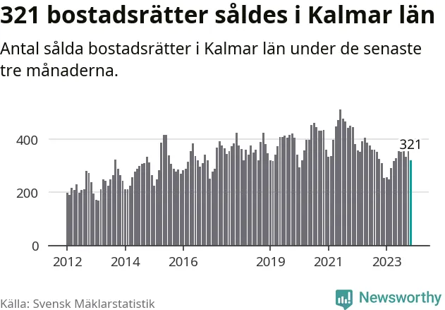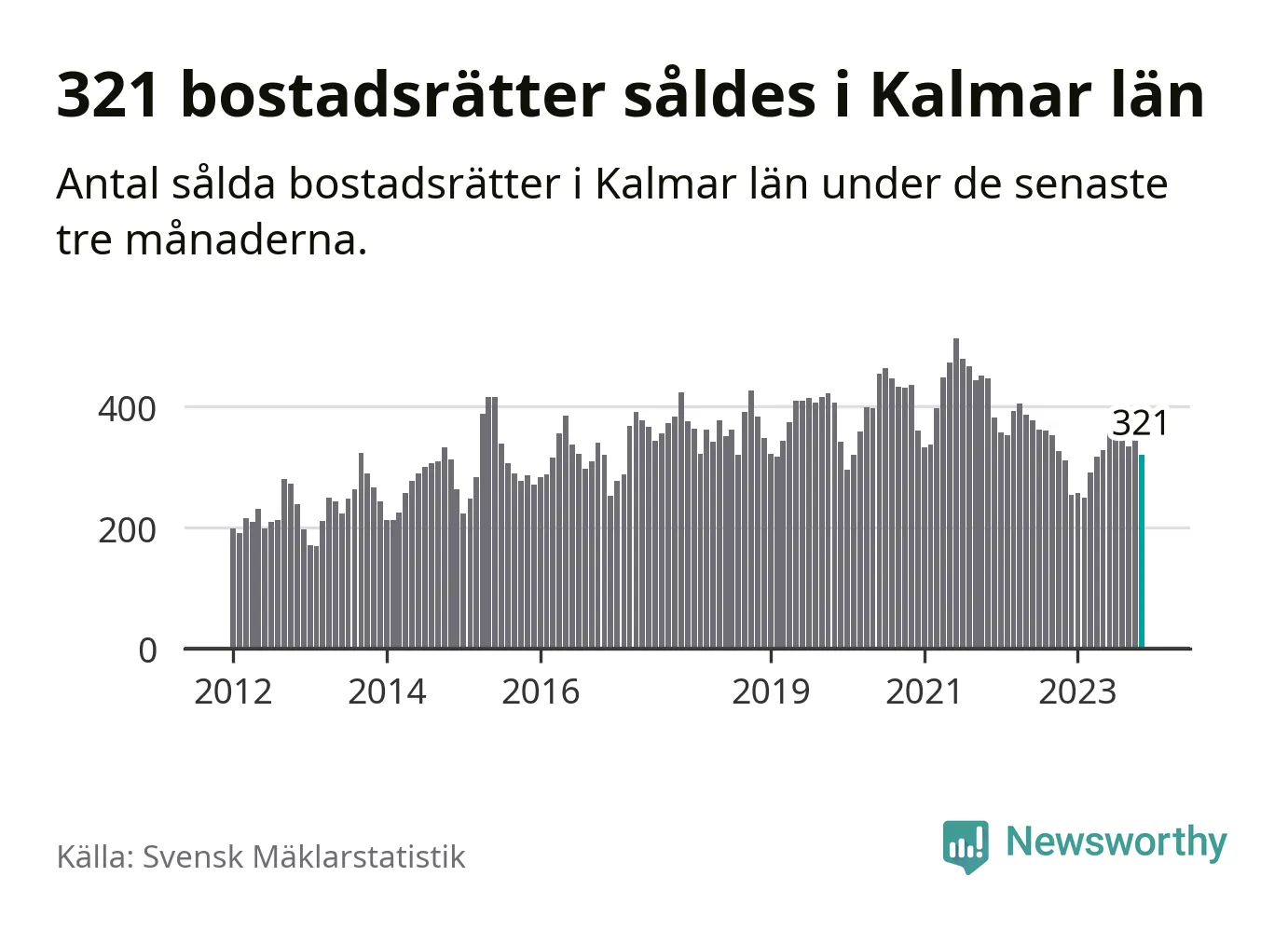Sammanlagt såldes 321 bostadsrätter i Kalmar län mellan september och november till ett genomsnittligt pris på 1,5 miljoner kronor. I fjol gjordes 311 affärer vid den här tiden på året.