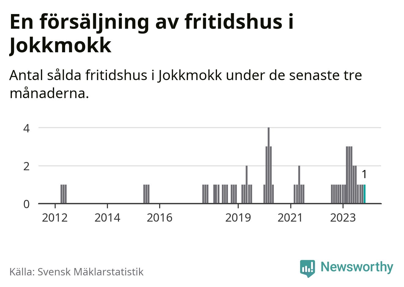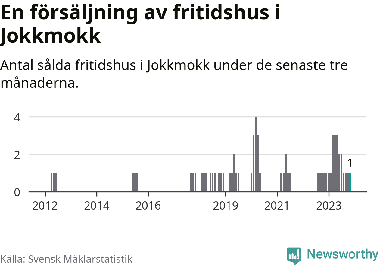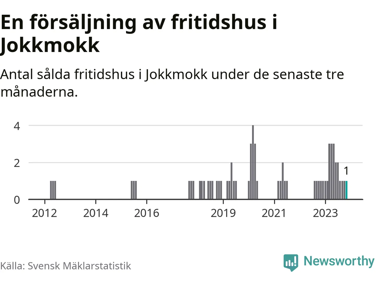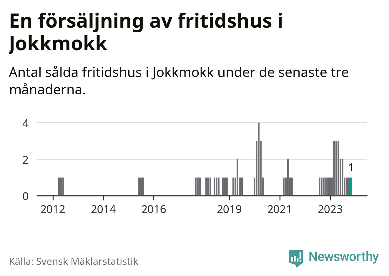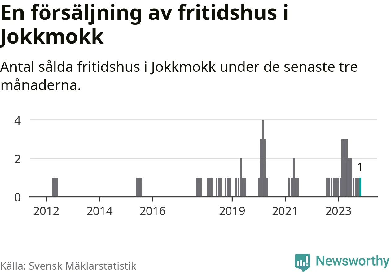 Mellan september och november gjordes sammanlagt en affär med fritidshus i Jokkmokks kommun. Det är lika många affärer som vid motsvarande tid i fjol.