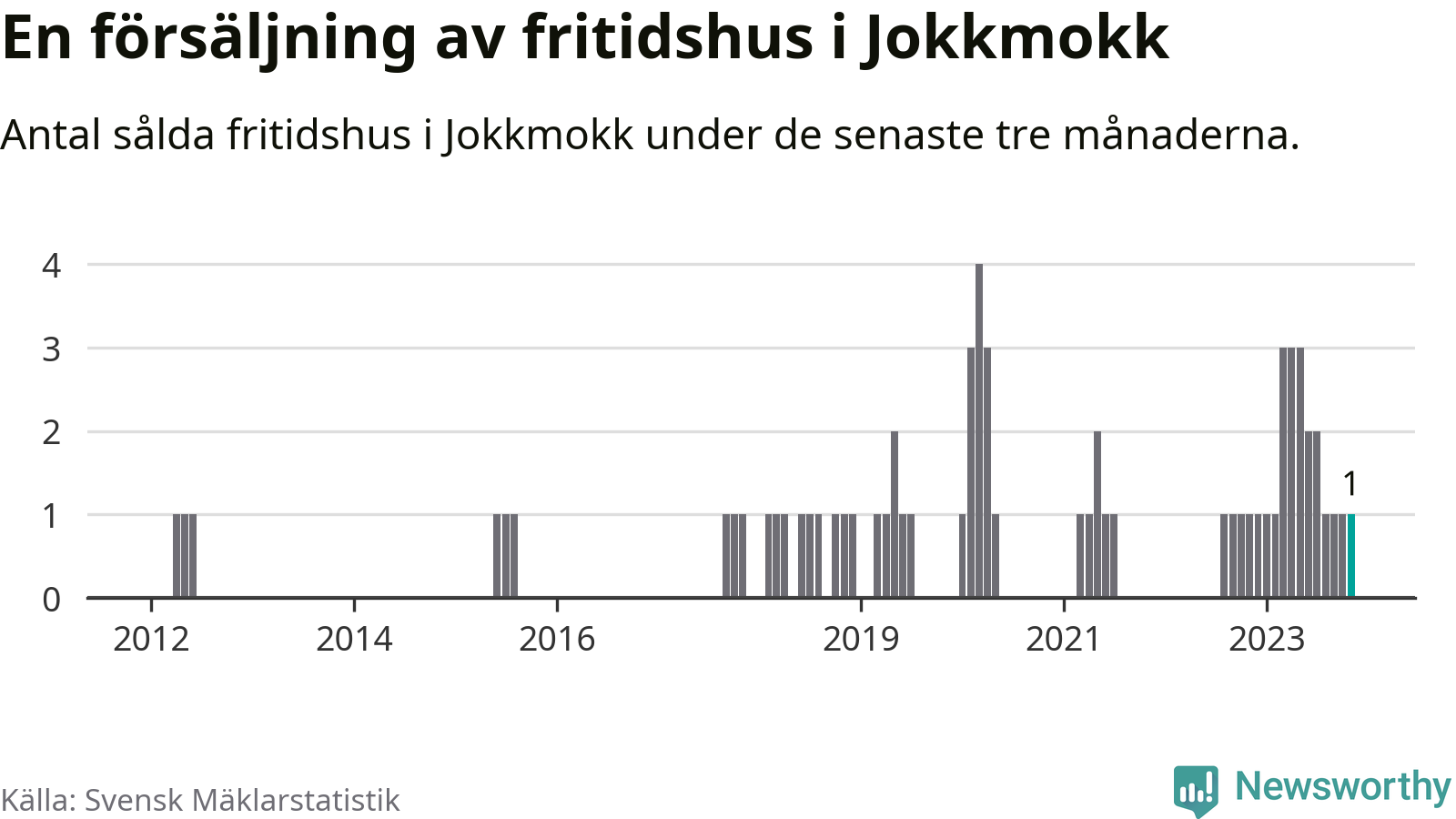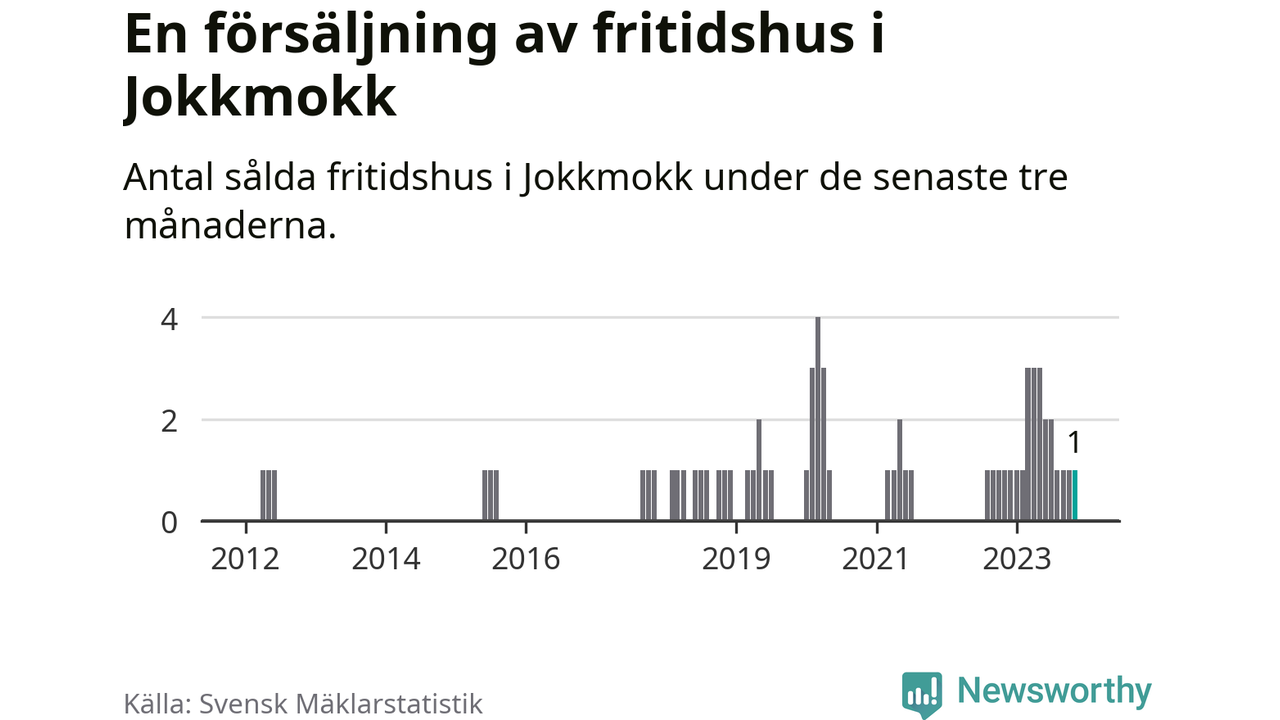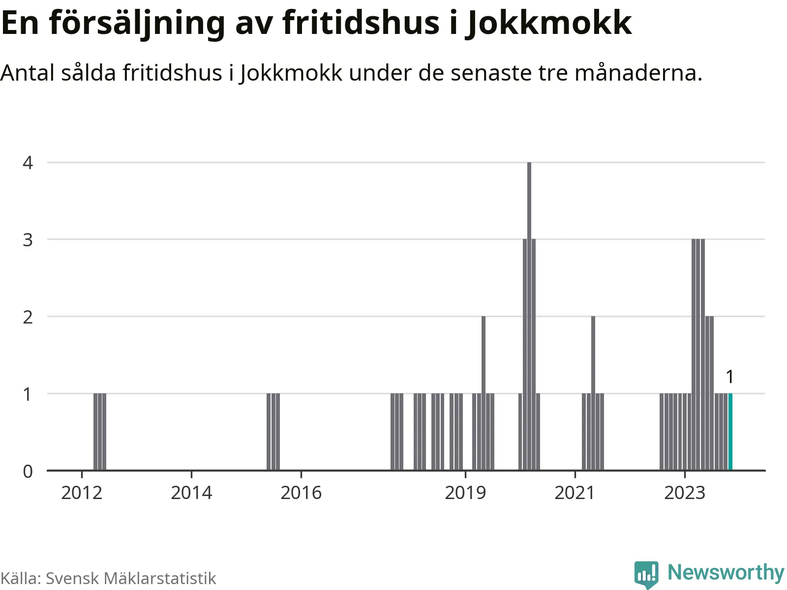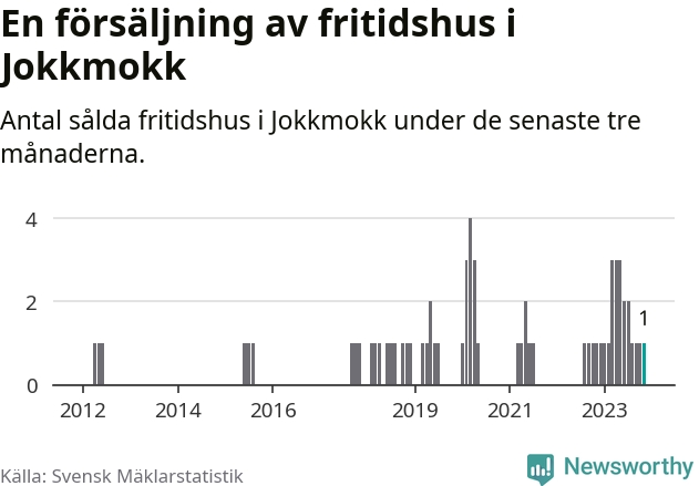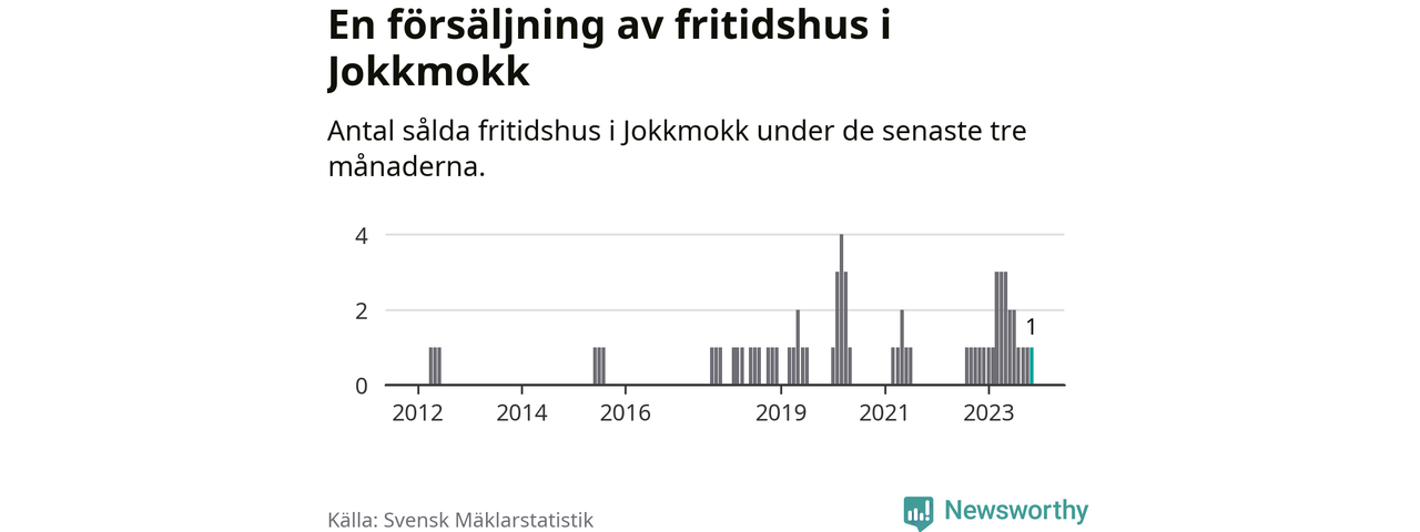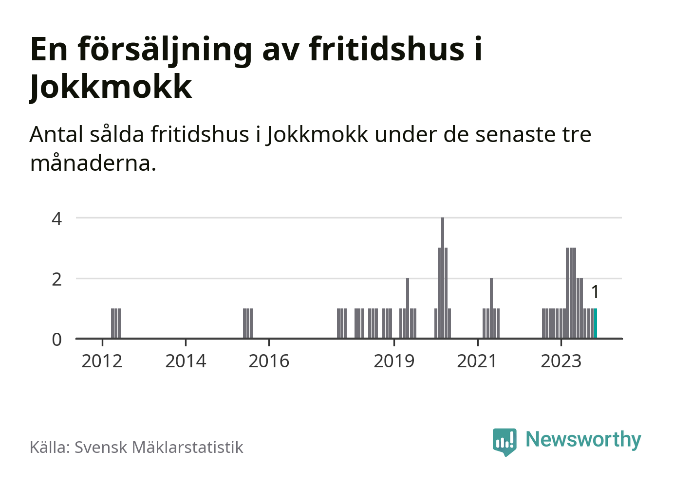 Mellan september och november gjordes sammanlagt en affär med fritidshus i Jokkmokks kommun. Det är lika många affärer som vid motsvarande tid i fjol.