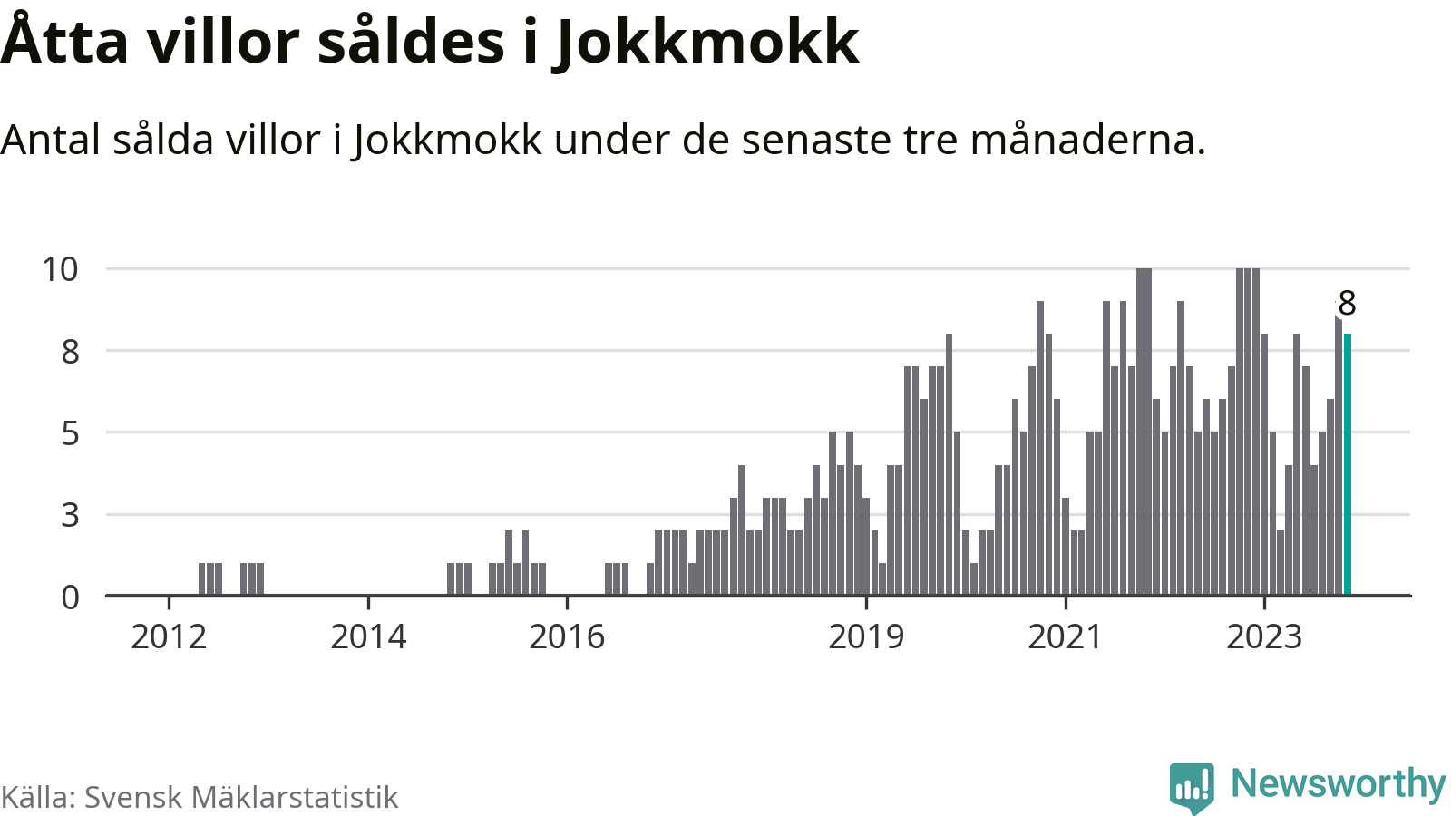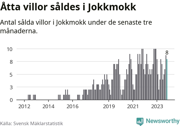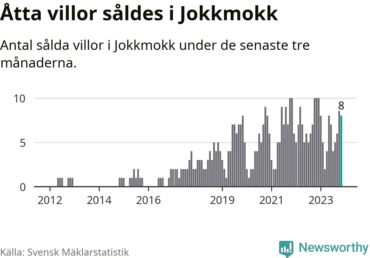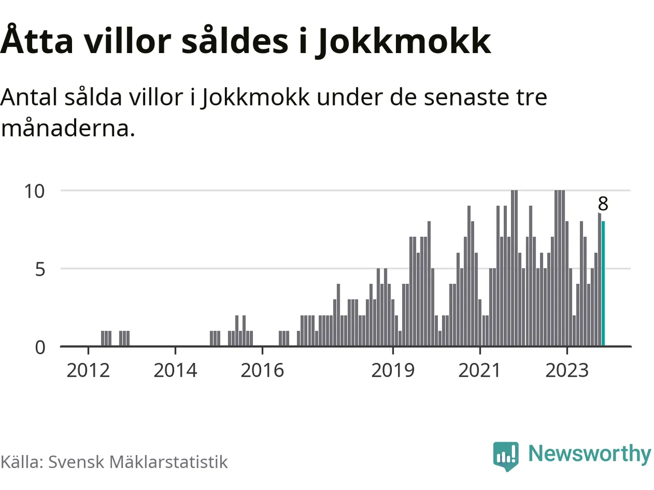 Mellan september och november gjordes sammanlagt åtta affärer med villor i Jokkmokks kommun. Det kan jämföras med tio vid motsvarande tid i fjol.