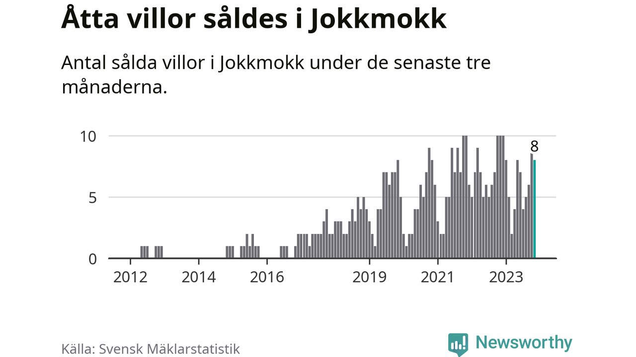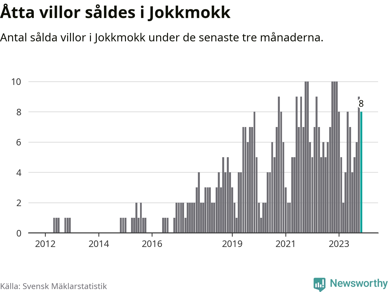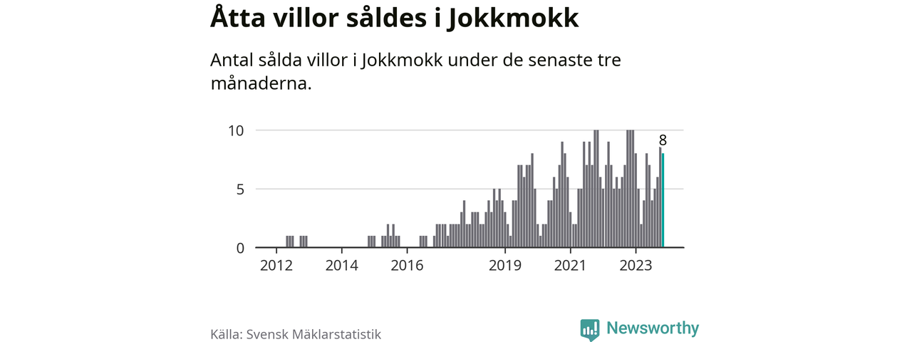 Mellan september och november gjordes sammanlagt åtta affärer med villor i Jokkmokks kommun. Det kan jämföras med tio vid motsvarande tid i fjol.