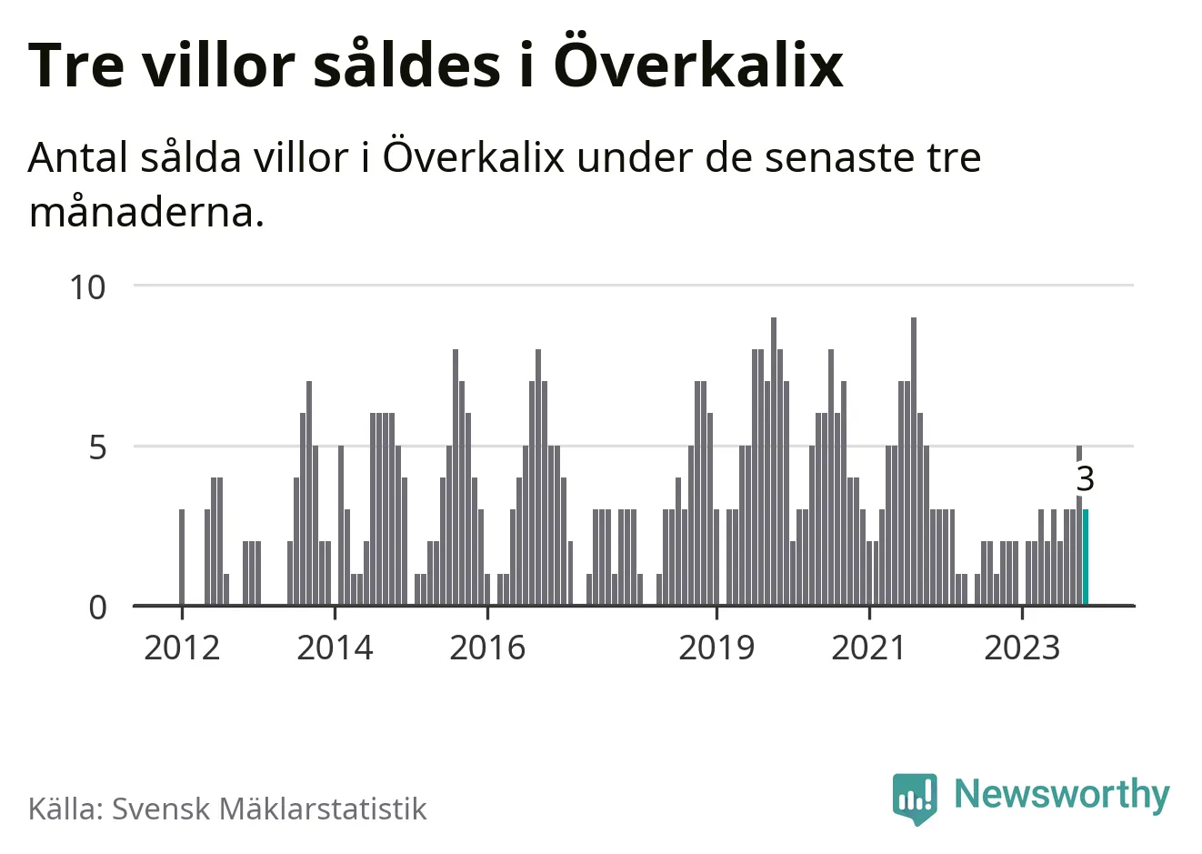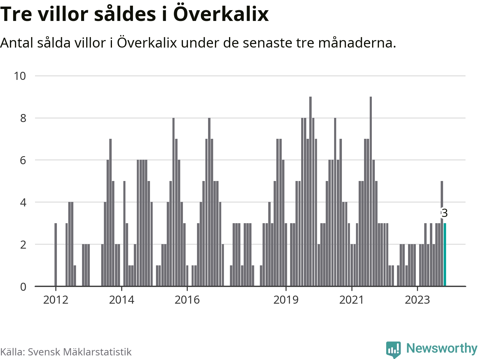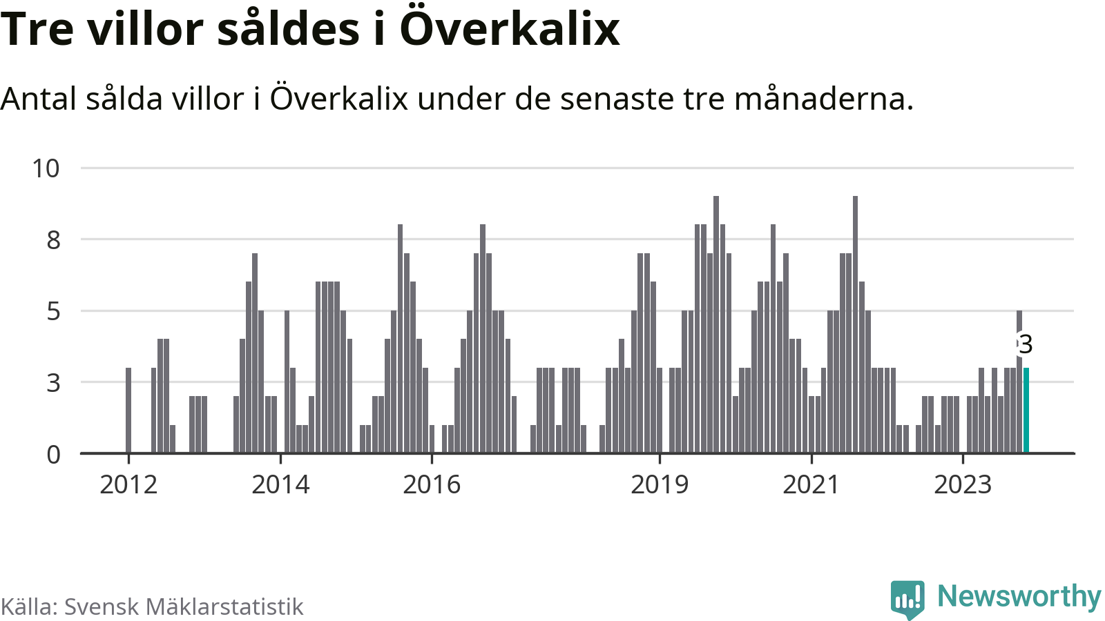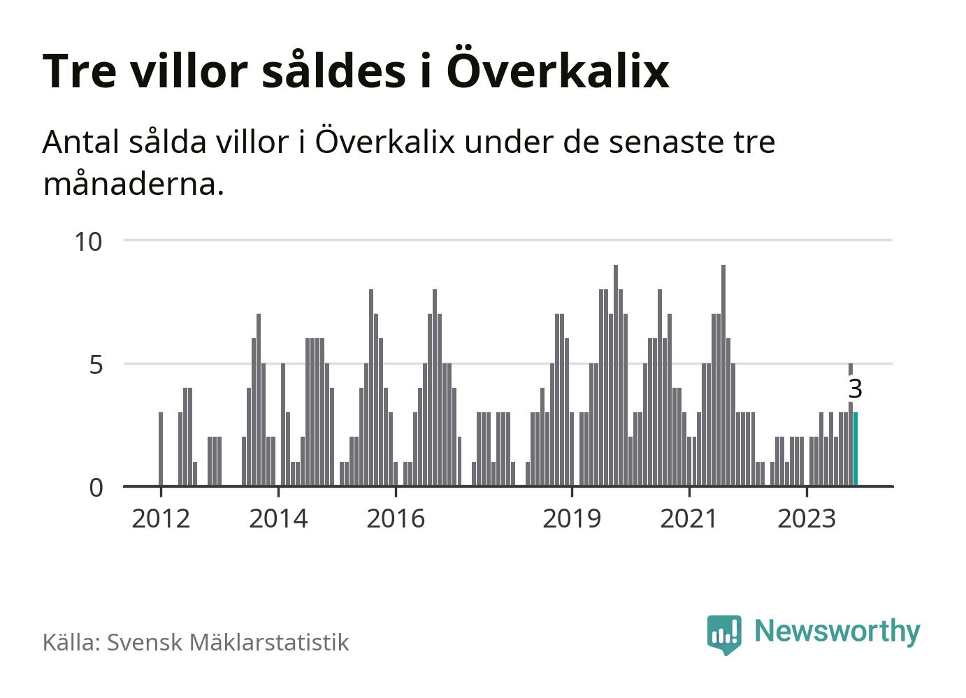 Graf: Antal sålda villor i Överkalix kommun