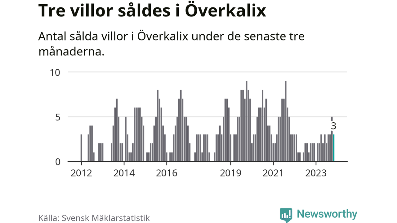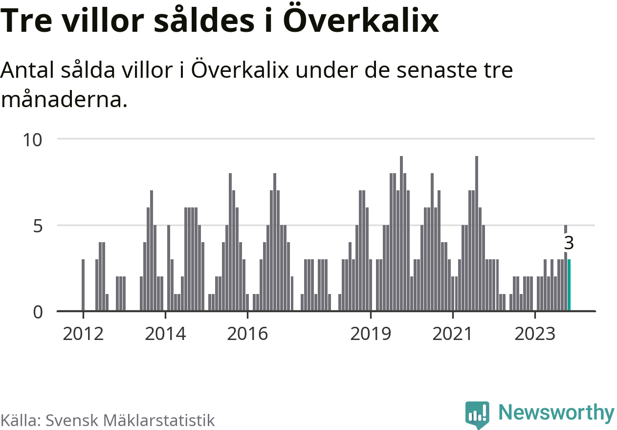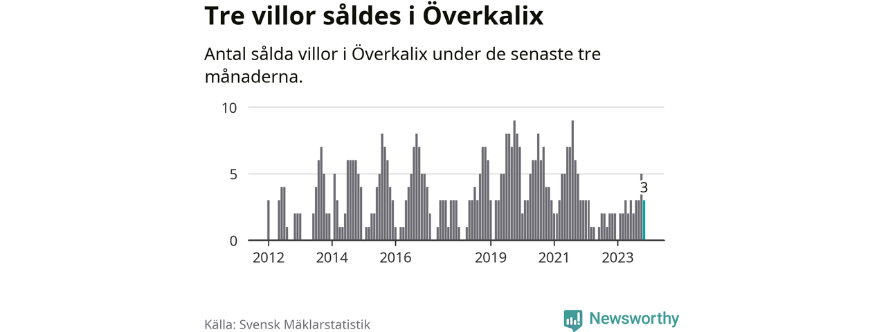 Mellan september och november gjordes sammanlagt tre affärer med villor i Överkalix kommun. Det kan jämföras med två vid motsvarande tid i fjol.