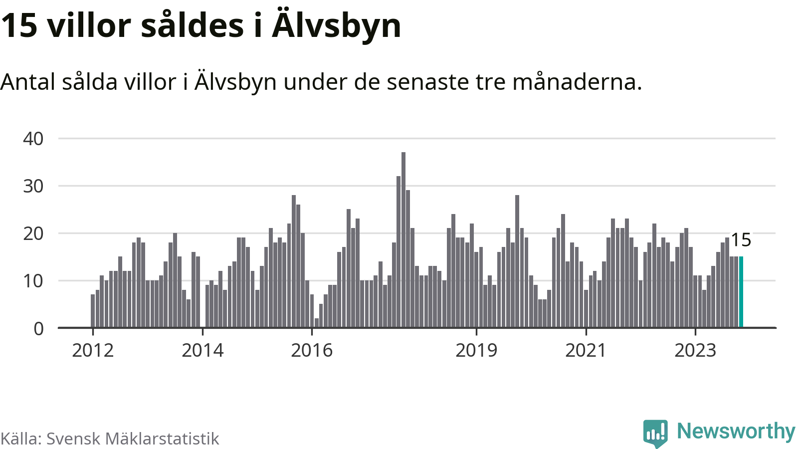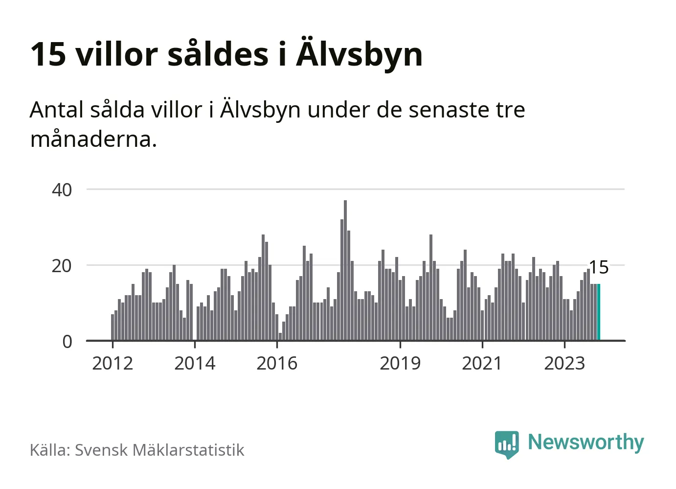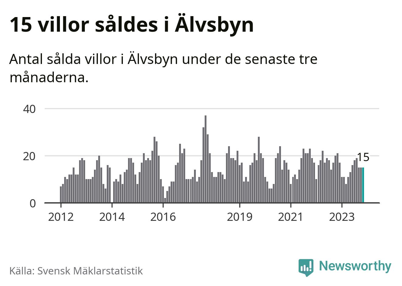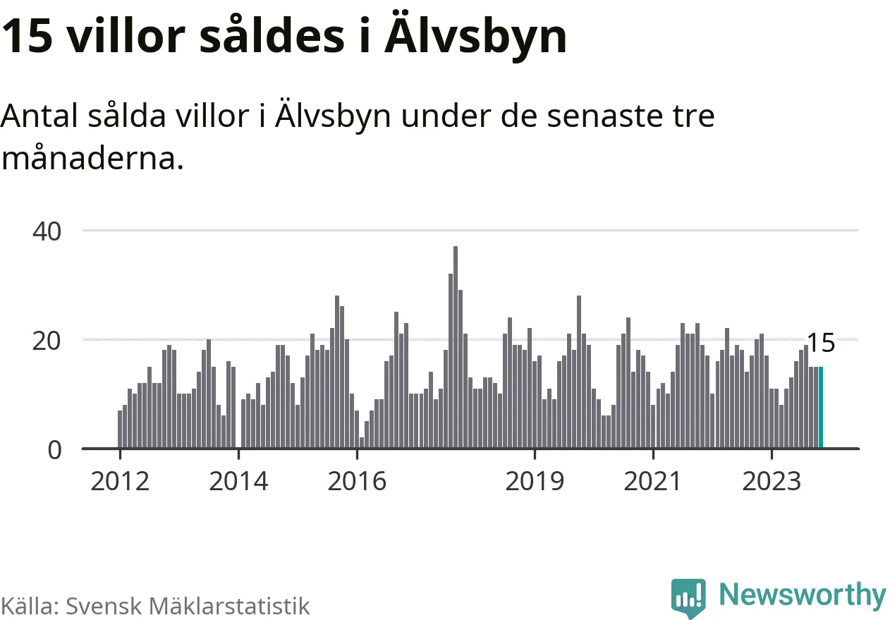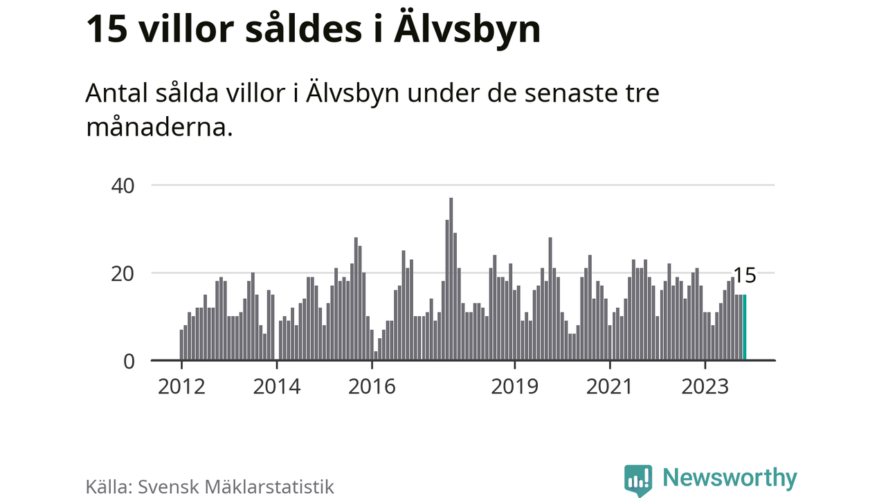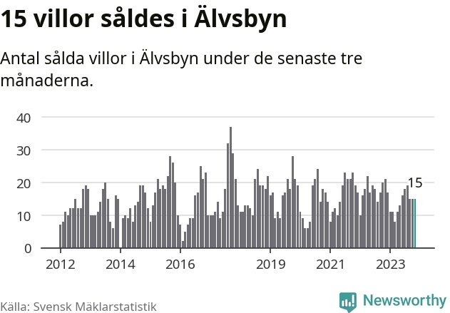 Mellan september och november gjordes sammanlagt 15 affärer med villor i Älvsbyns kommun. Det kan jämföras med 21 vid motsvarande tid i fjol.