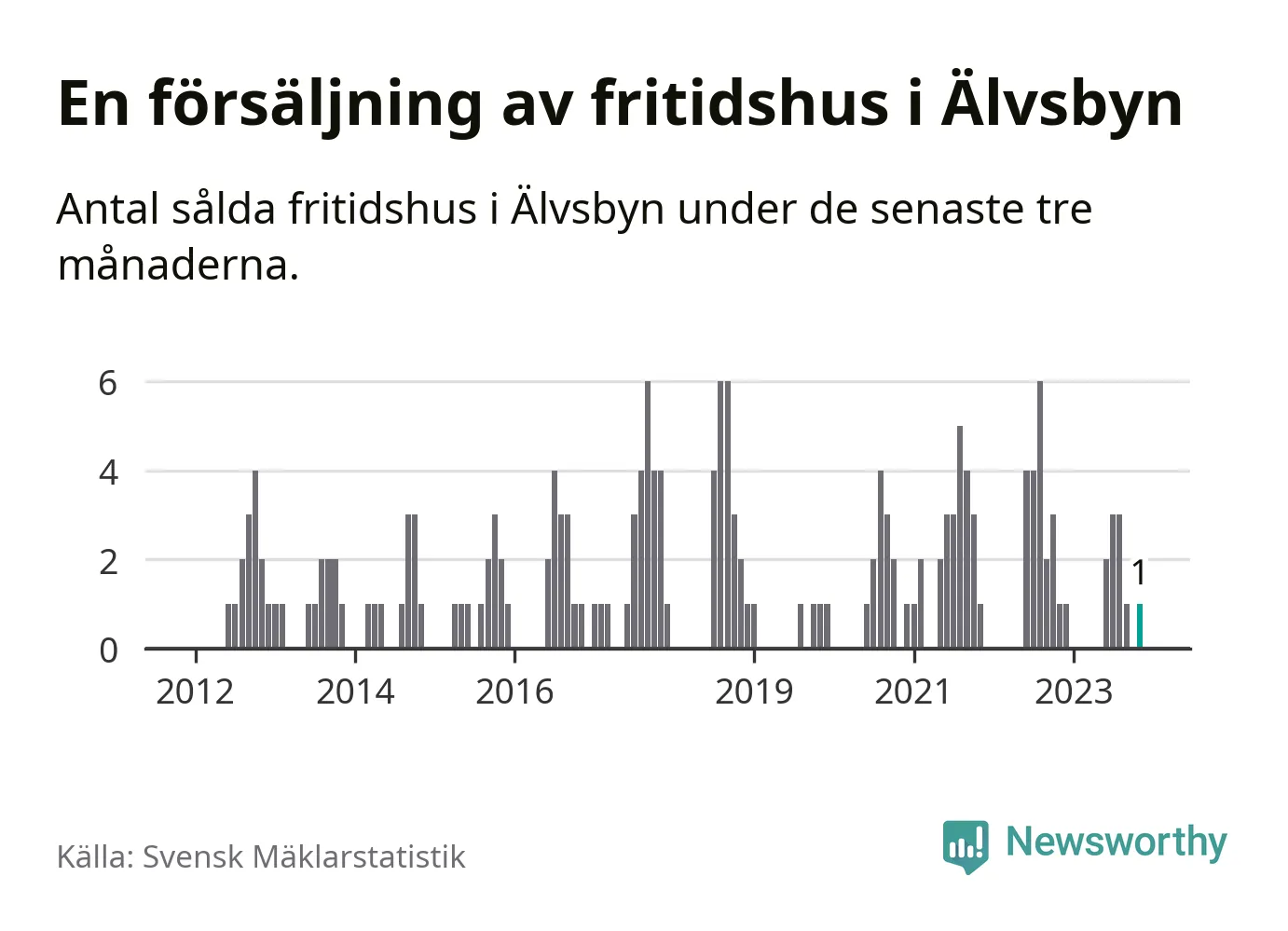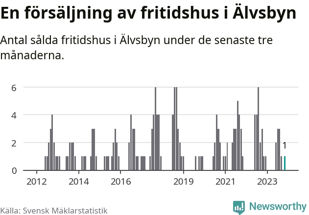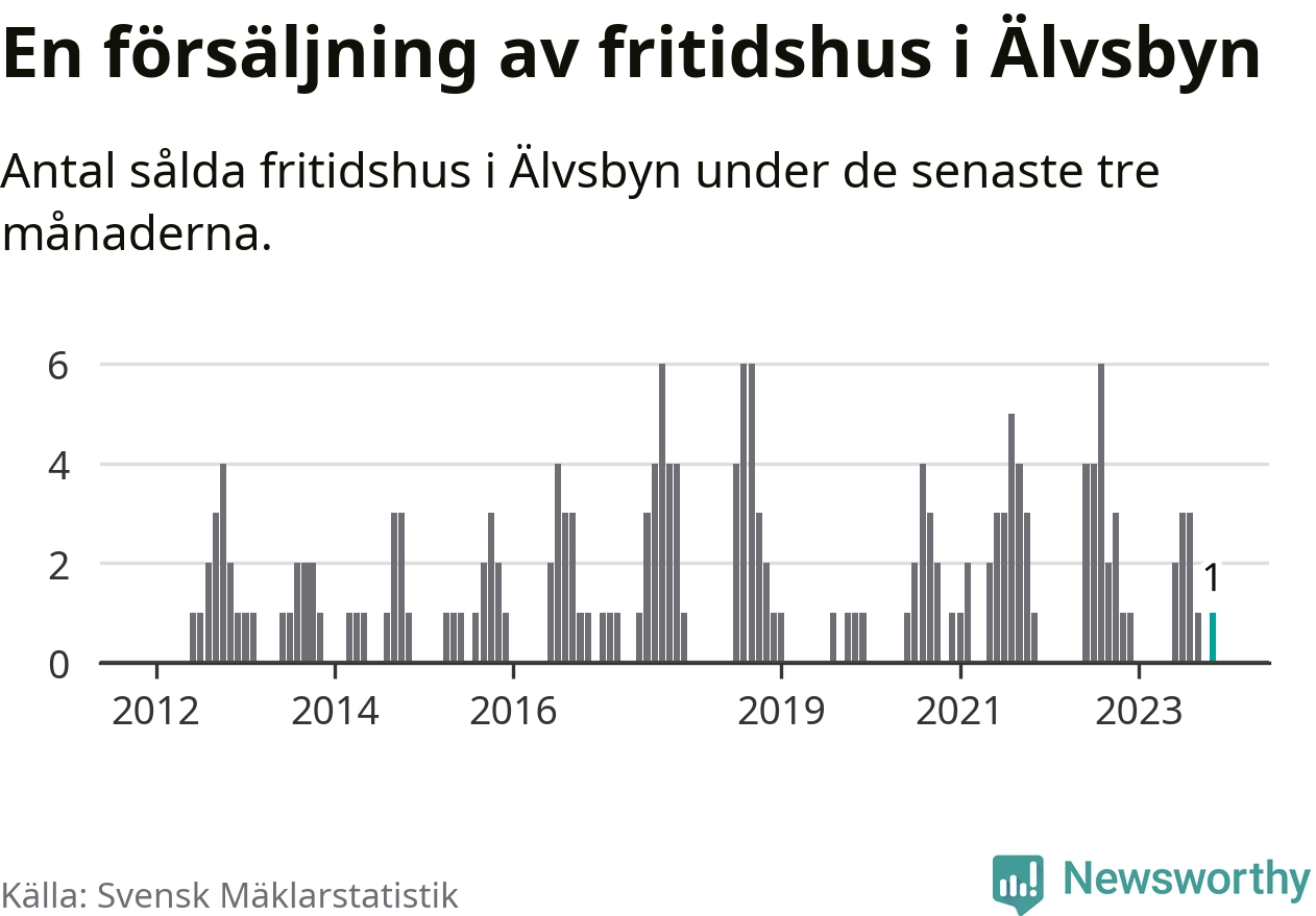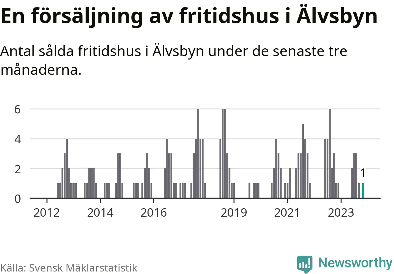 Mellan september och november gjordes sammanlagt en affär med fritidshus i Älvsbyns kommun. Det är lika många affärer som vid motsvarande tid i fjol.