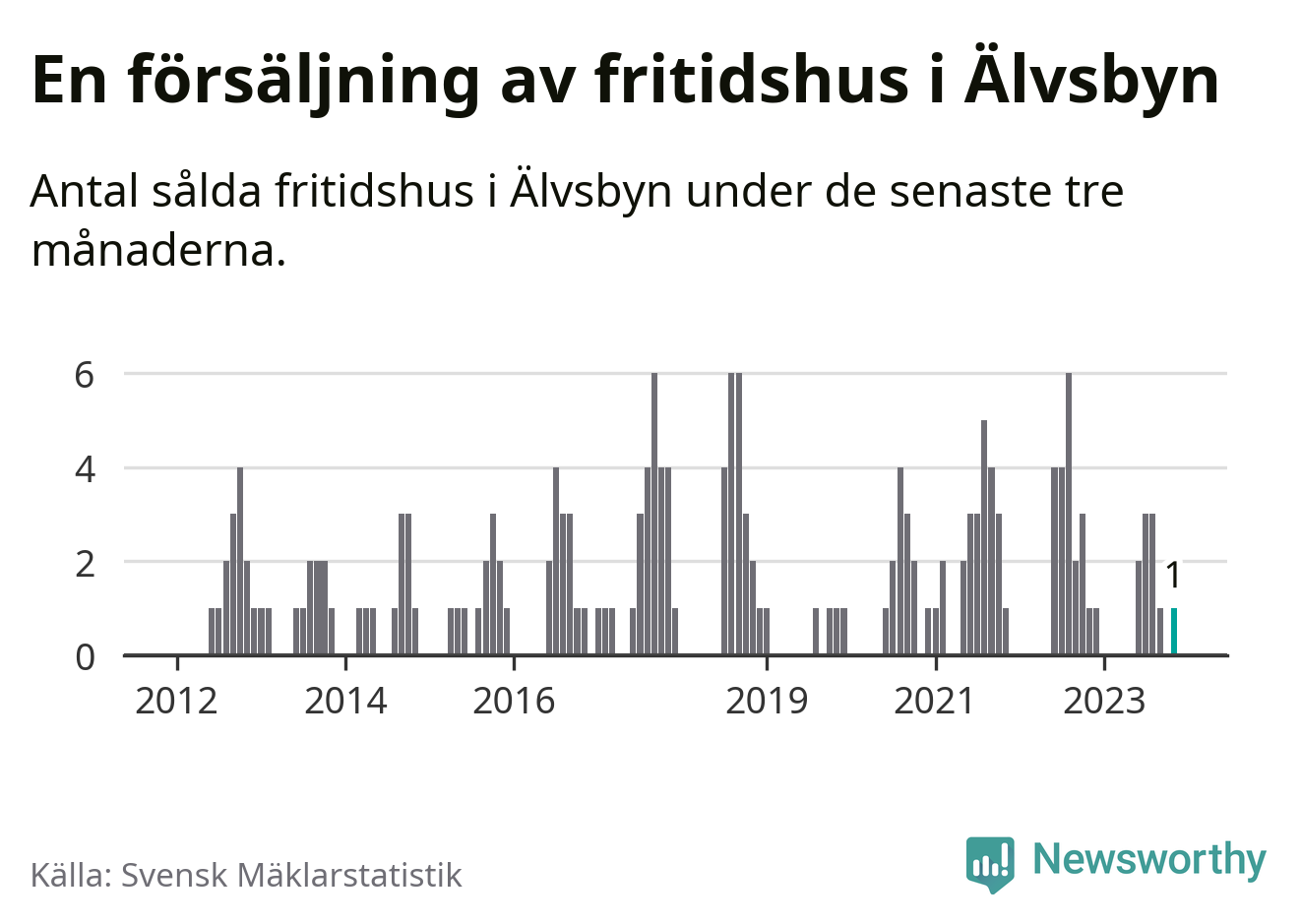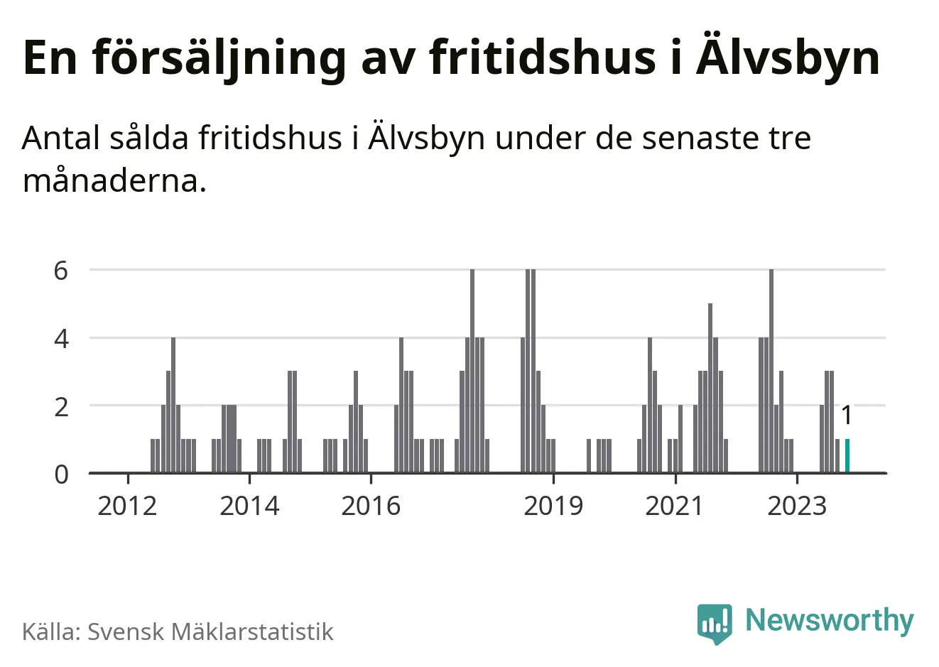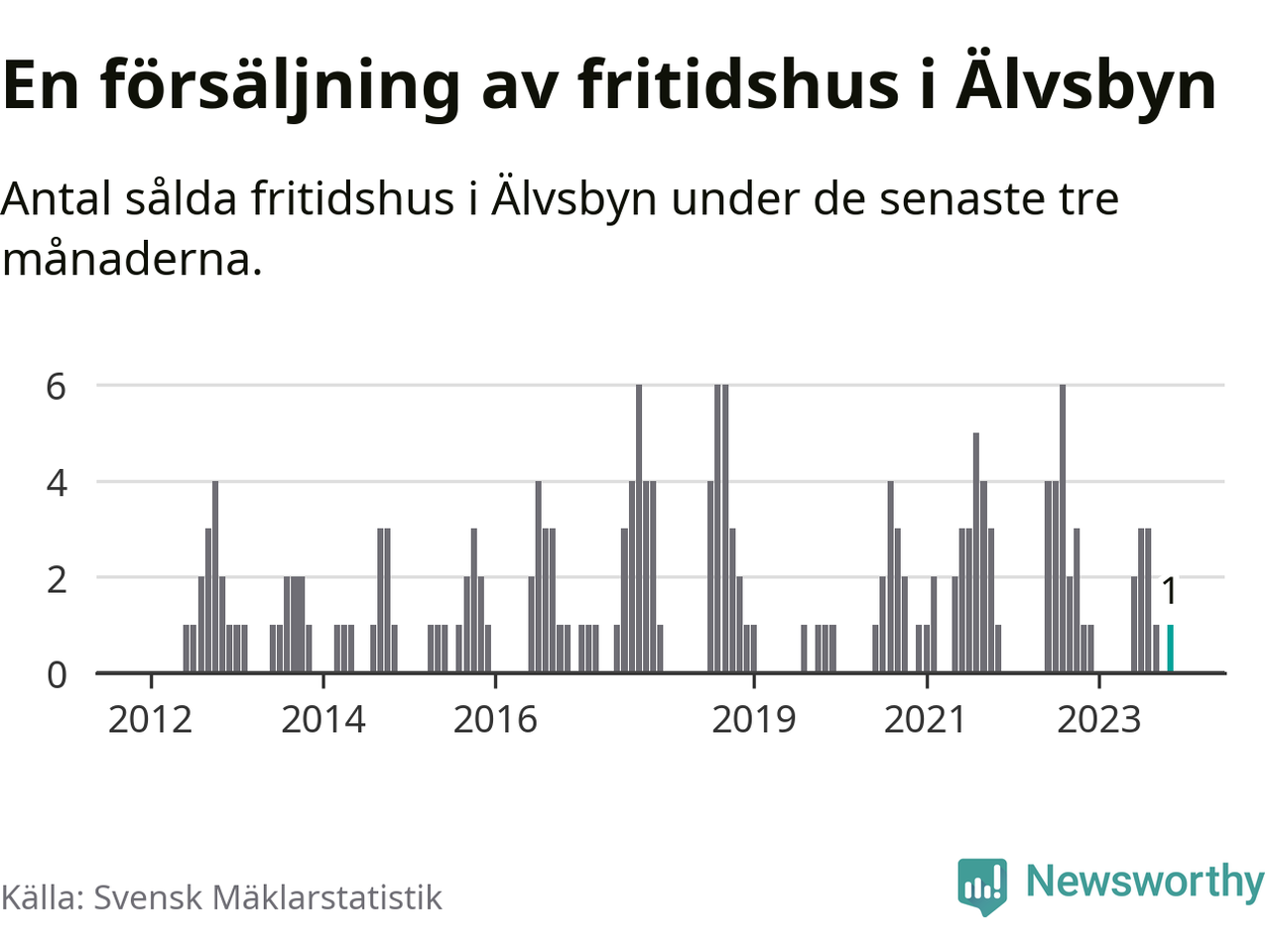 Mellan september och november gjordes sammanlagt en affär med fritidshus i Älvsbyns kommun. Det är lika många affärer som vid motsvarande tid i fjol.