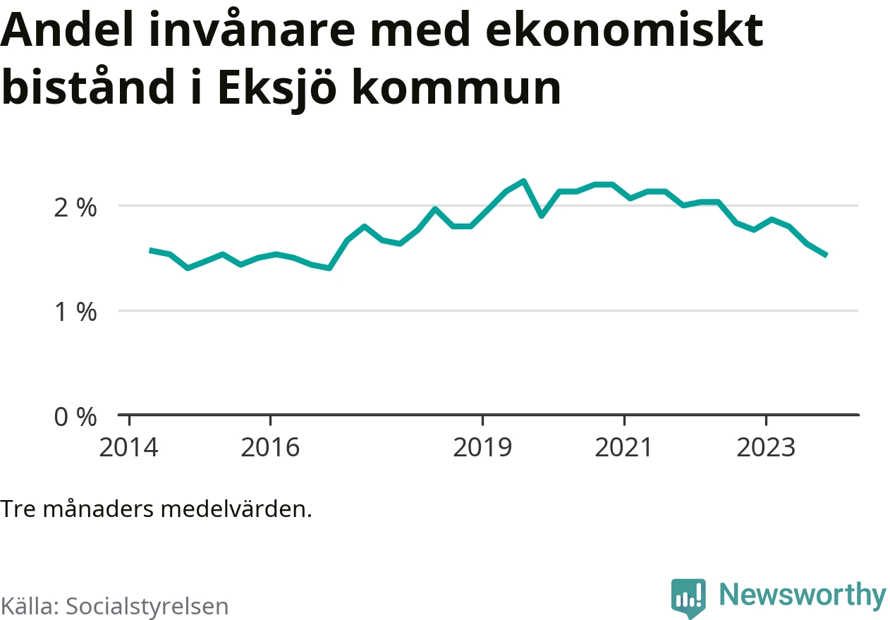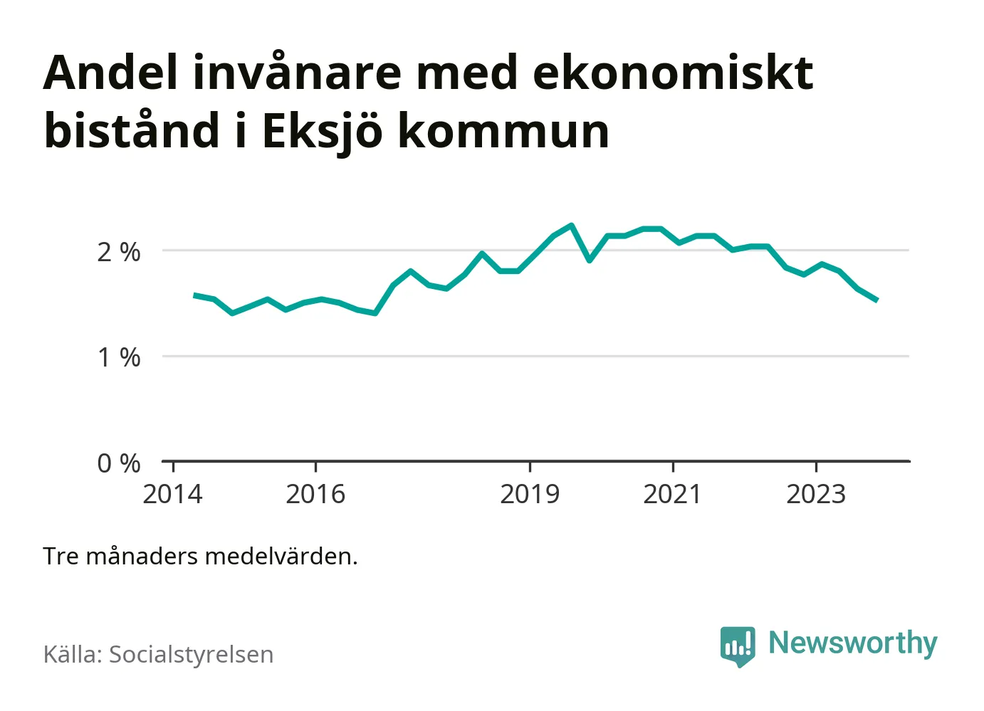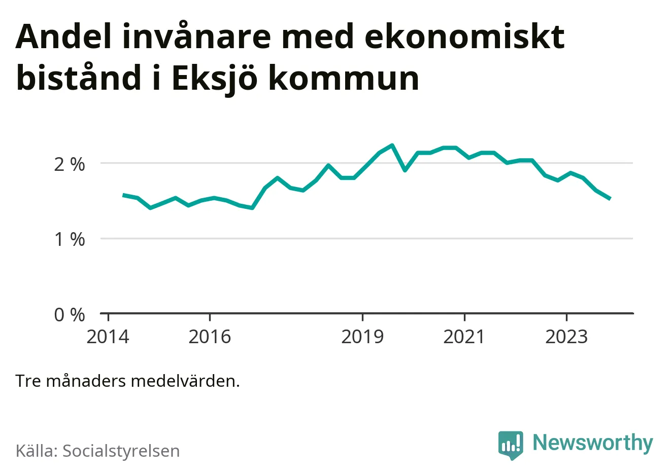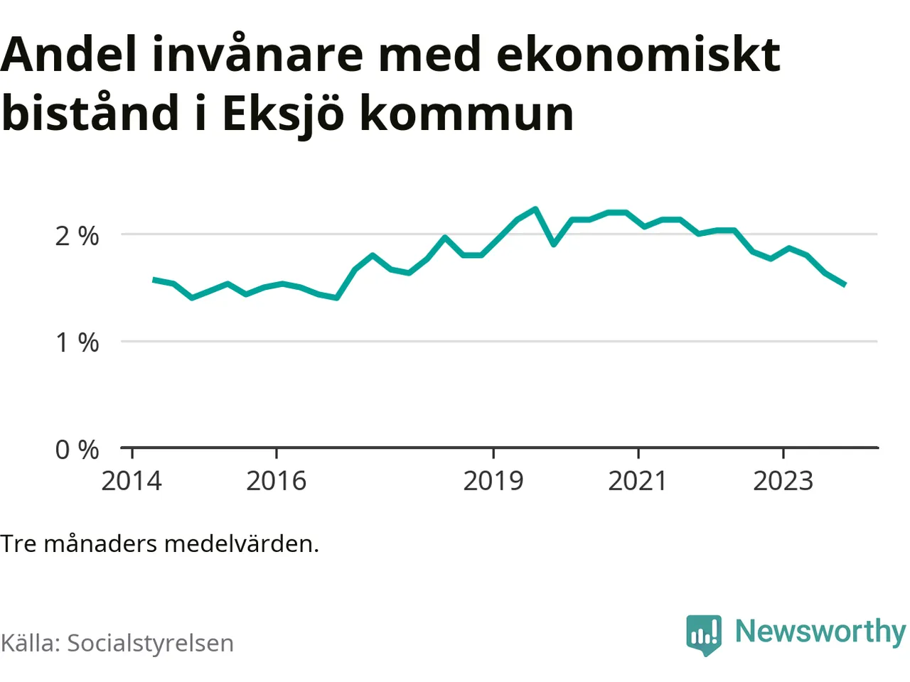 I genomsnitt 279 personer per månad fick ekonomiskt bistånd i Eksjö kommun