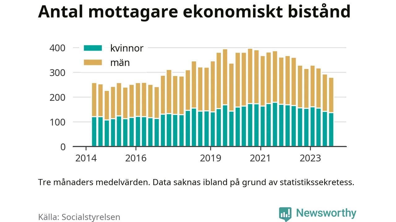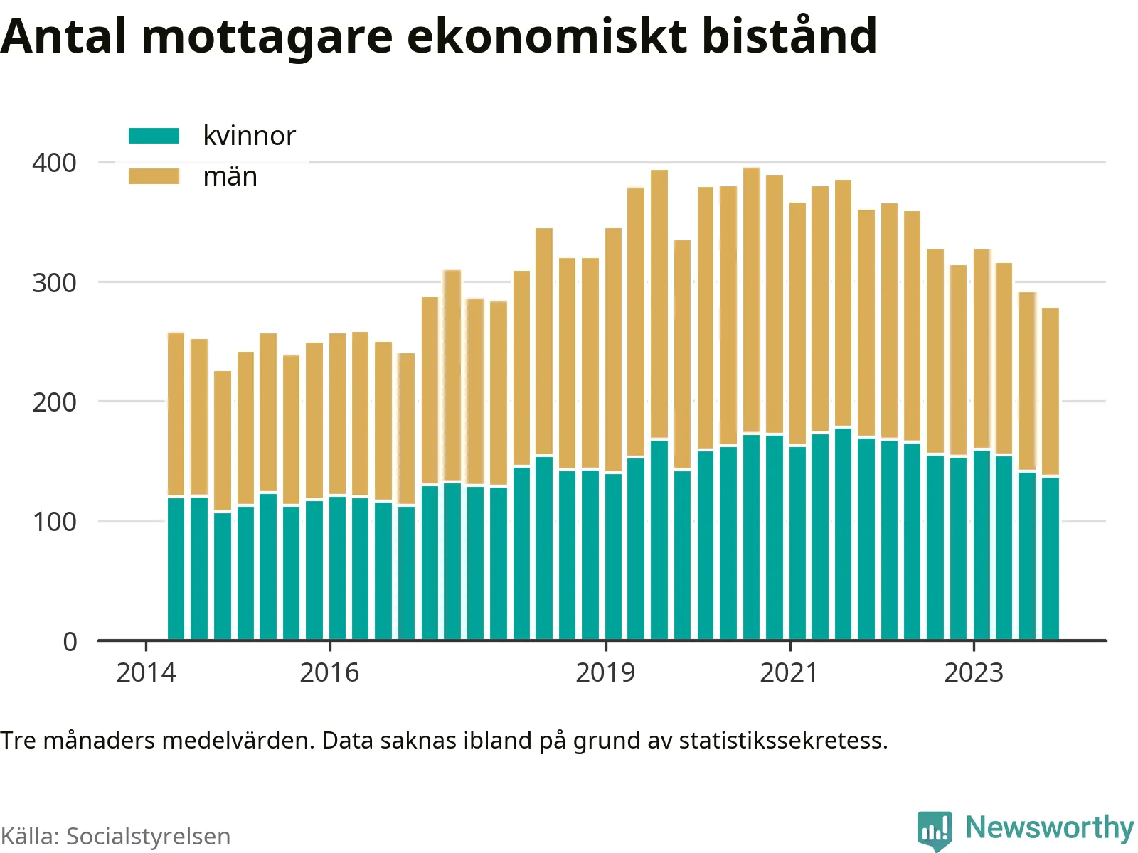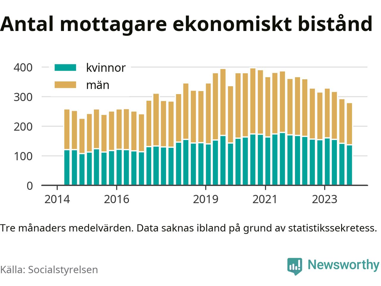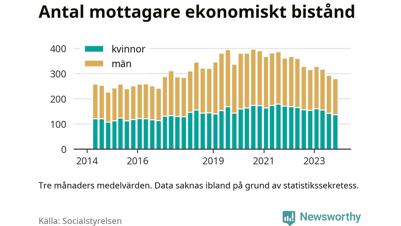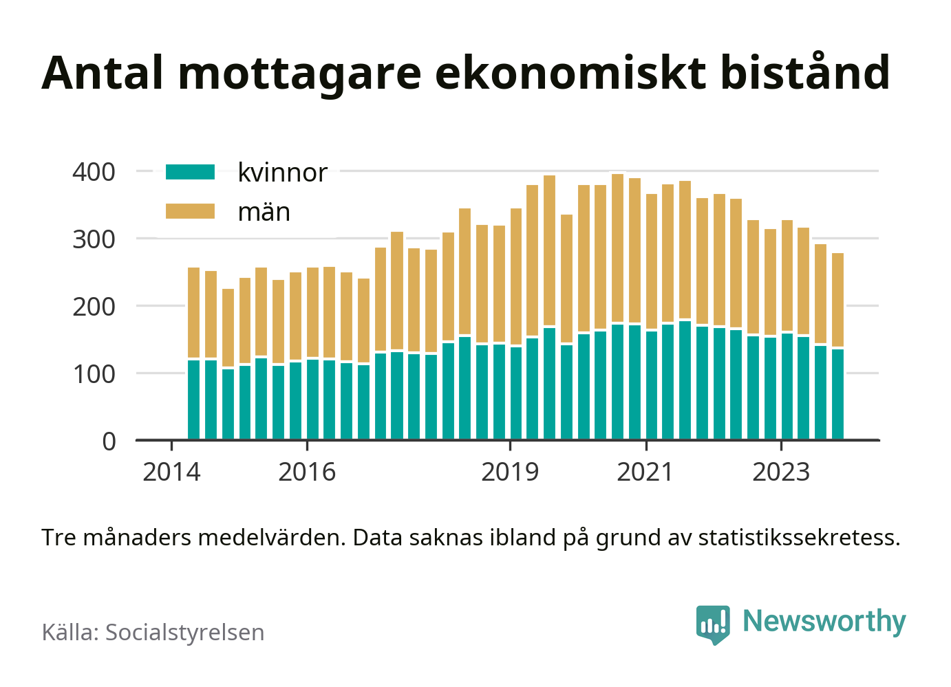 I genomsnitt 279 personer per månad fick ekonomiskt bistånd i Eksjö kommun