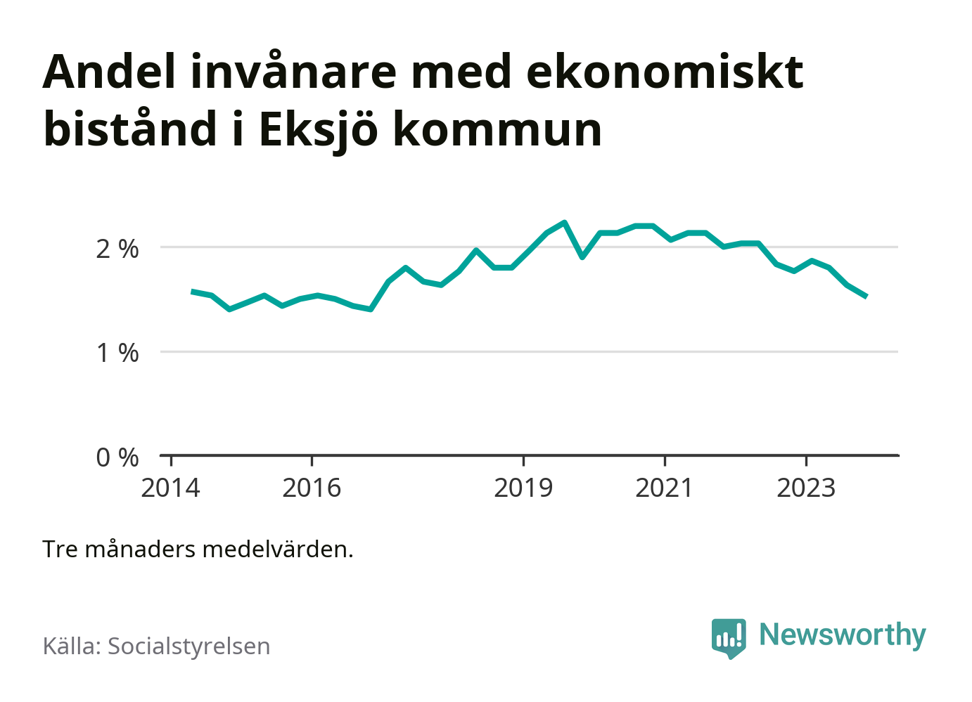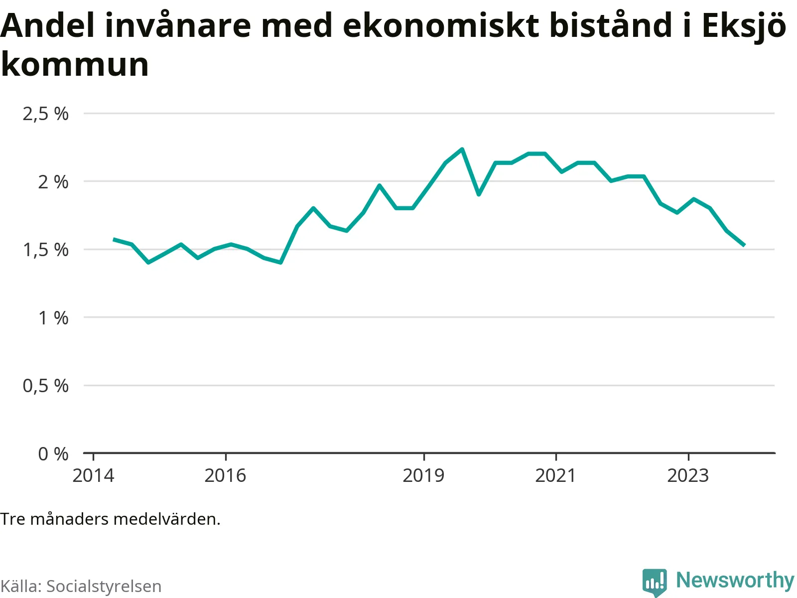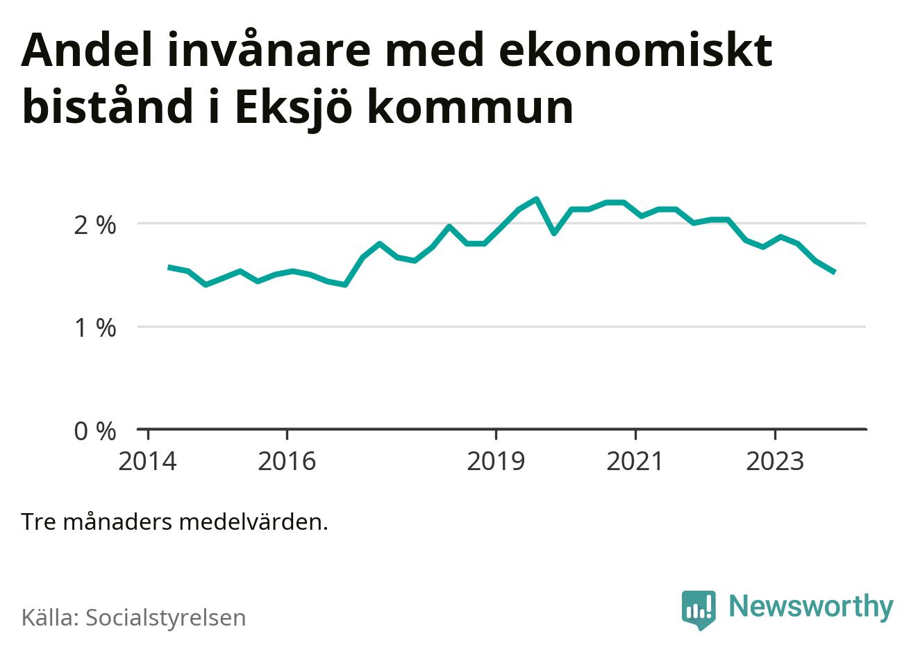Andelen invånare med ekonomiskt bistånd i Eksjö kommun