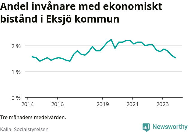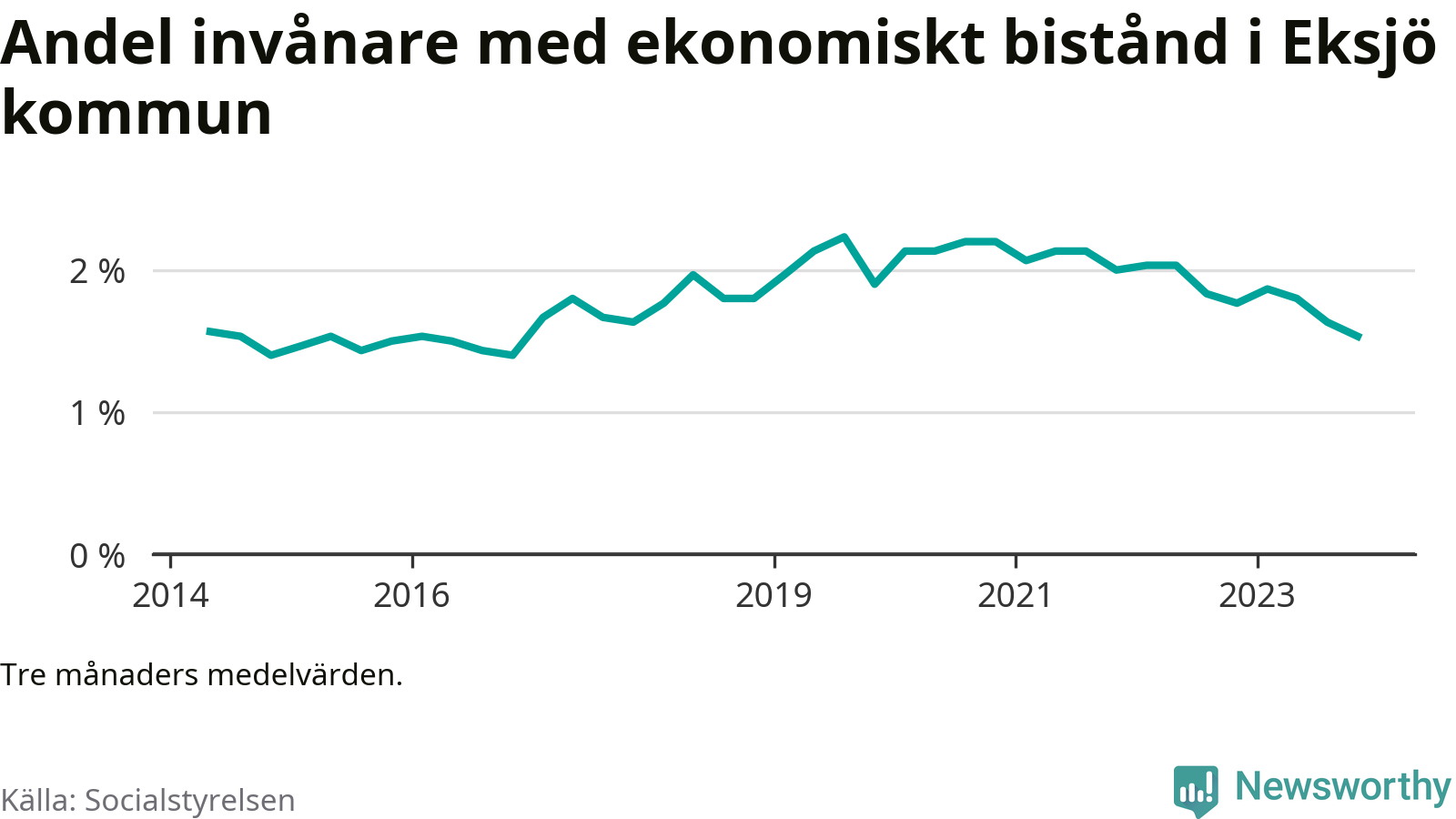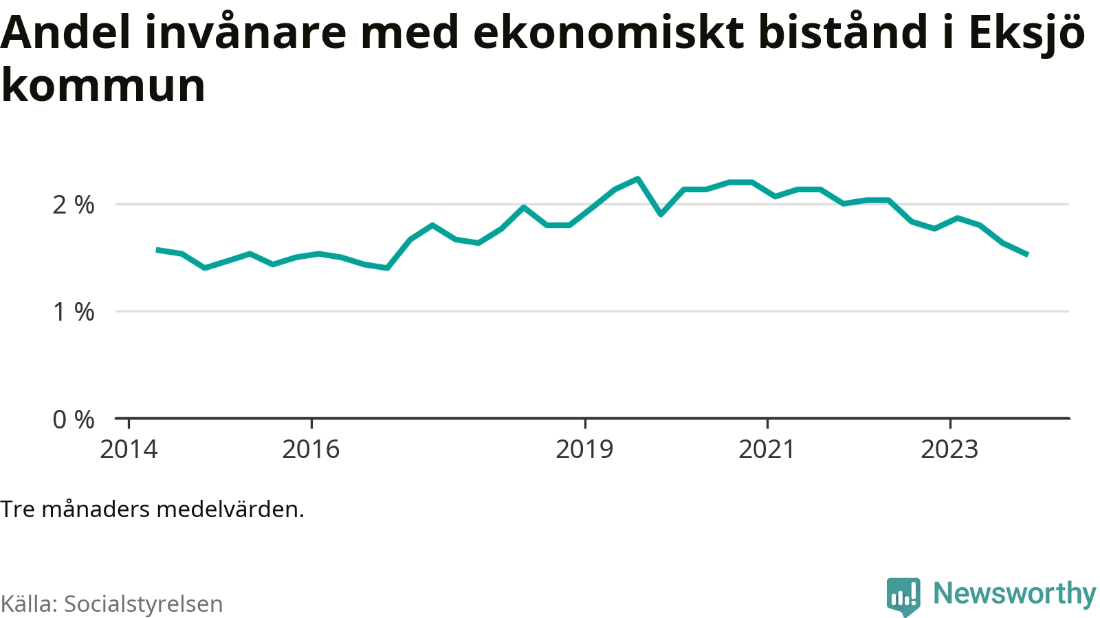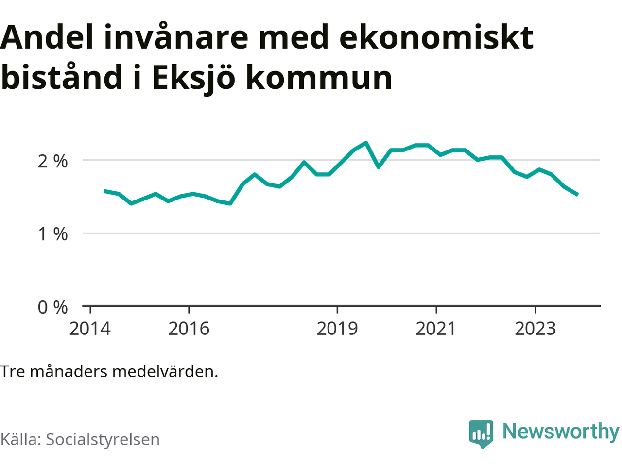 Andelen invånare med ekonomiskt bistånd i Eksjö kommun
