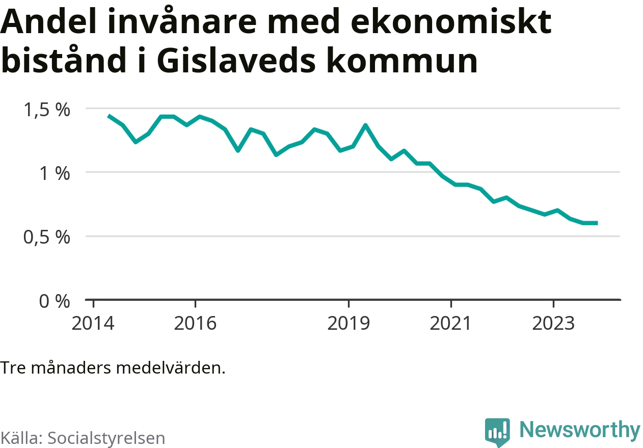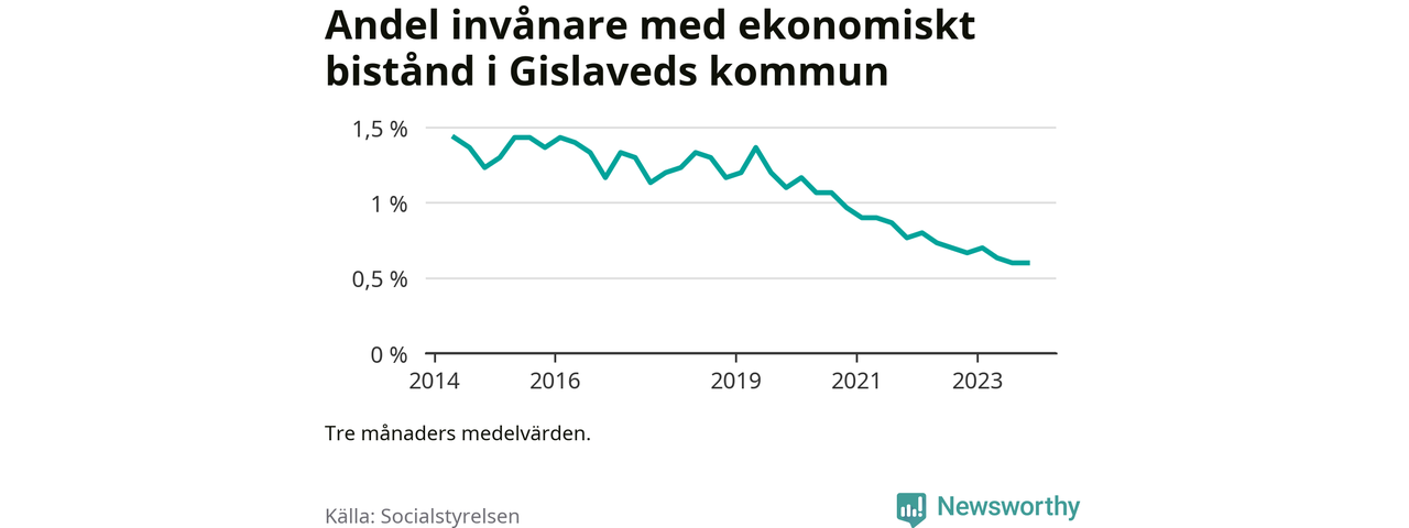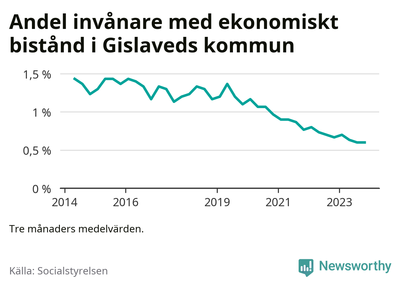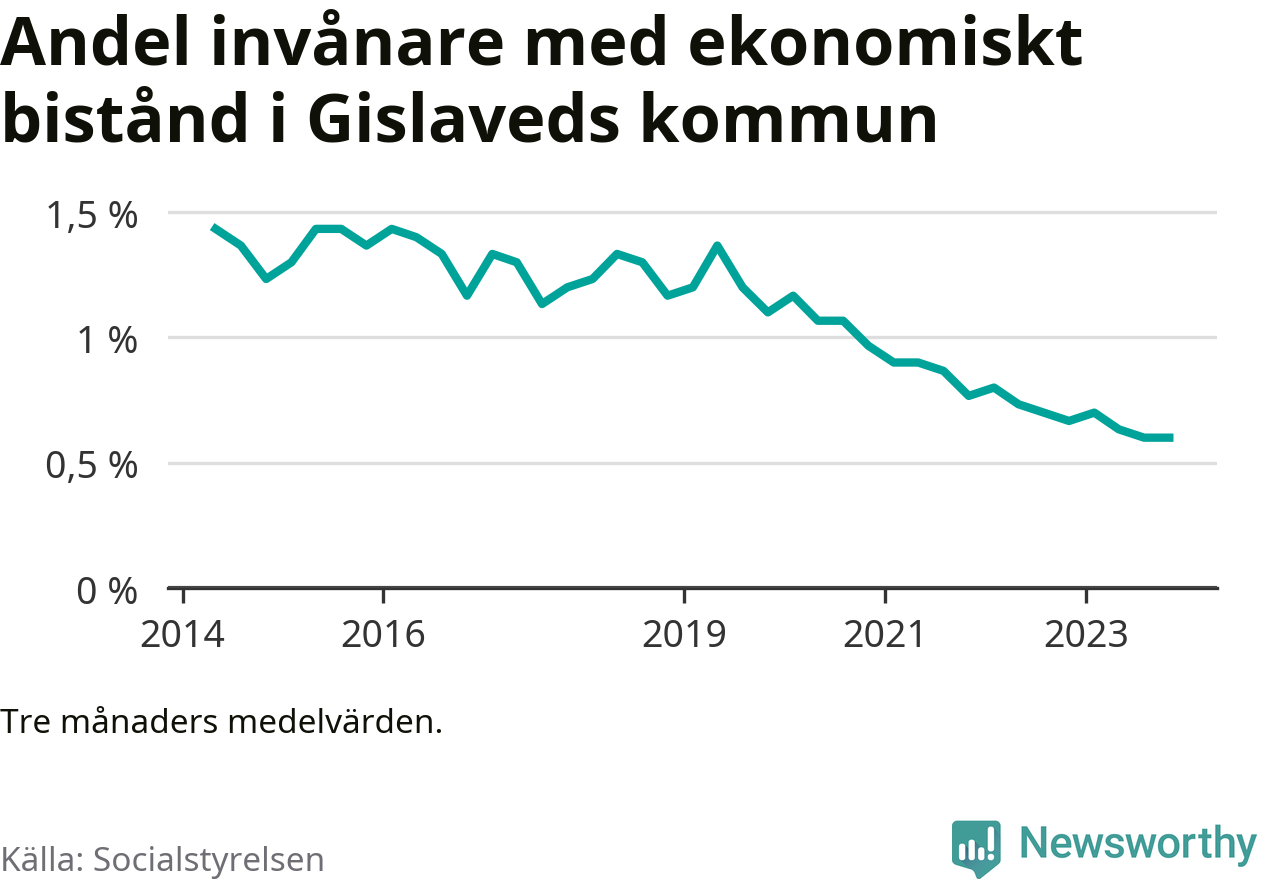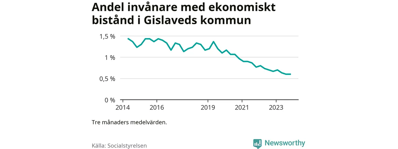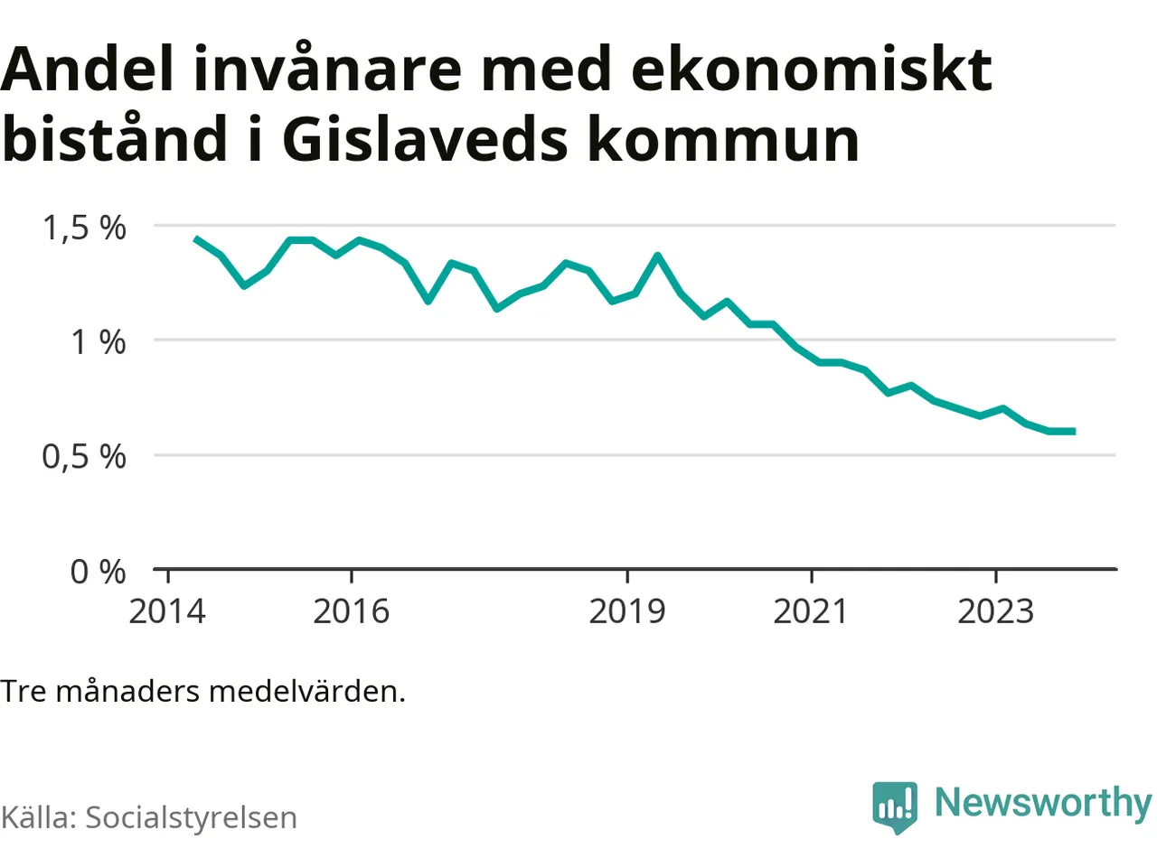 I genomsnitt 177 personer per månad fick ekonomiskt bistånd i Gislaveds kommun