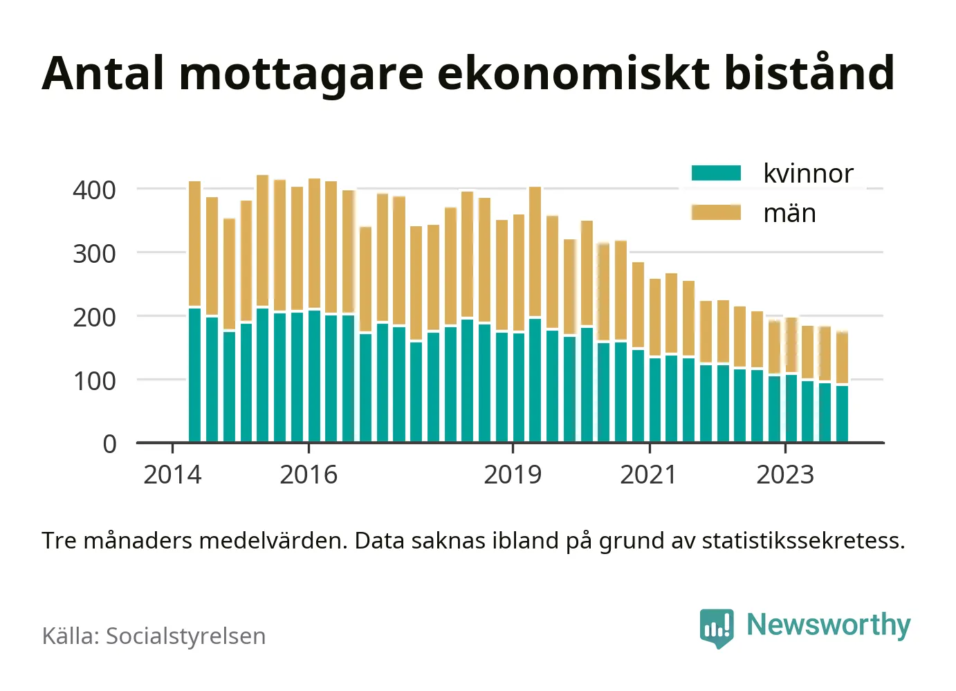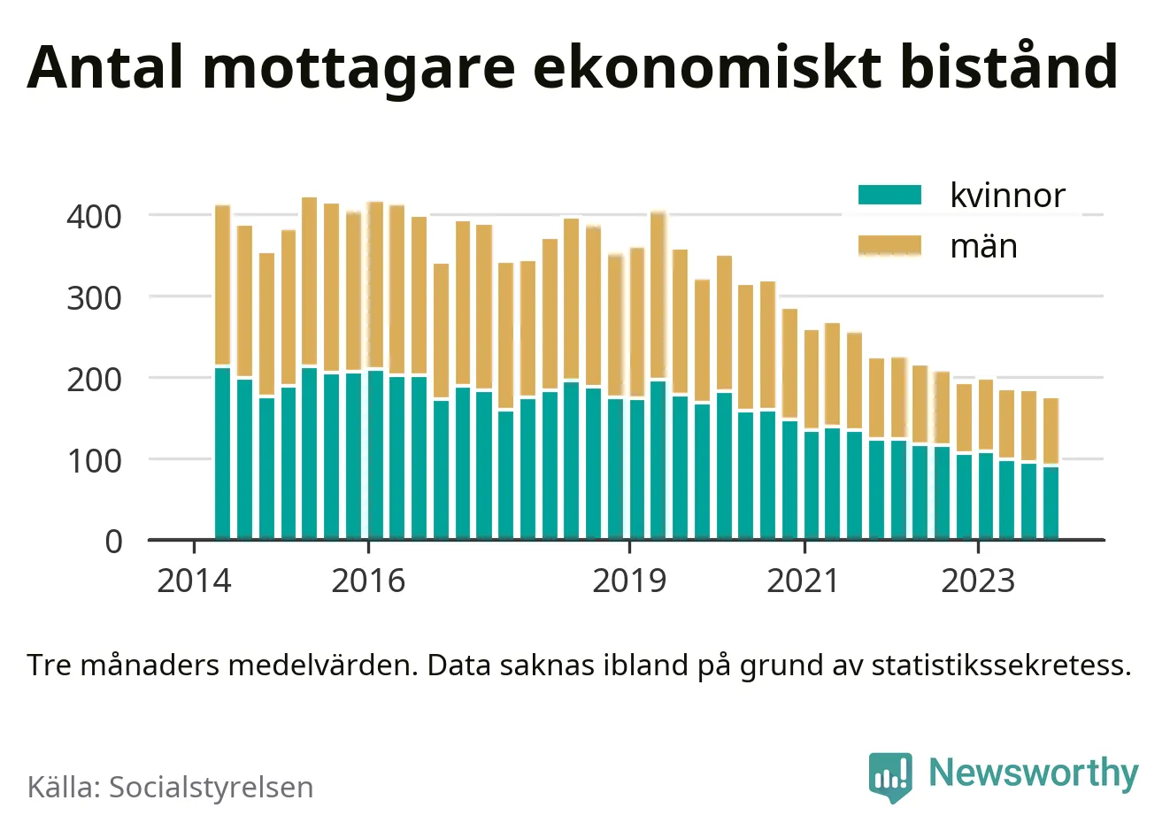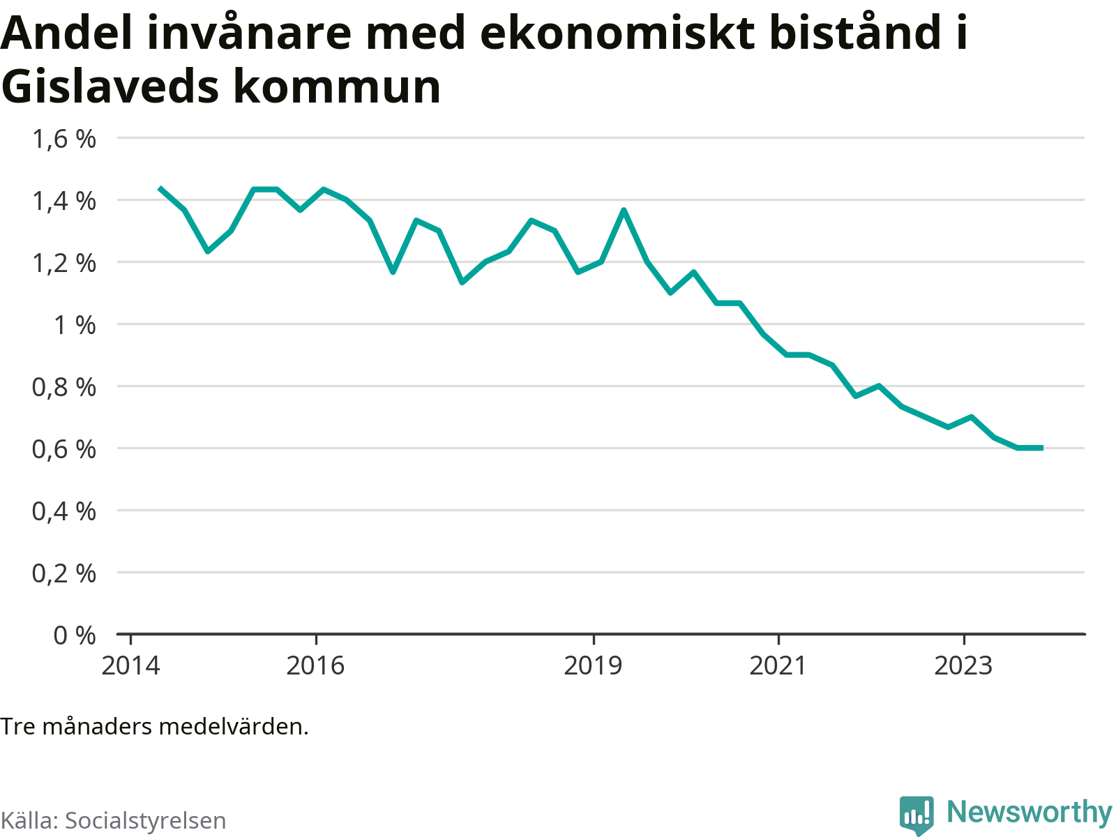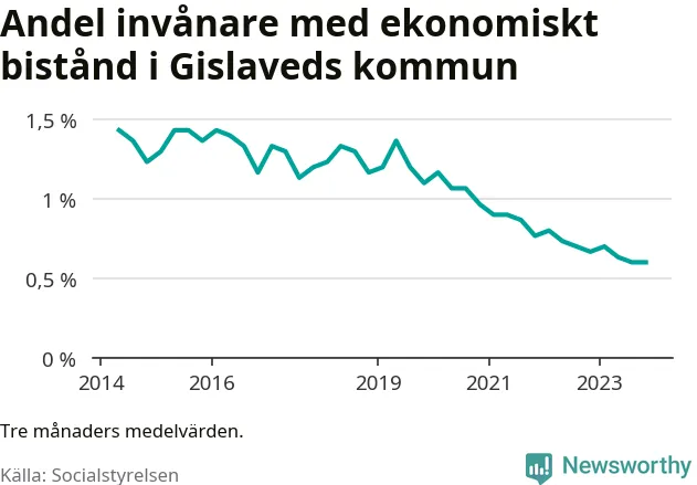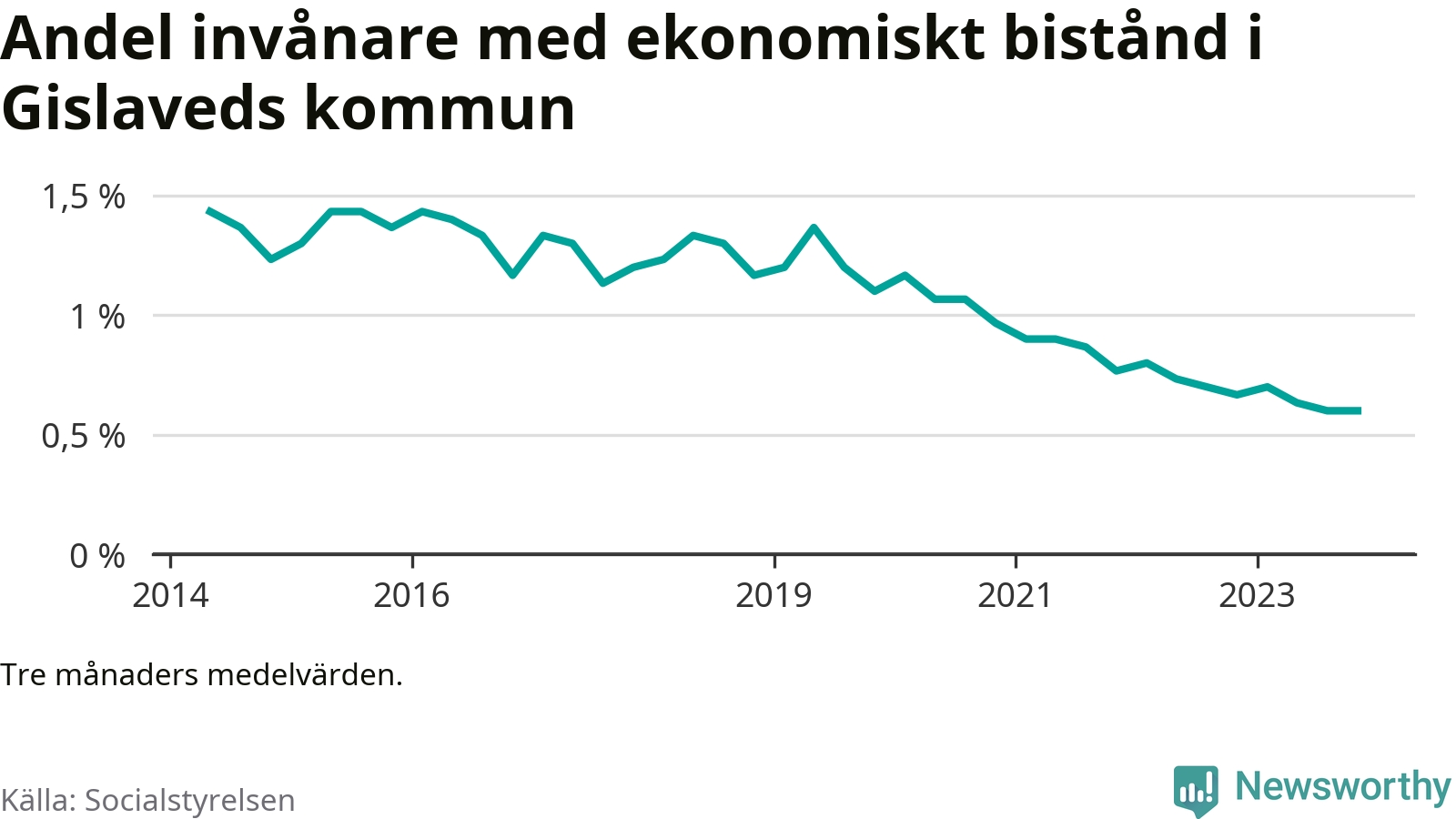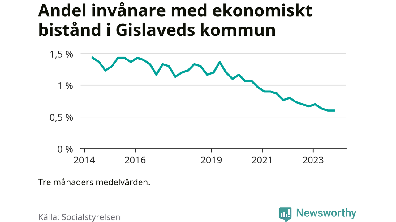 I genomsnitt 177 personer per månad fick ekonomiskt bistånd i Gislaveds kommun