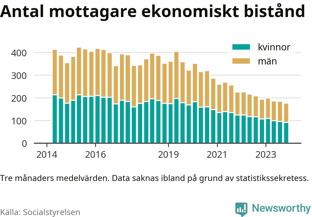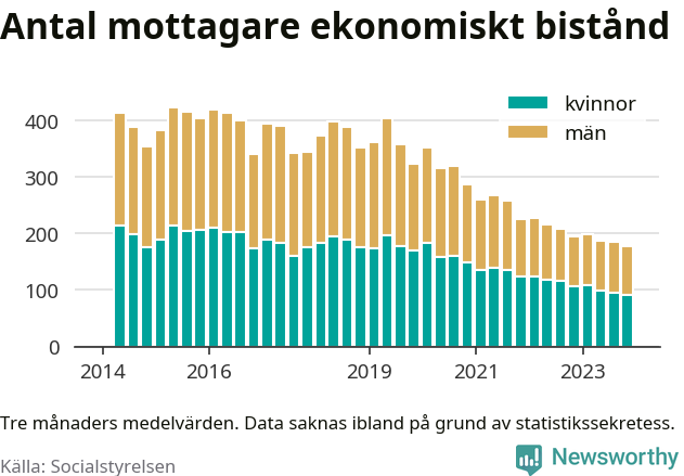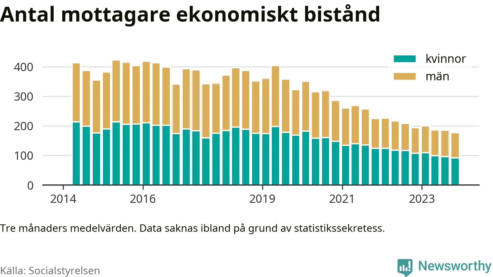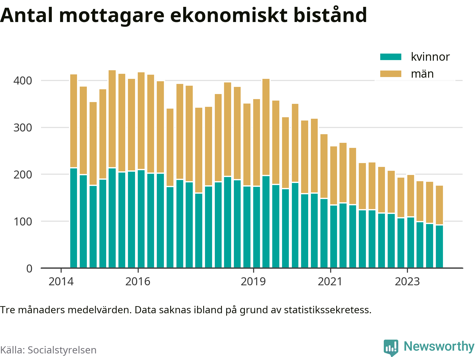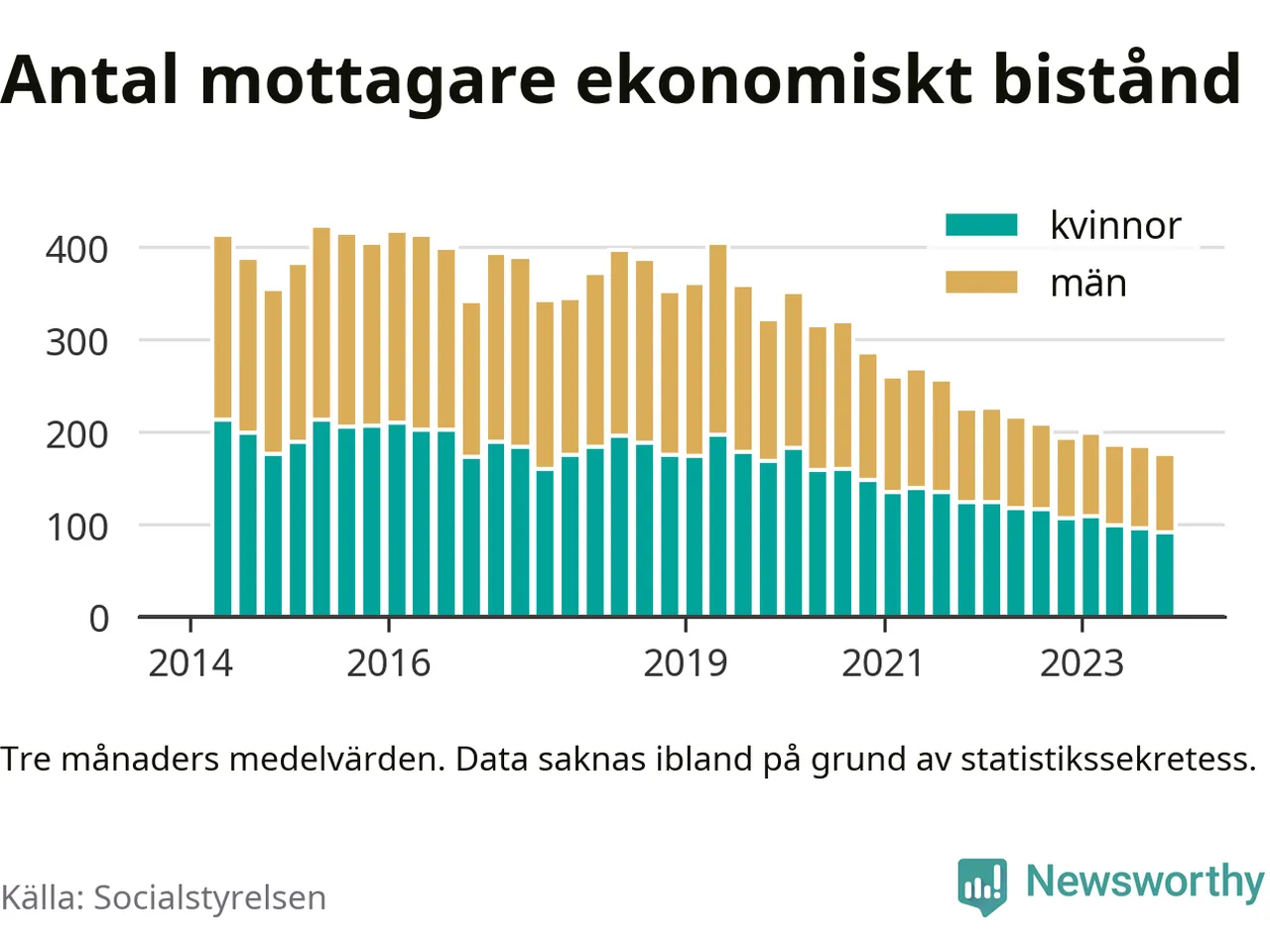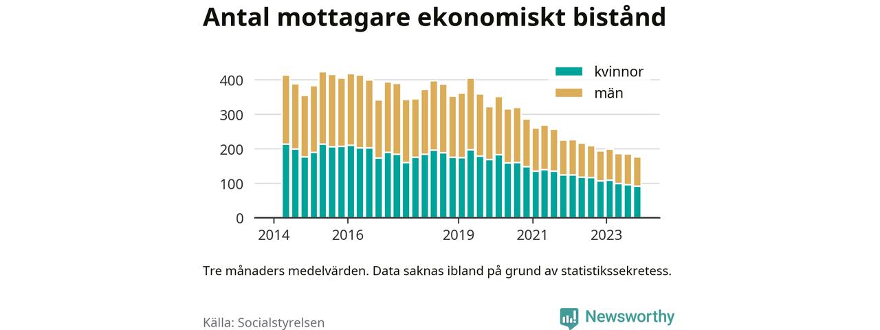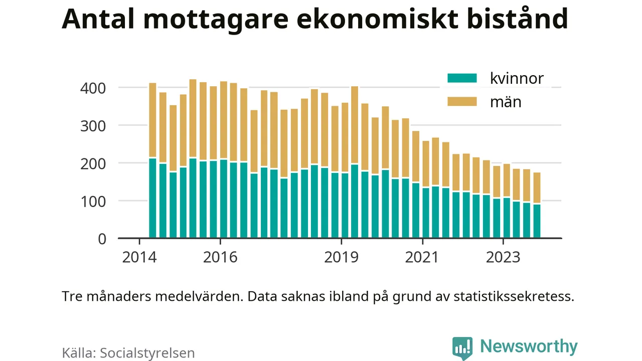 I genomsnitt 177 personer per månad fick ekonomiskt bistånd i Gislaveds kommun