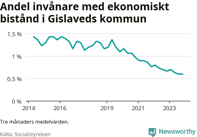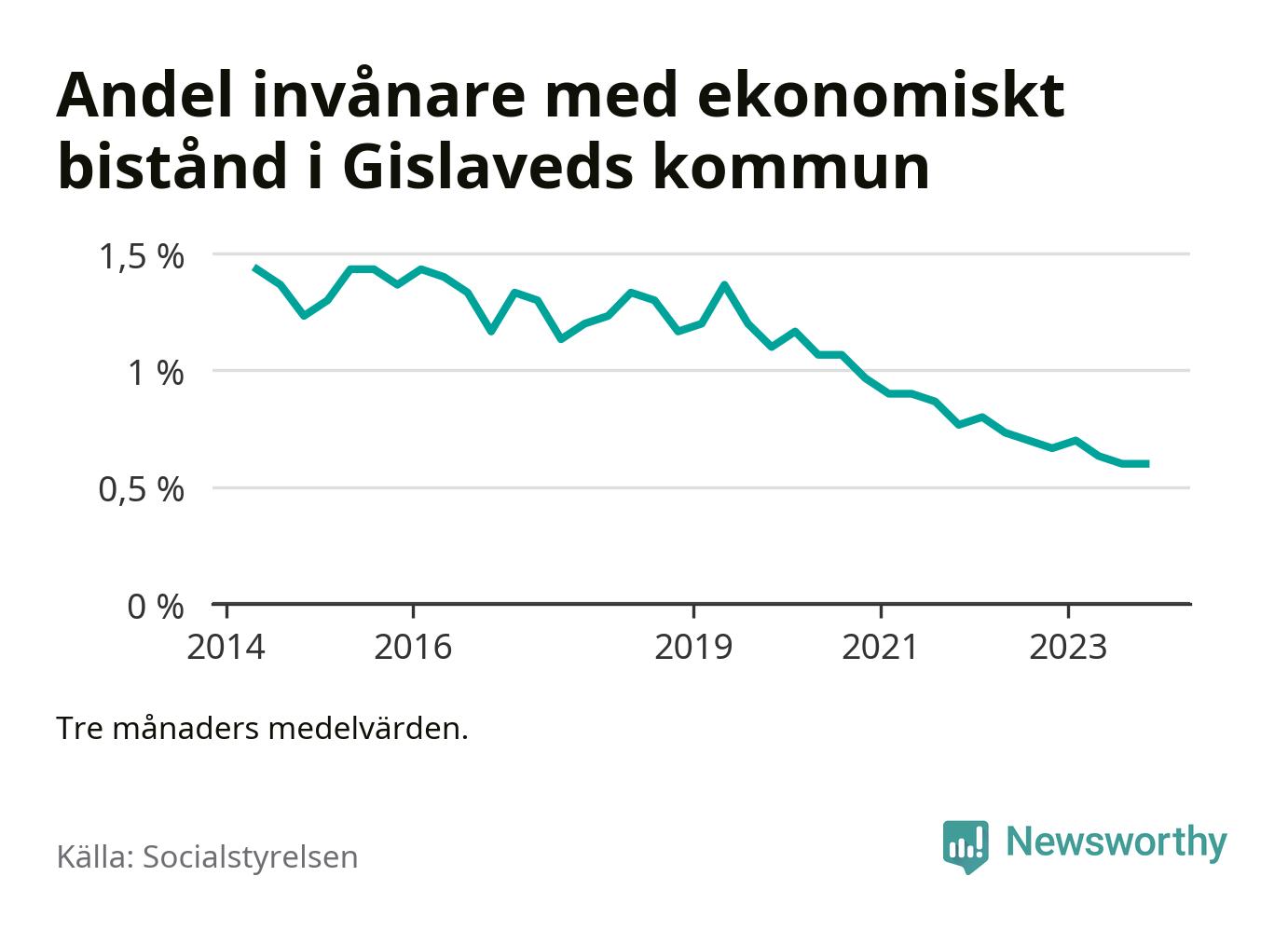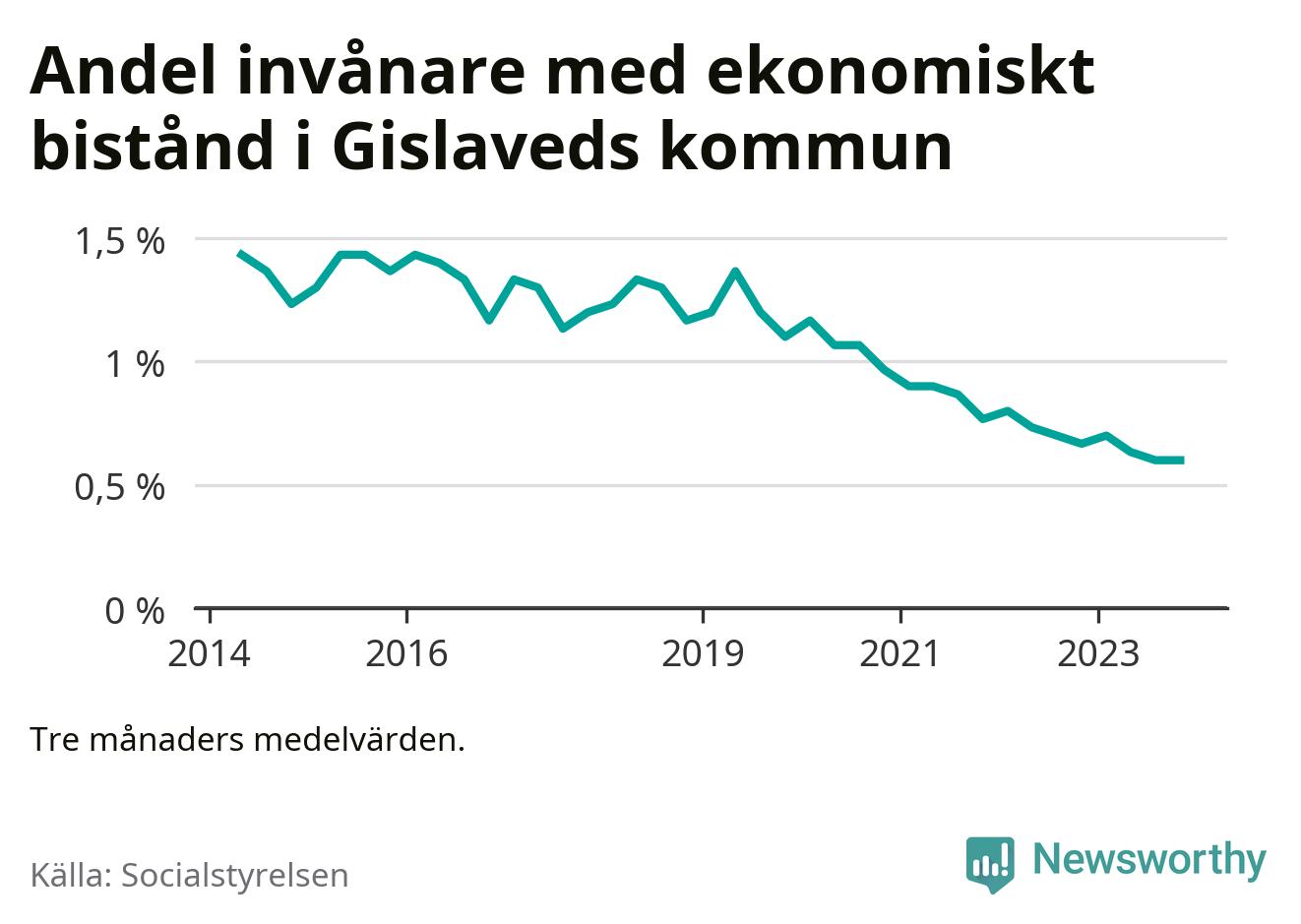 Andelen invånare med ekonomiskt bistånd i Gislaveds kommun