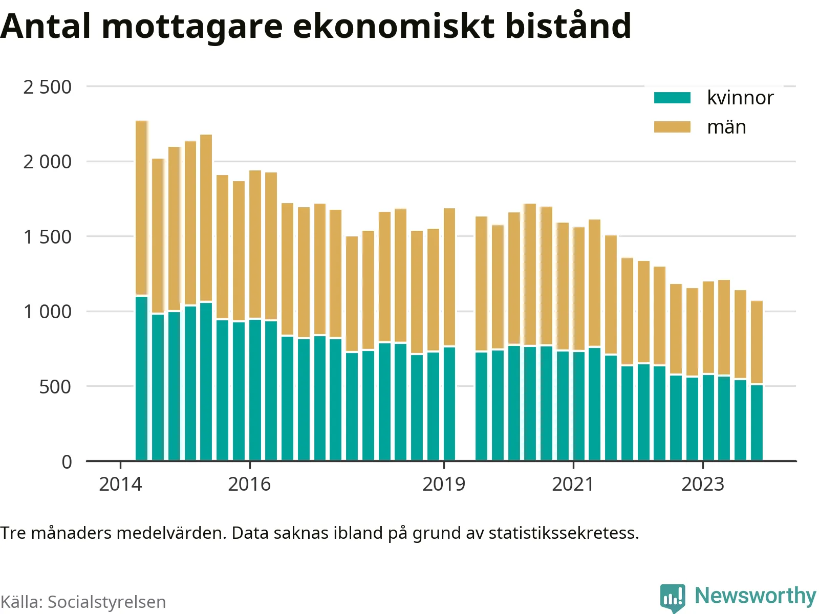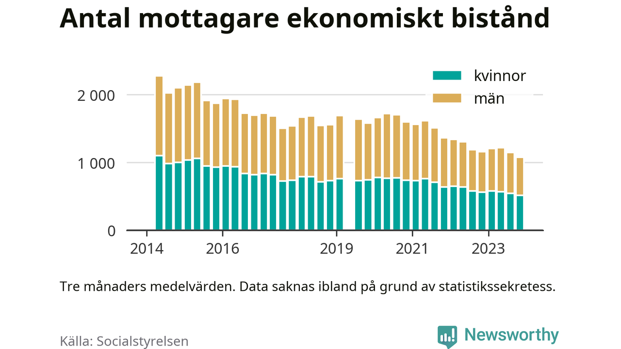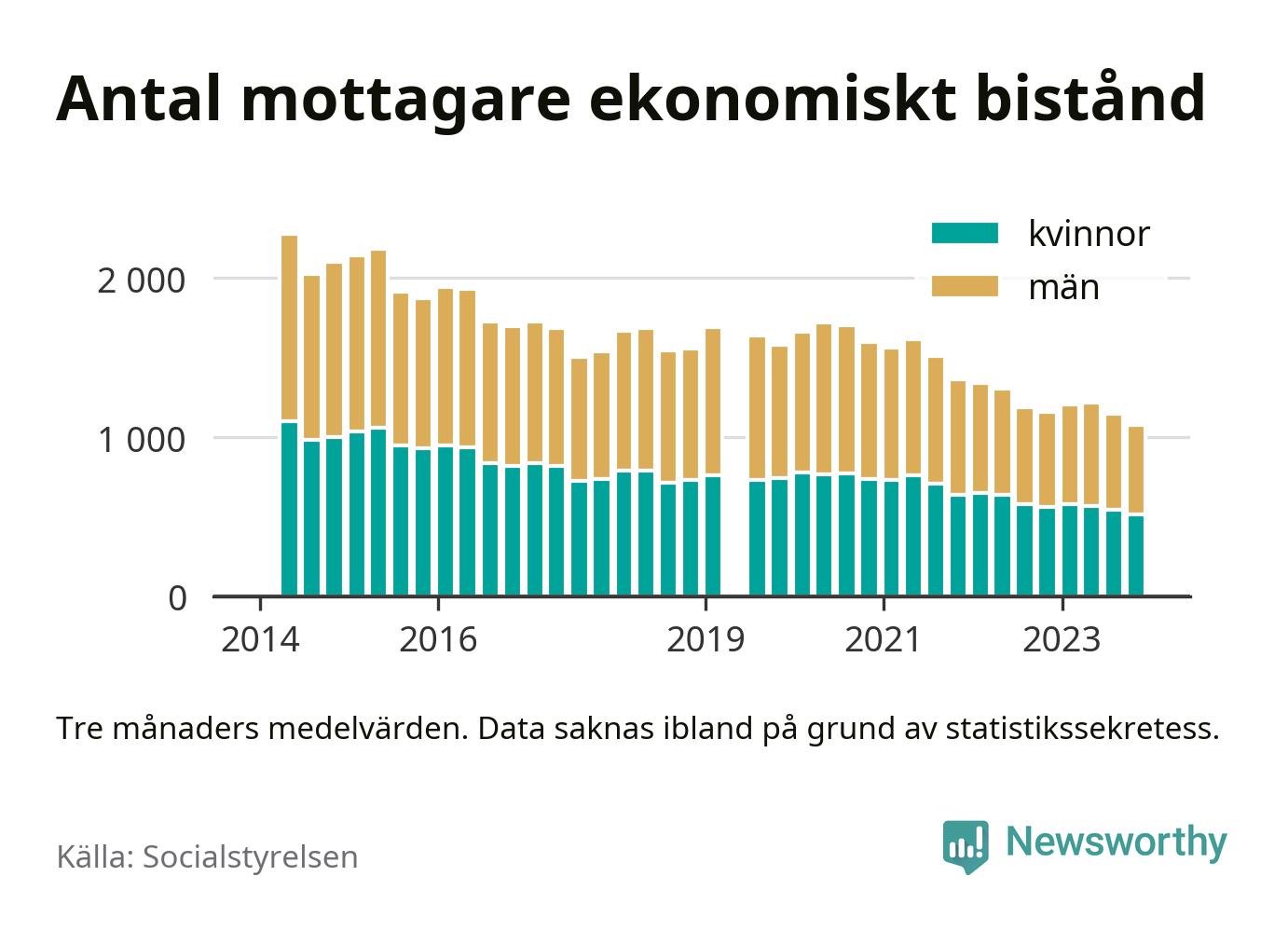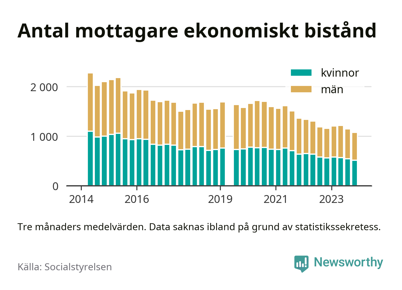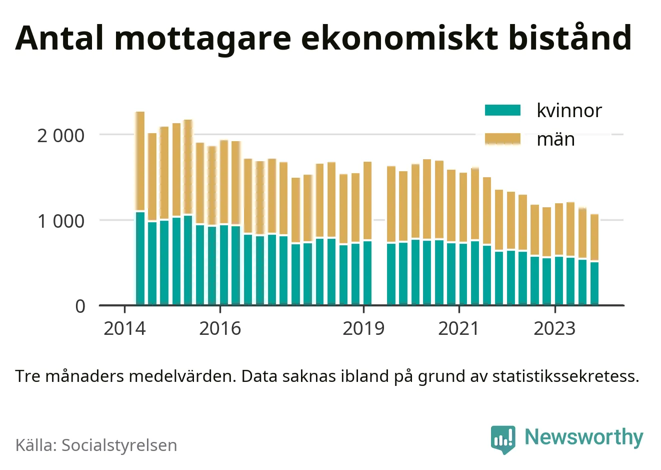 I genomsnitt 1 076 personer per månad fick ekonomiskt bistånd i Jönköpings kommun