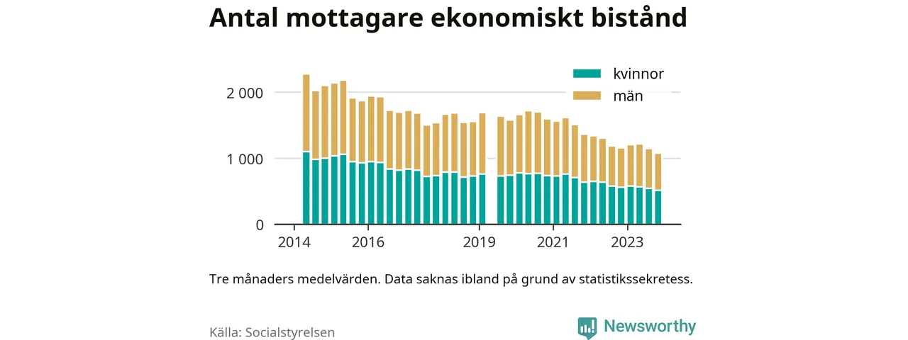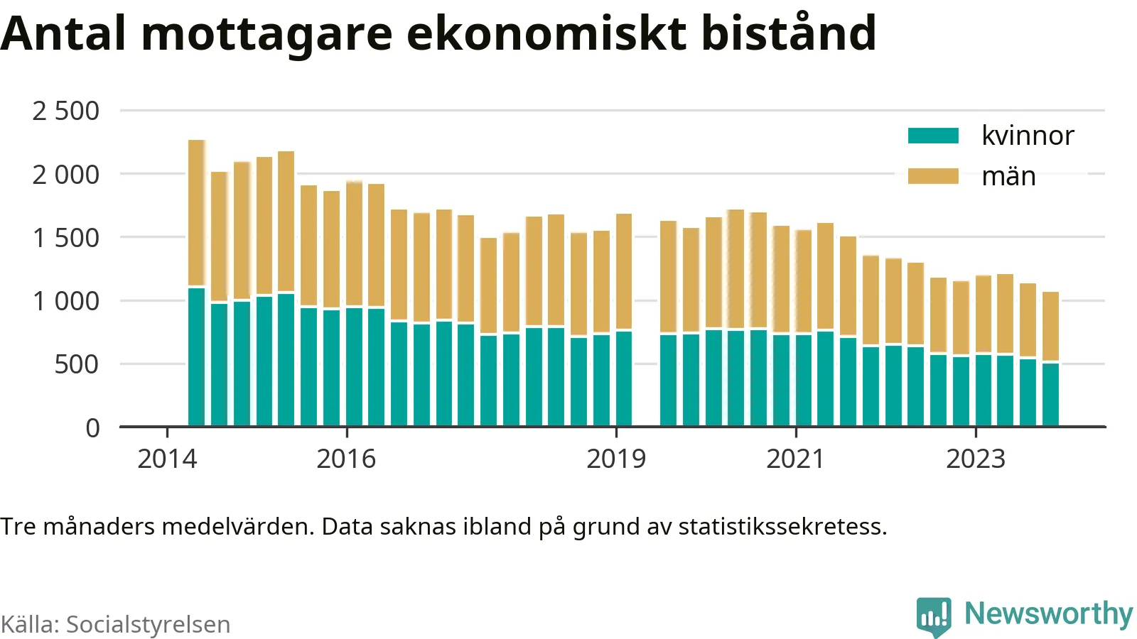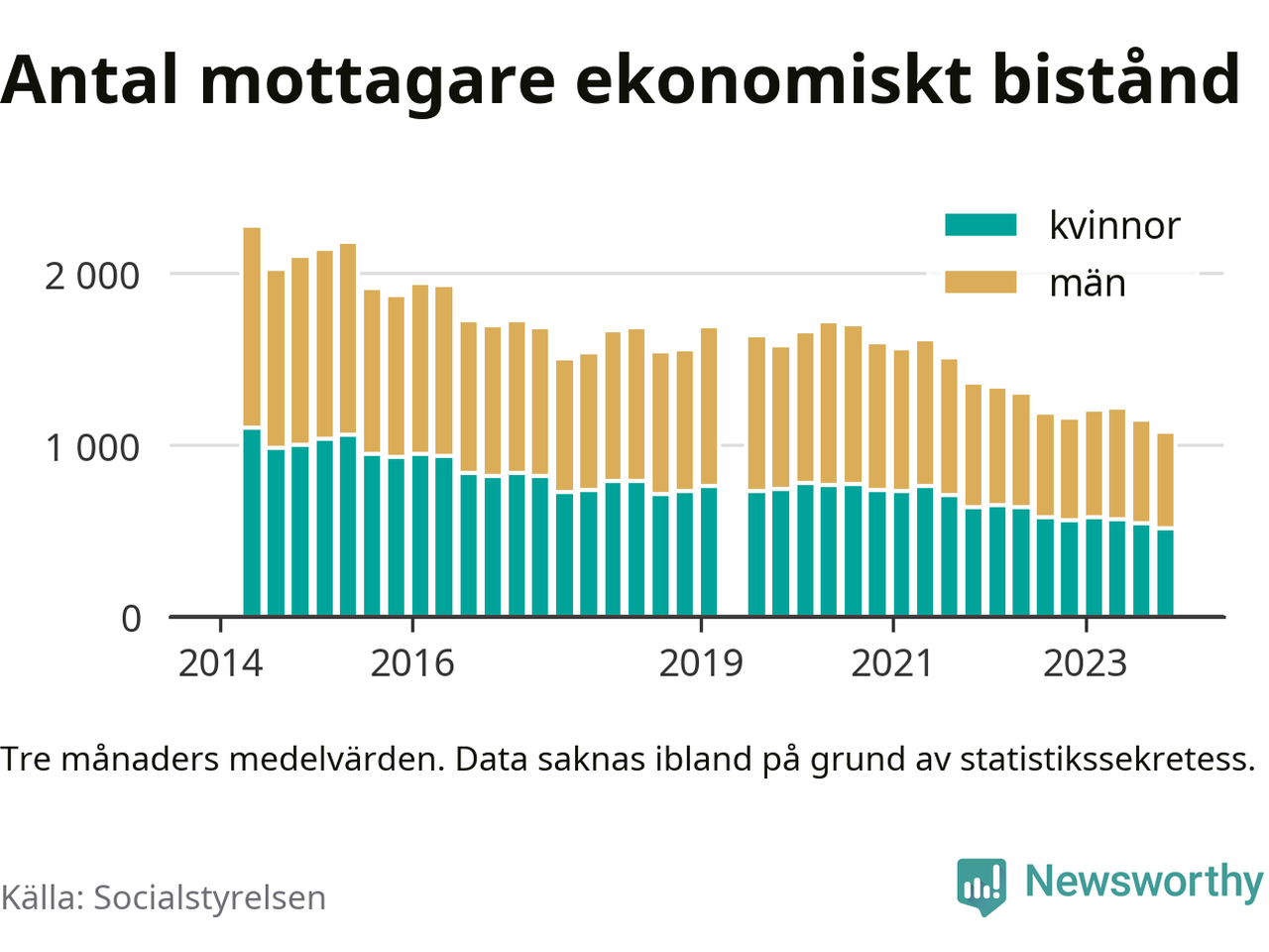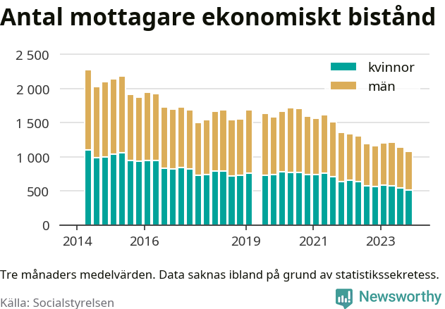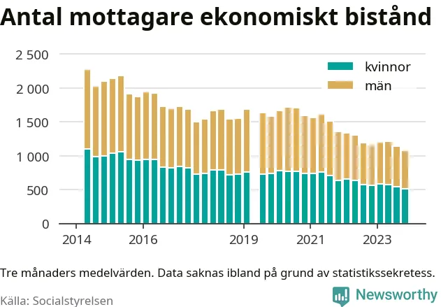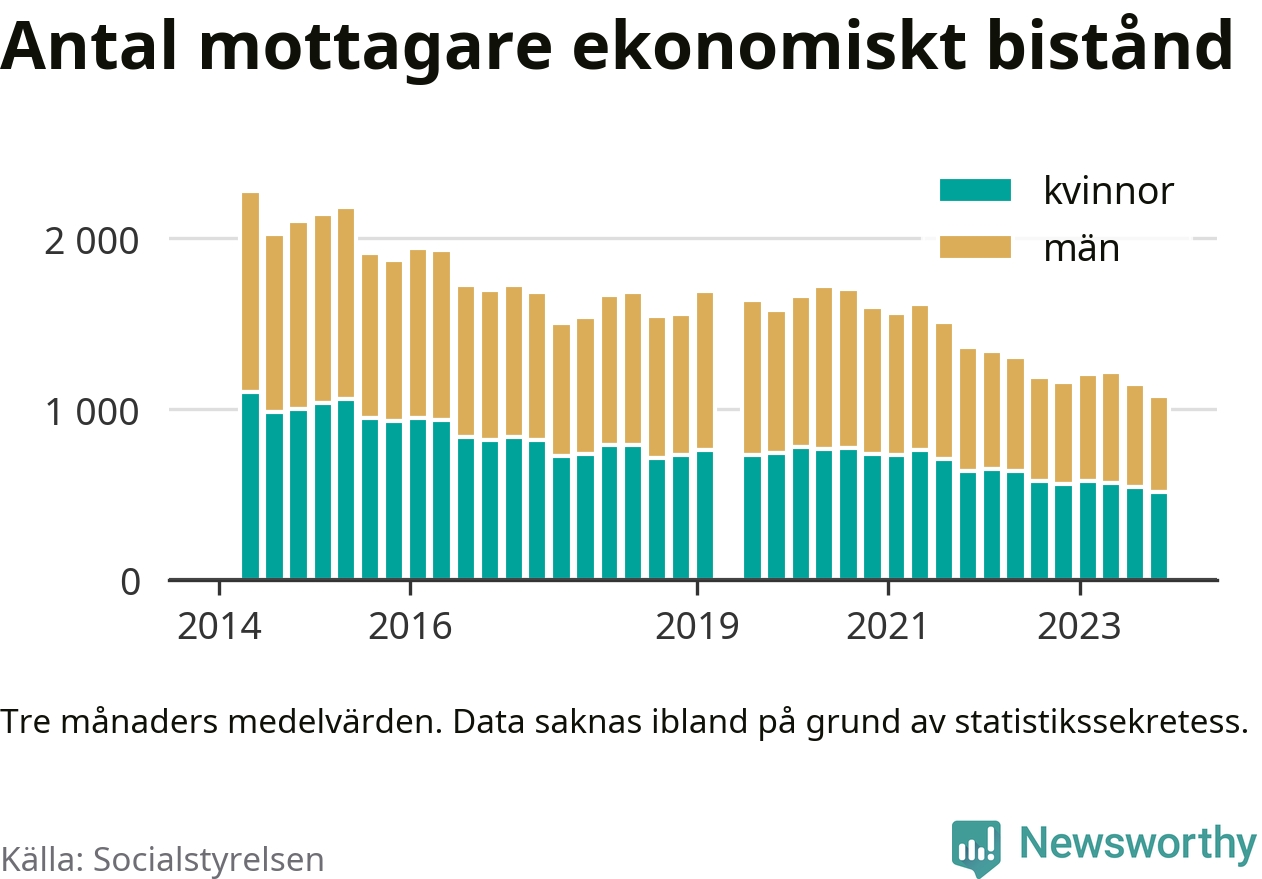 I genomsnitt 1 076 personer per månad fick ekonomiskt bistånd i Jönköpings kommun