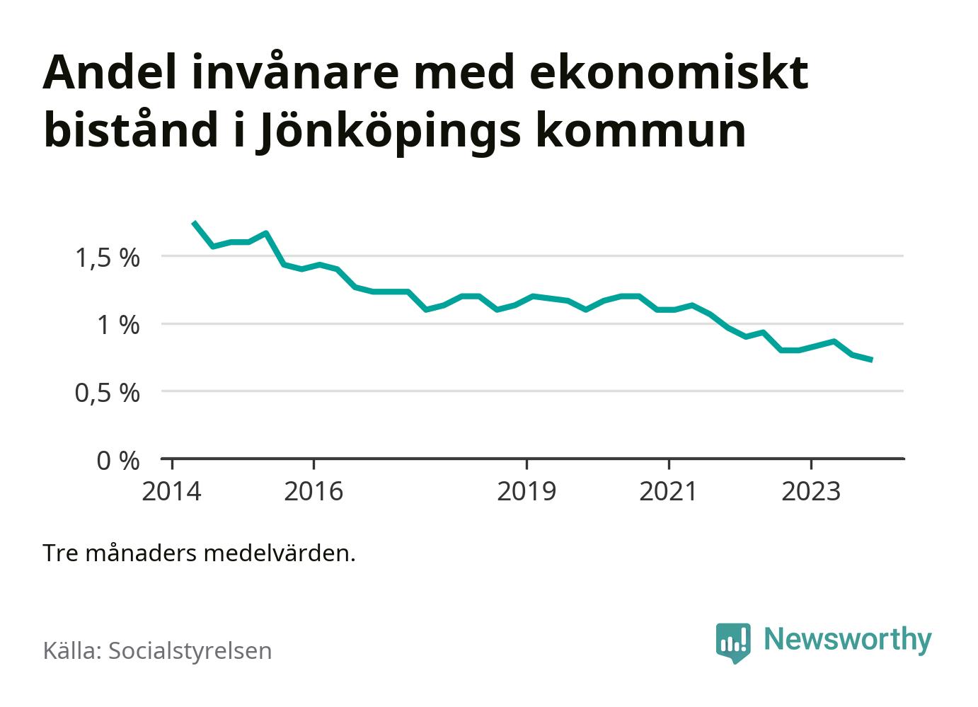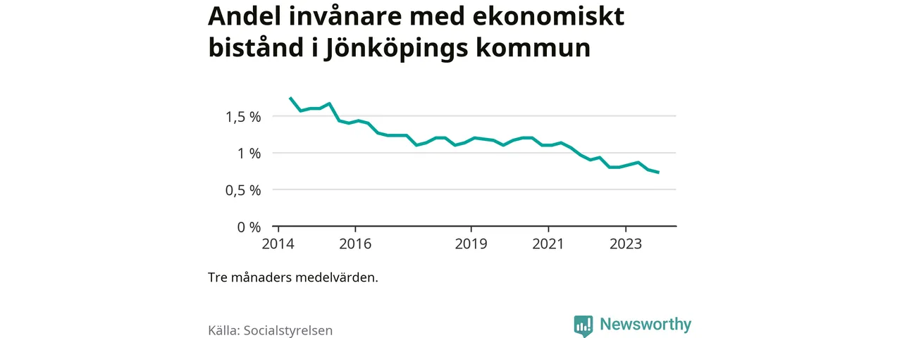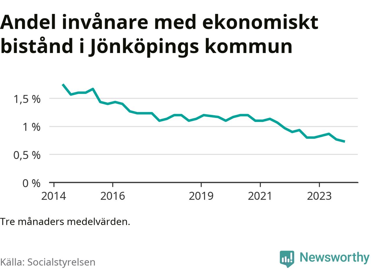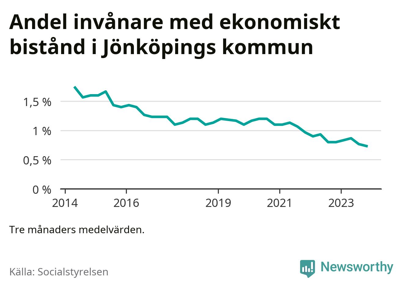 Andelen invånare med ekonomiskt bistånd i Jönköpings kommun