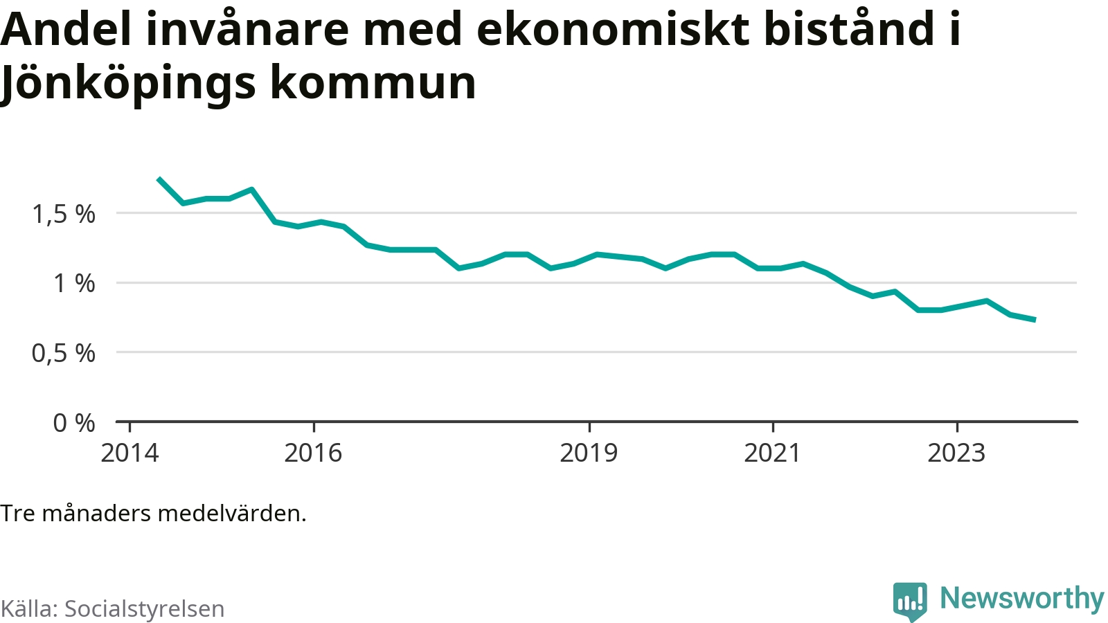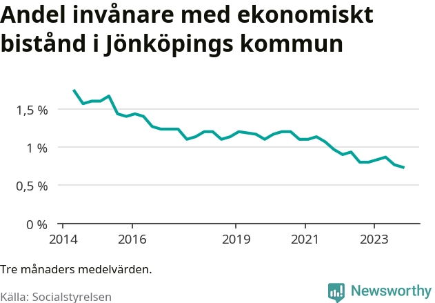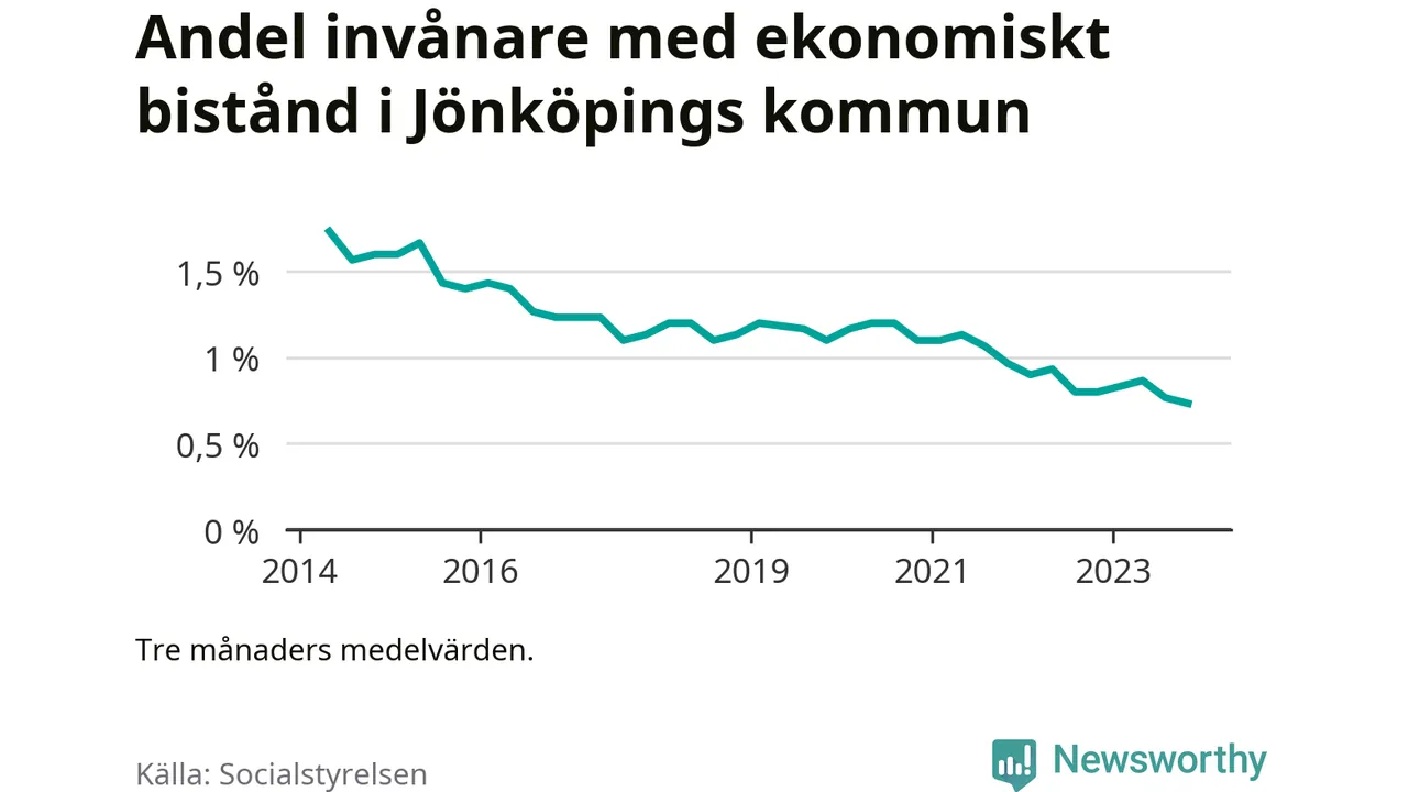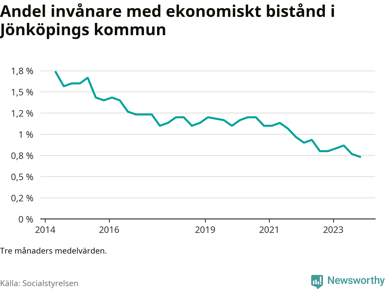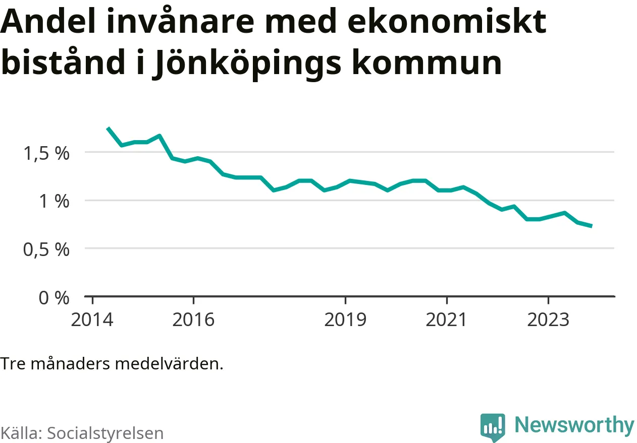 Andelen invånare med ekonomiskt bistånd i Jönköpings kommun