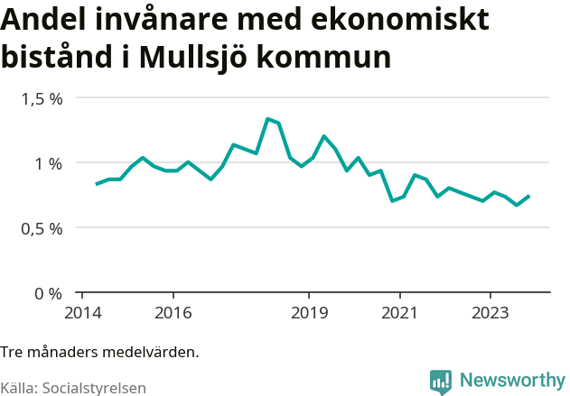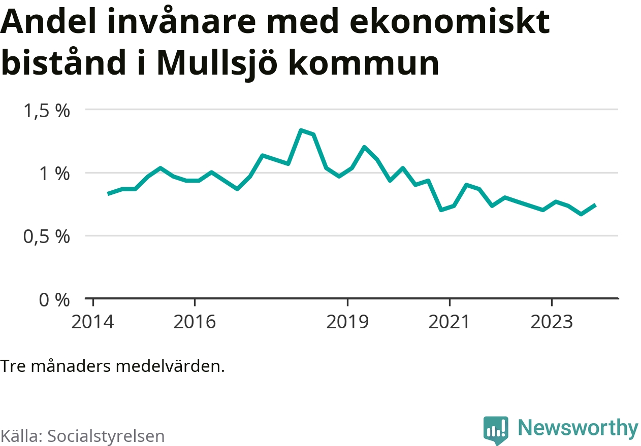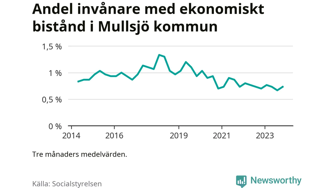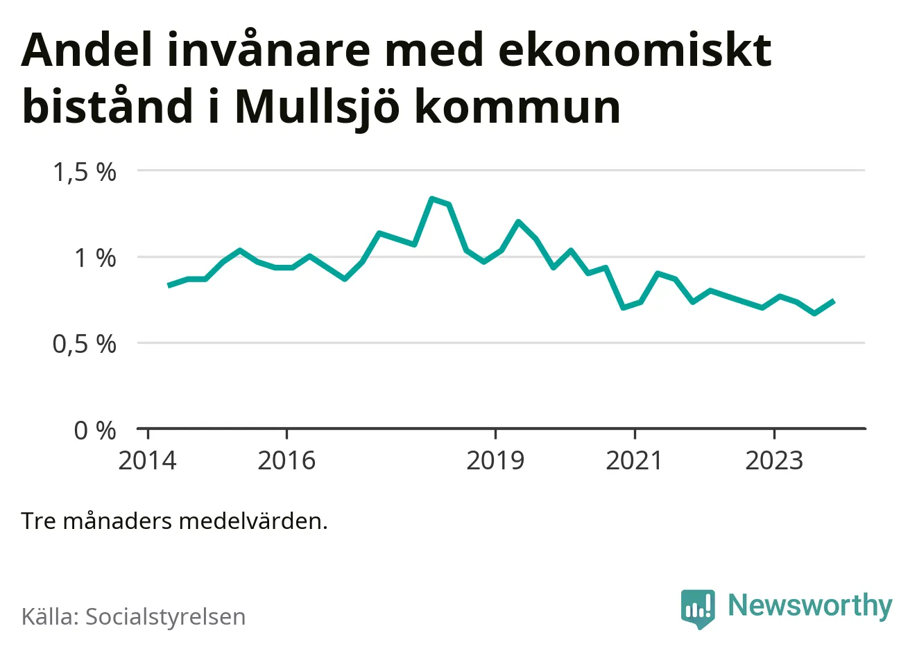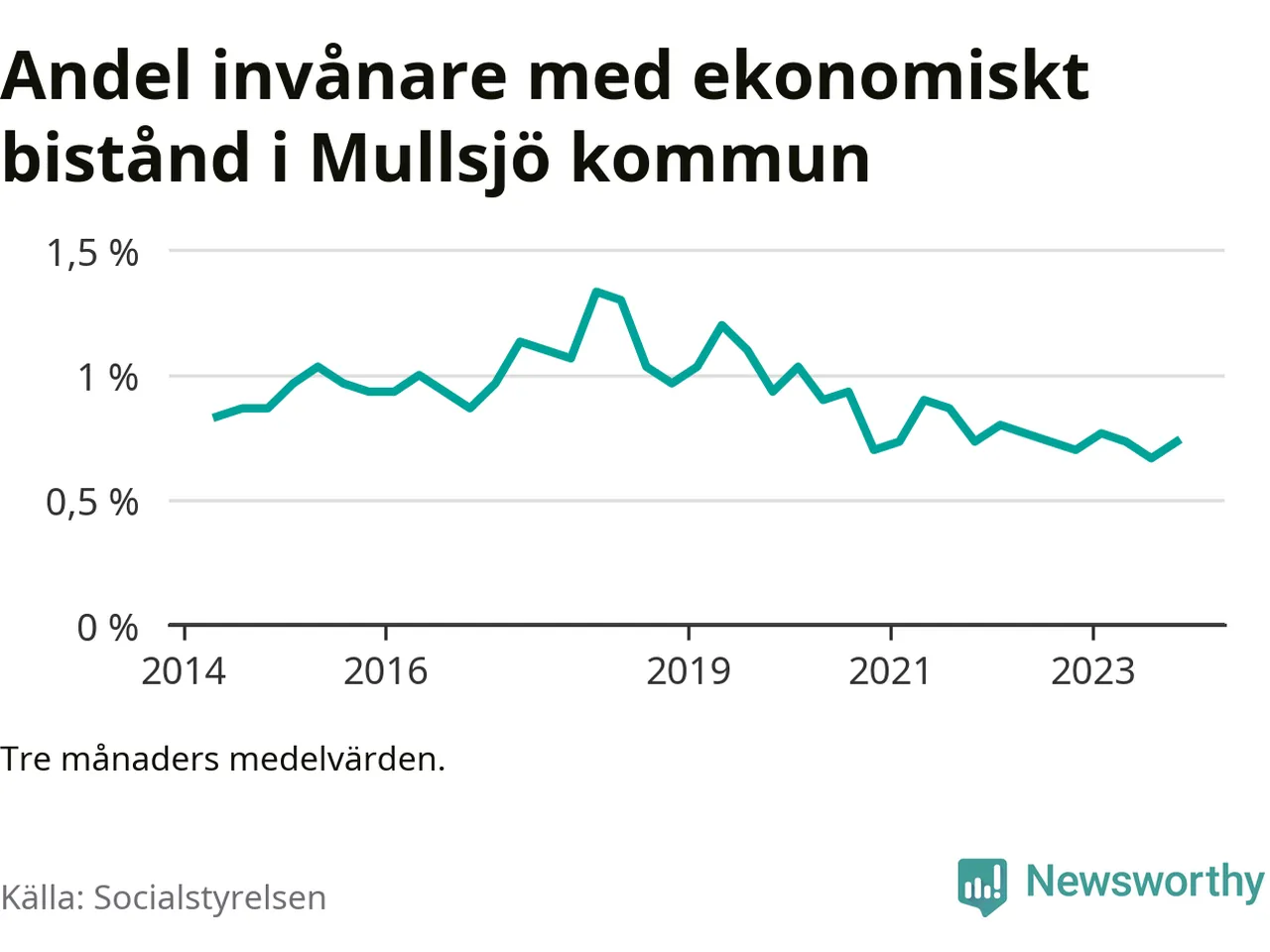 I genomsnitt 56 personer per månad fick ekonomiskt bistånd i Mullsjö kommun