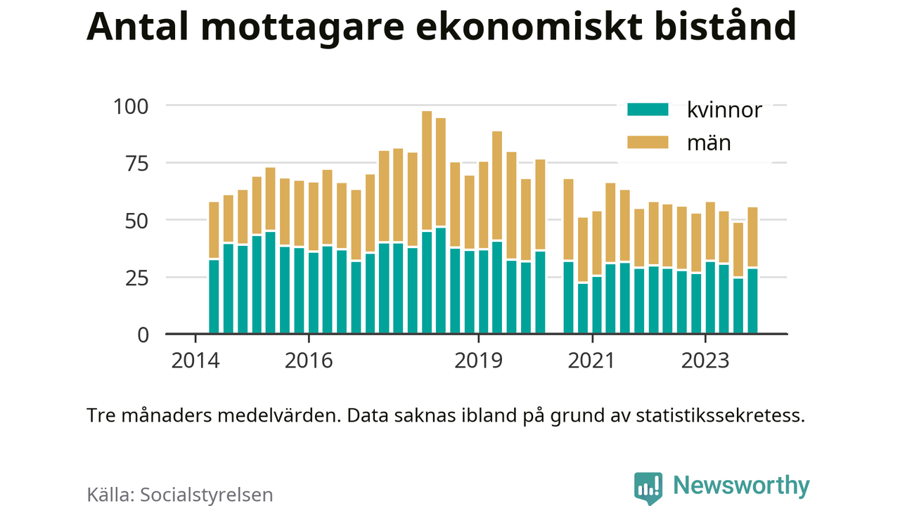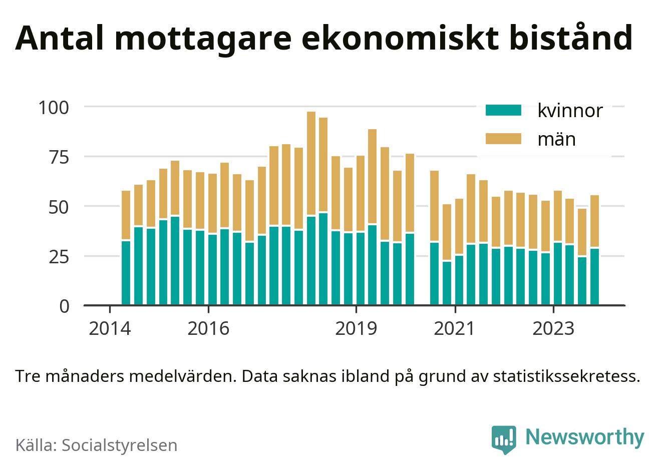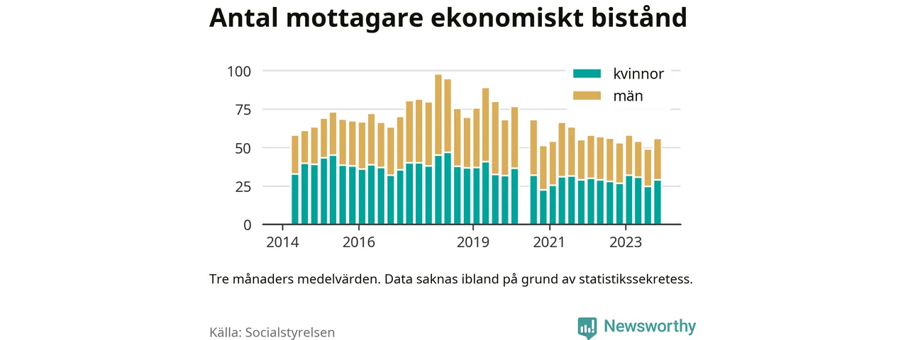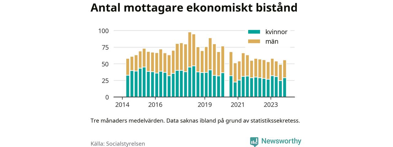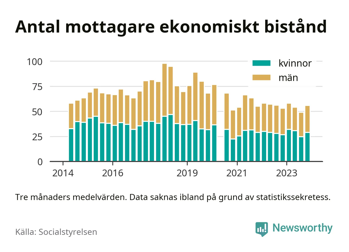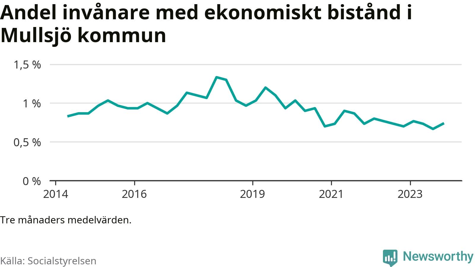 I genomsnitt 56 personer per månad fick ekonomiskt bistånd i Mullsjö kommun