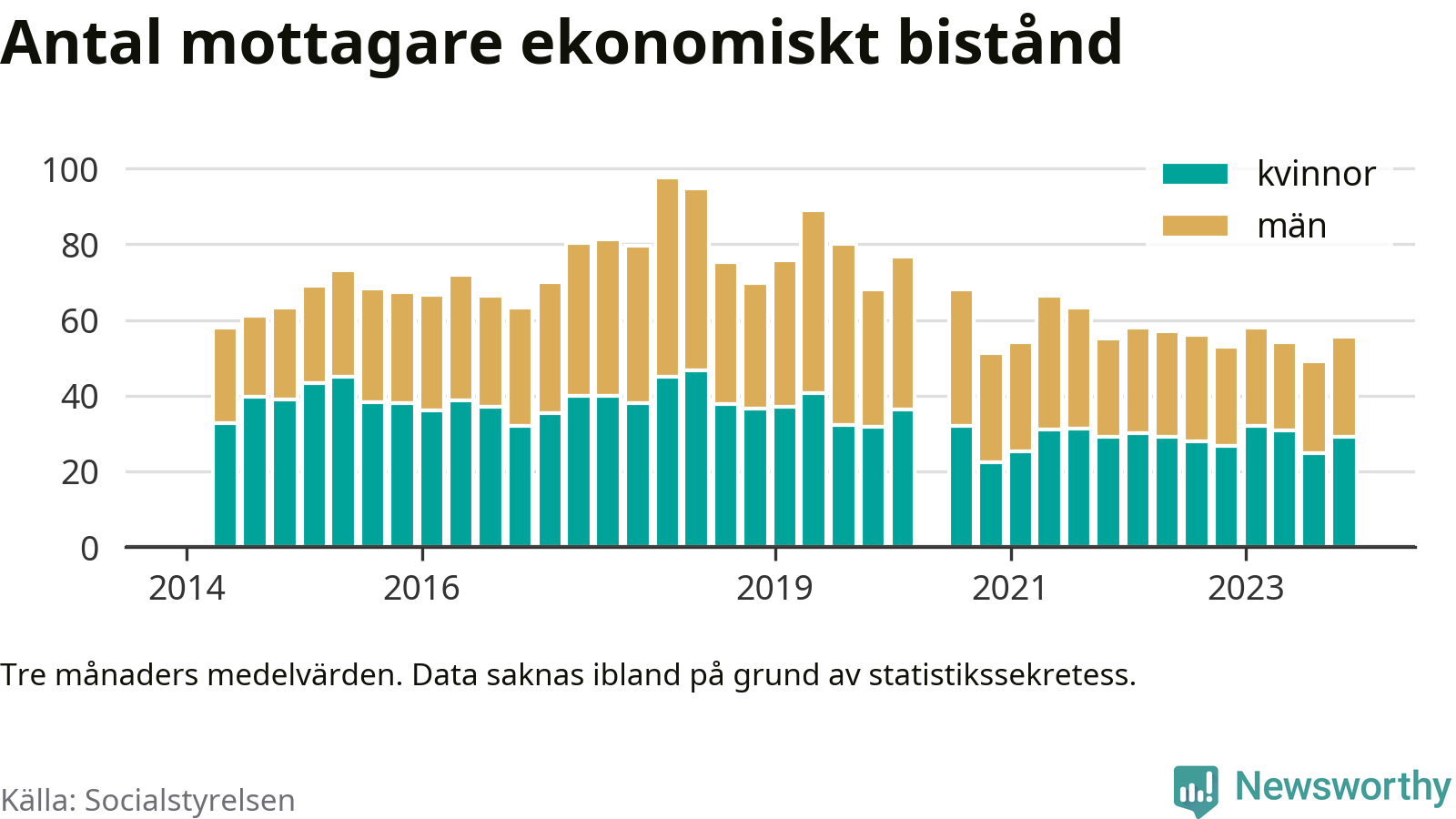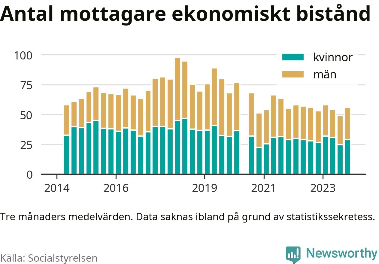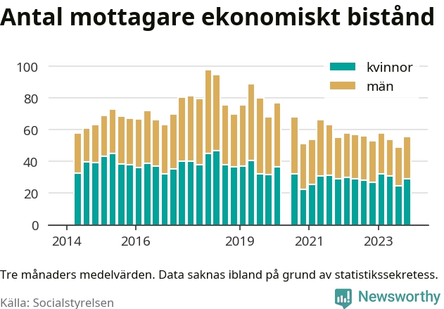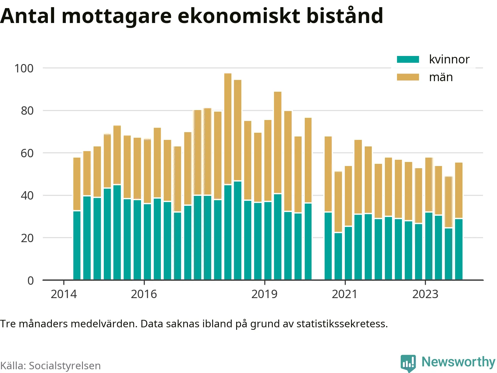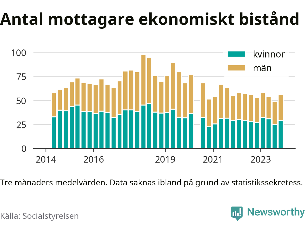 I genomsnitt 56 personer per månad fick ekonomiskt bistånd i Mullsjö kommun