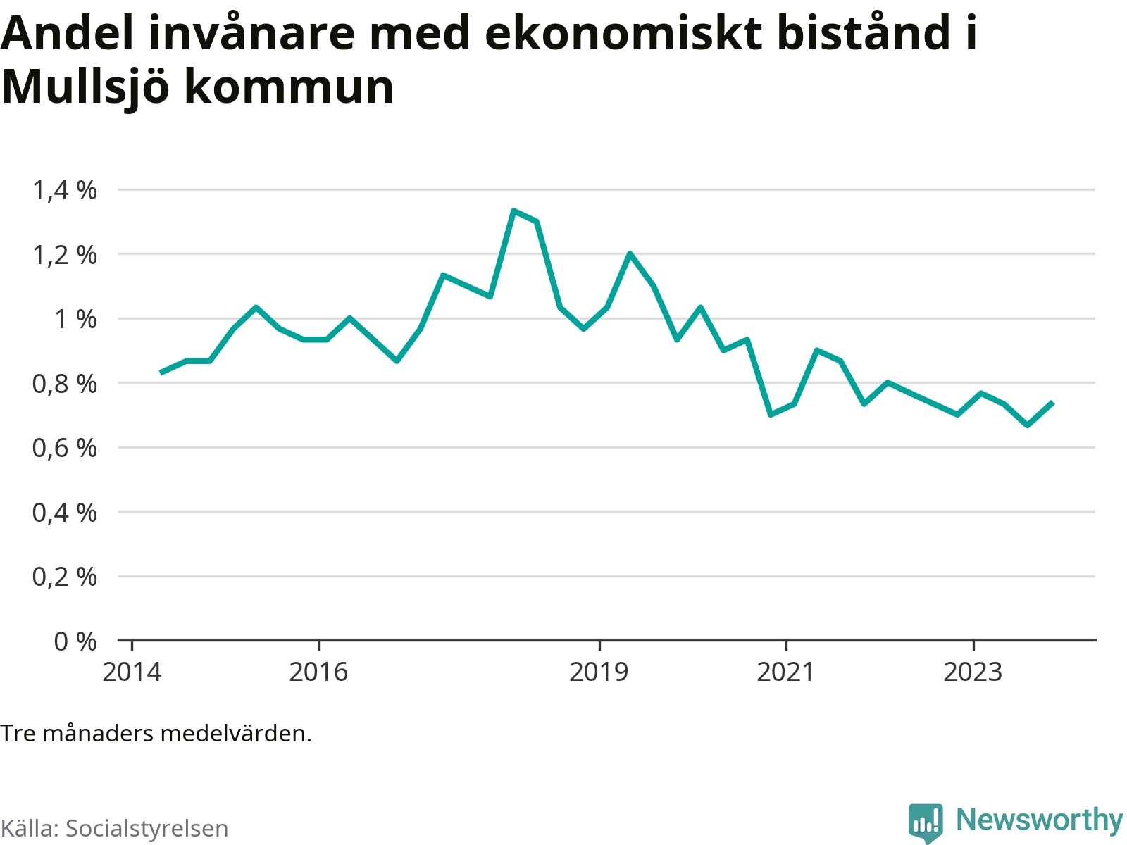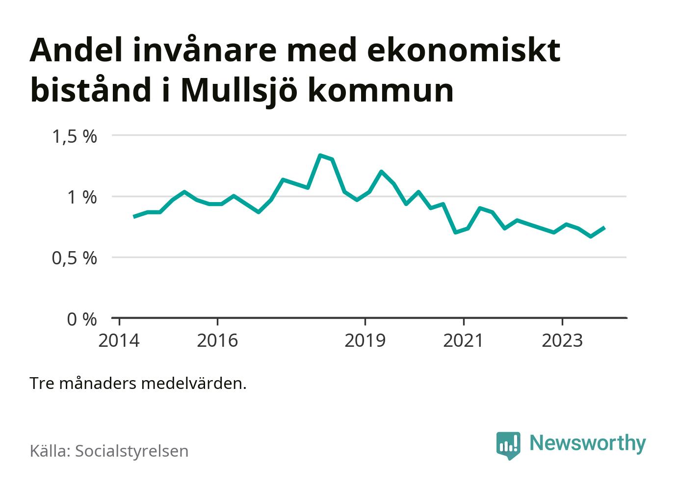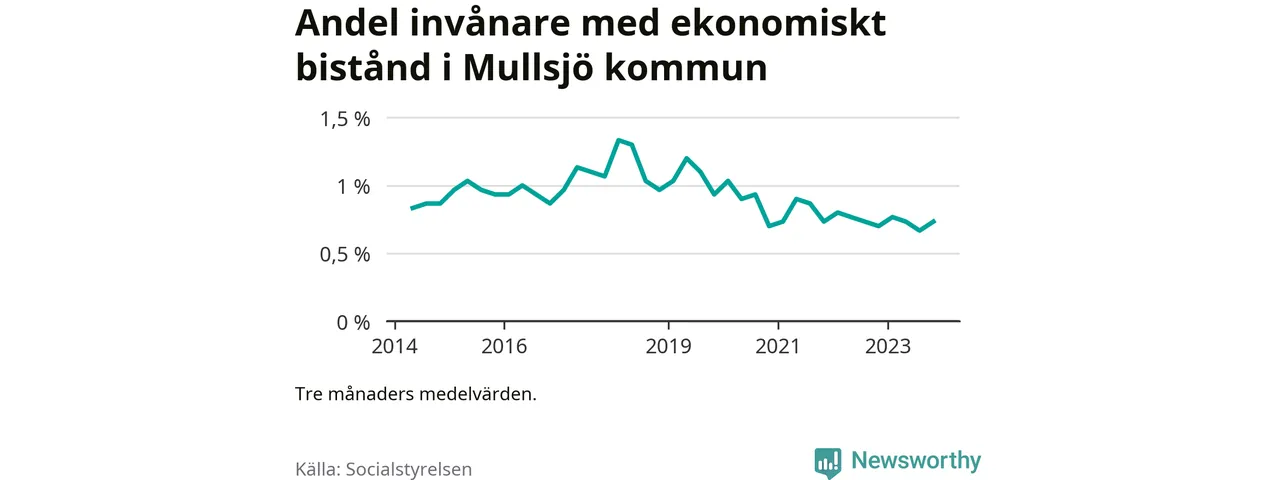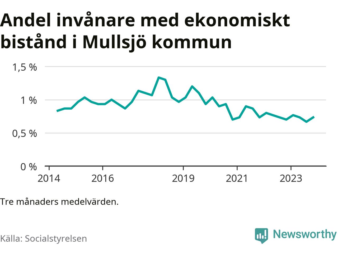 Andelen invånare med ekonomiskt bistånd i Mullsjö kommun