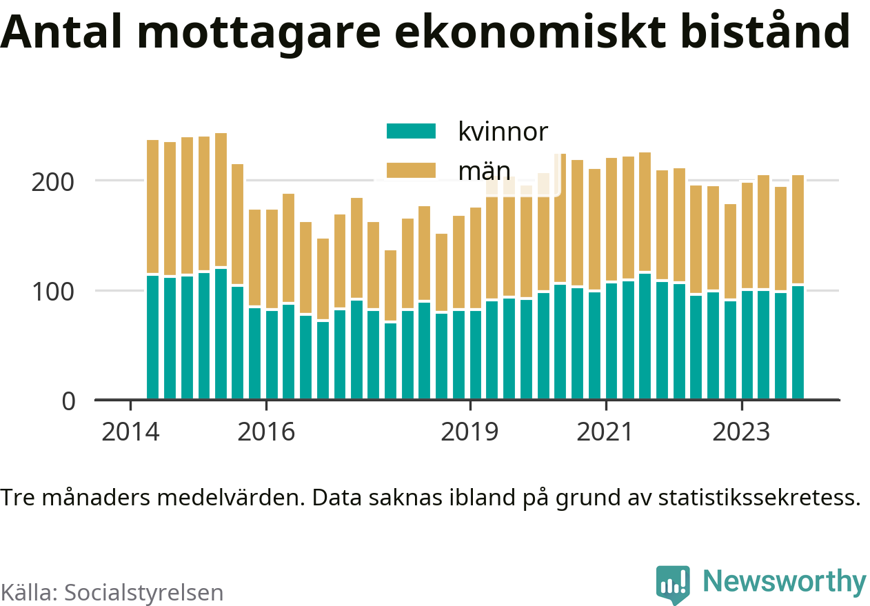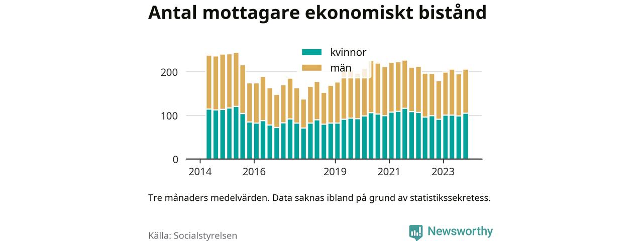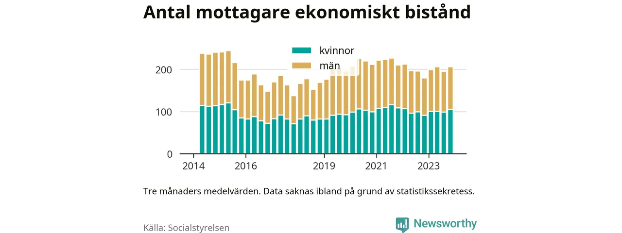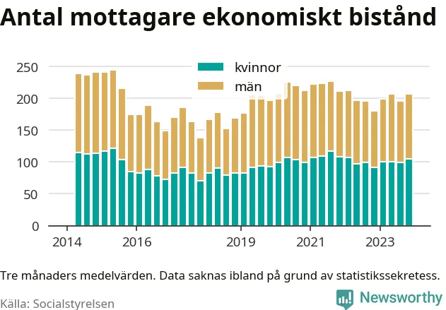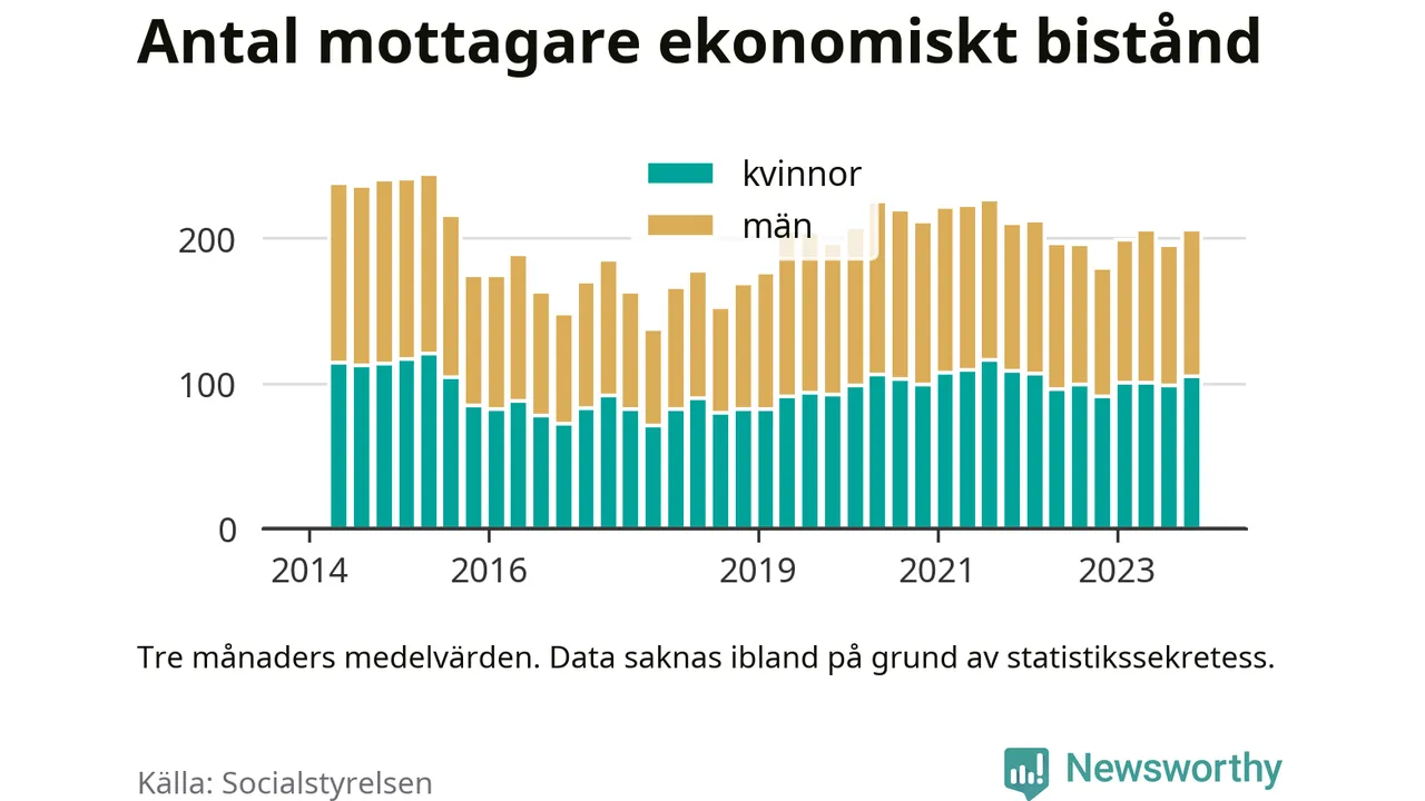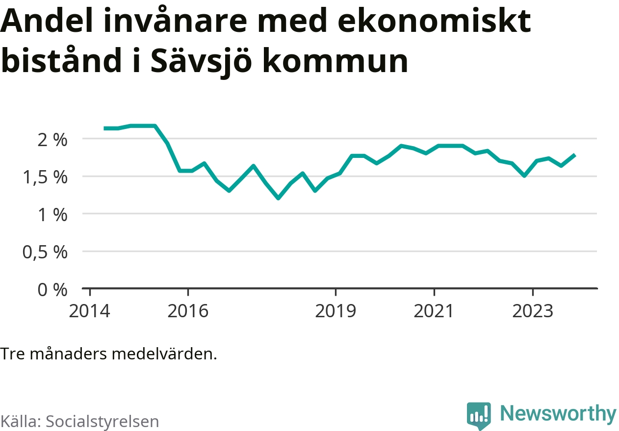 I genomsnitt 206 personer per månad fick ekonomiskt bistånd i Sävsjö kommun