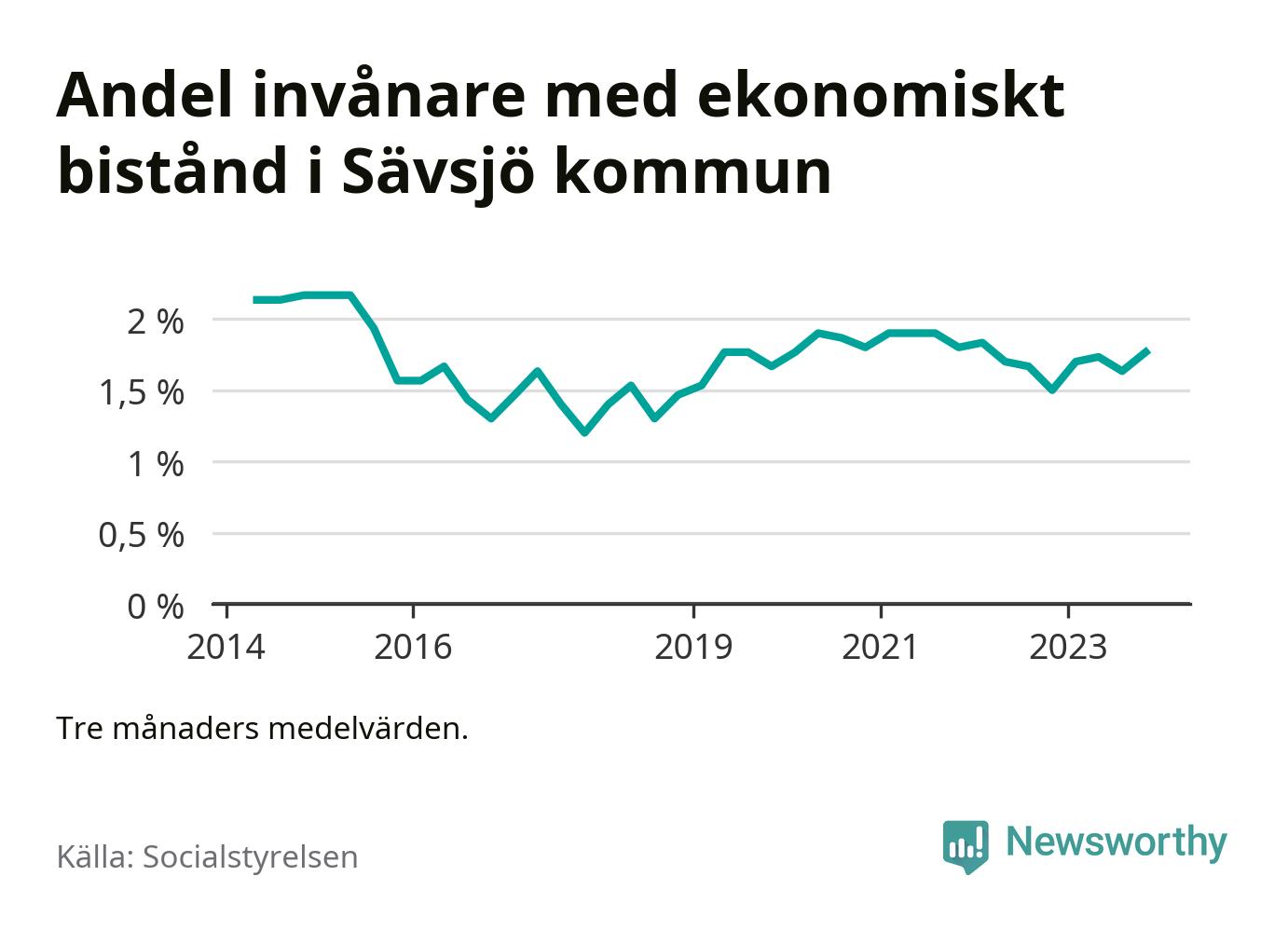 Andelen invånare med ekonomiskt bistånd i Sävsjö kommun