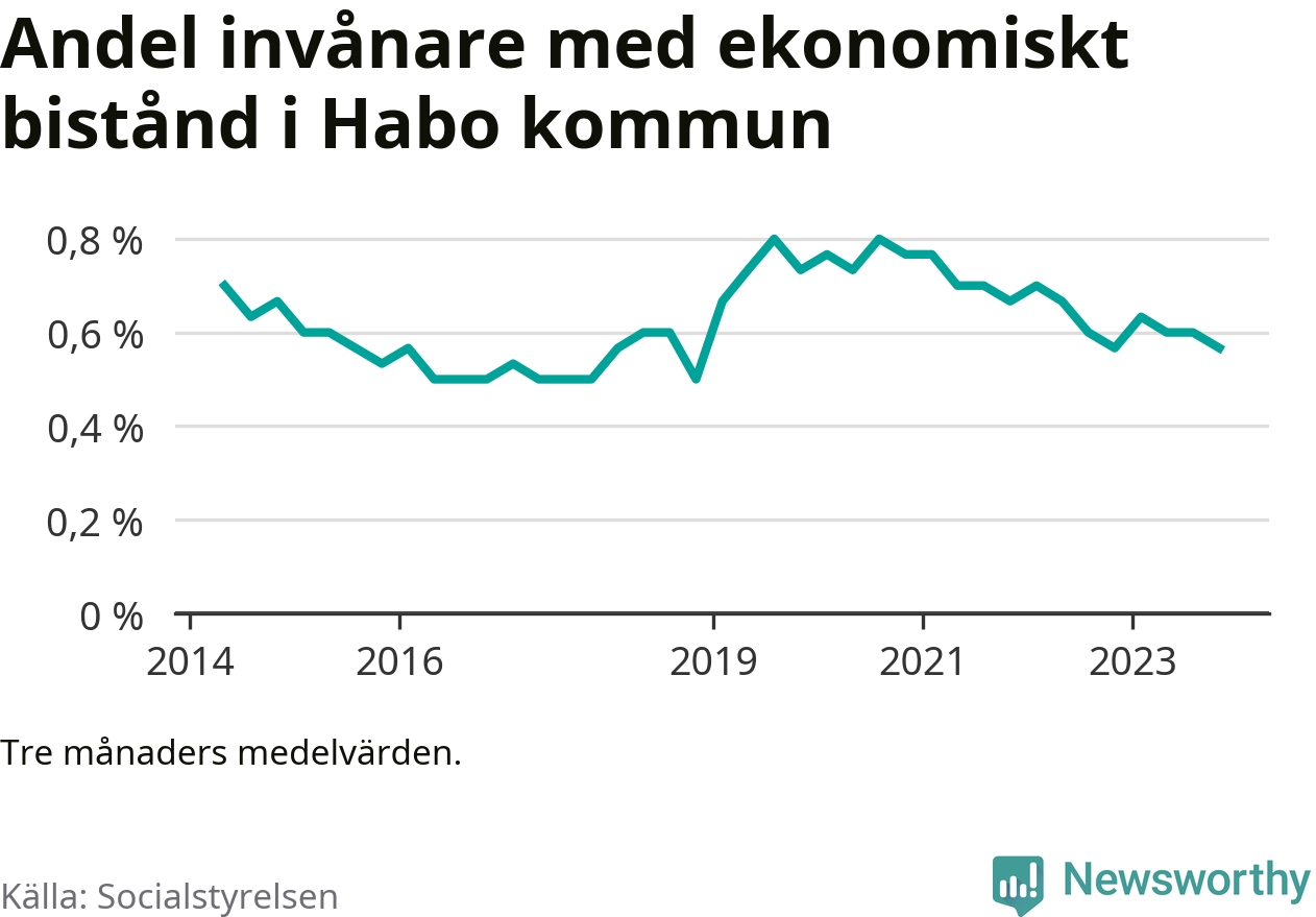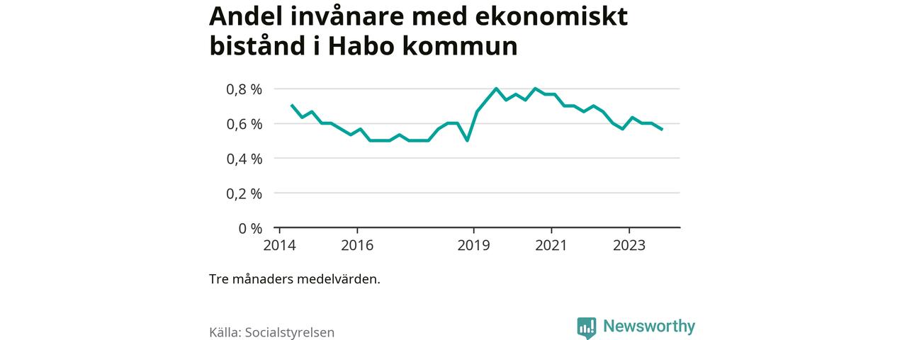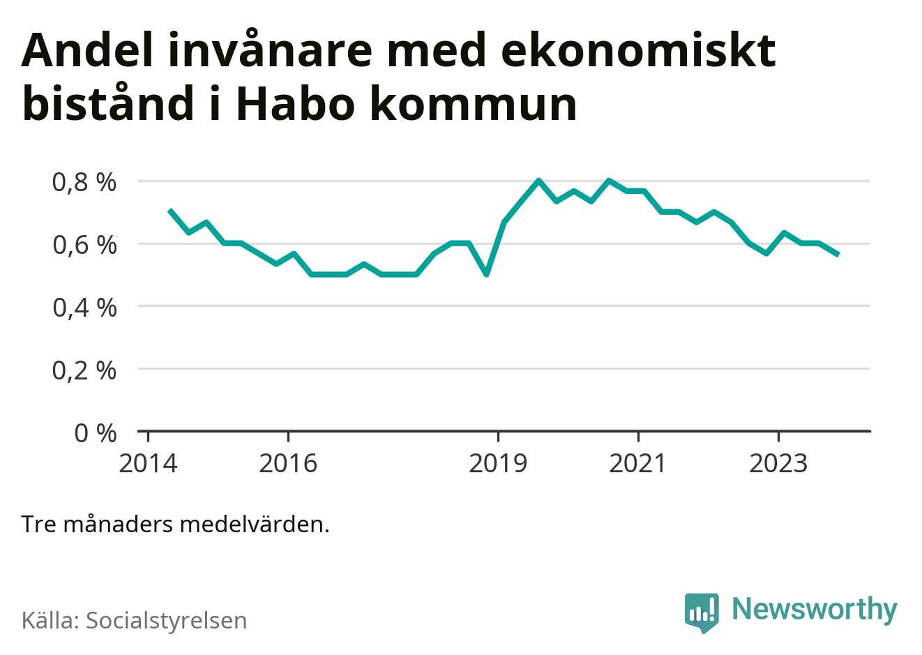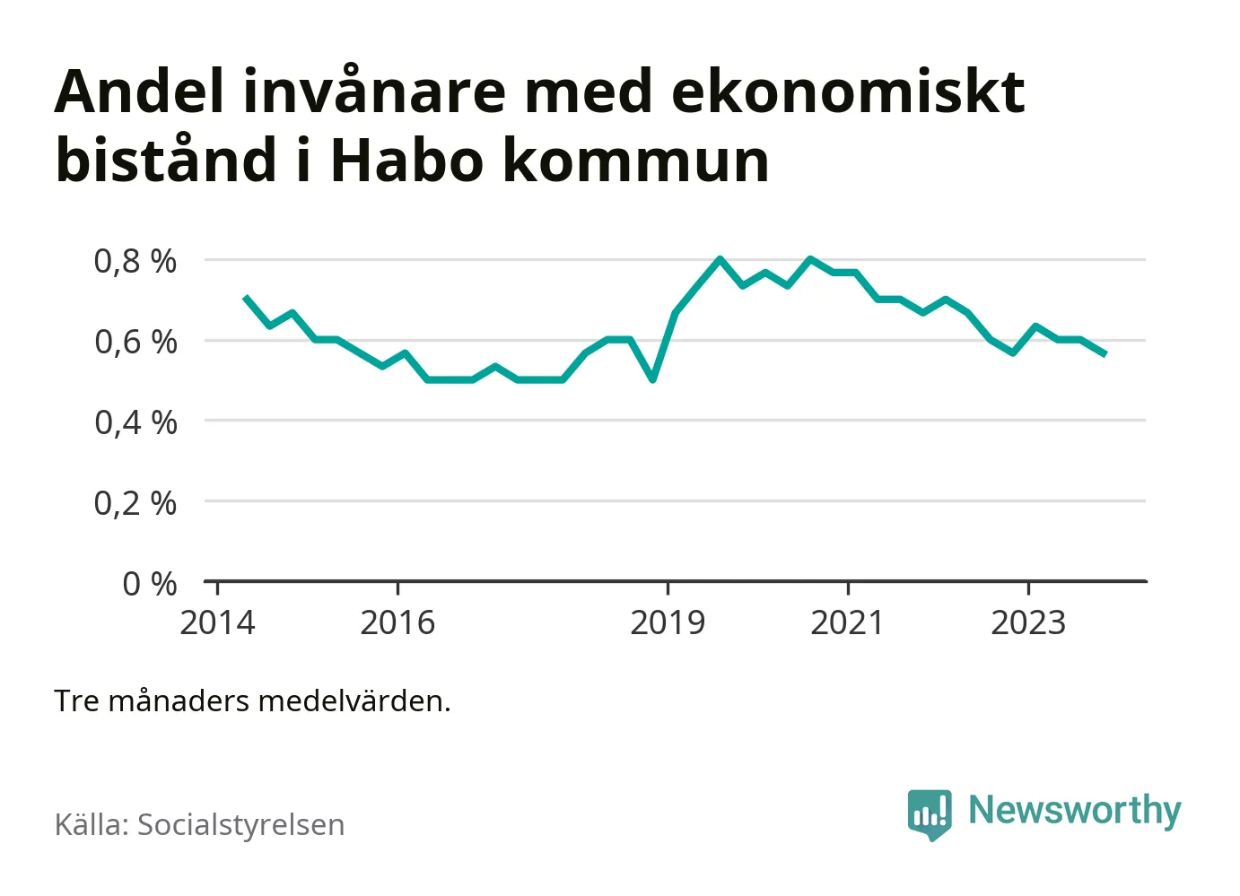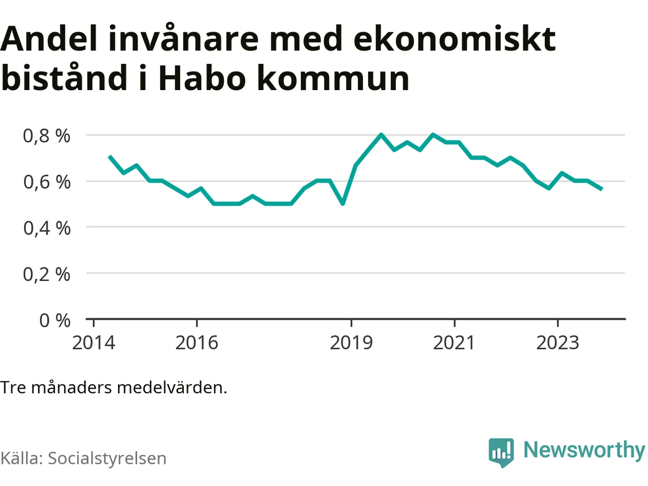 I genomsnitt 73 personer per månad fick ekonomiskt bistånd i Habo kommun