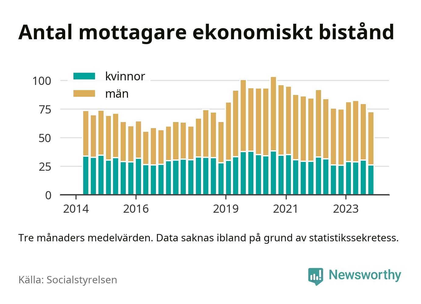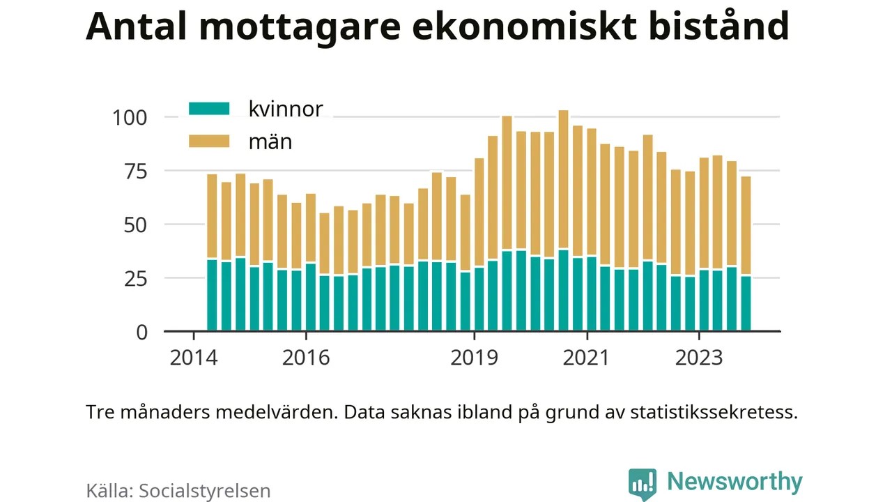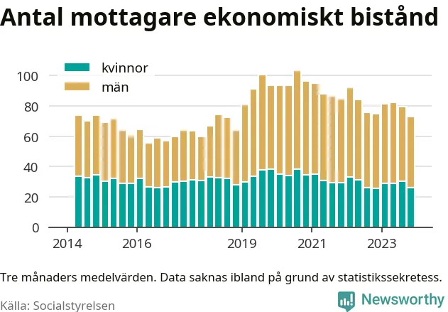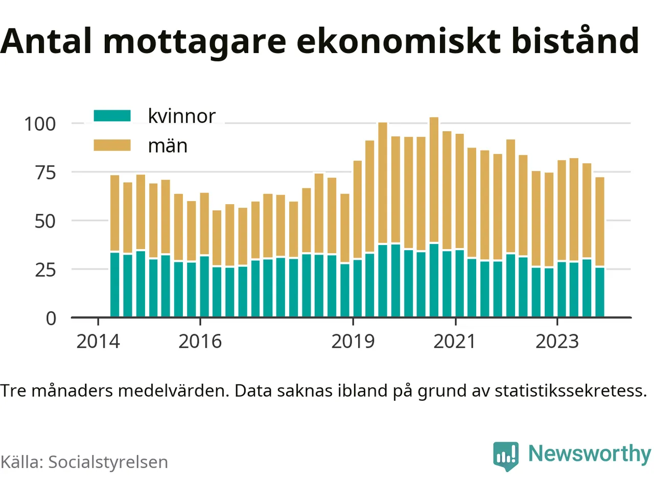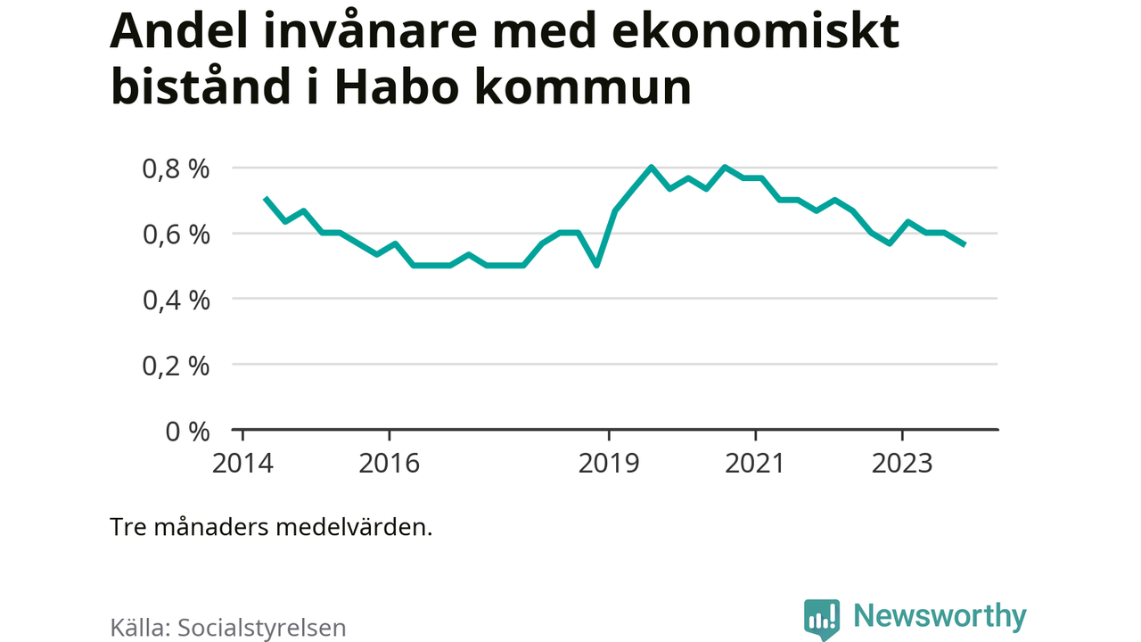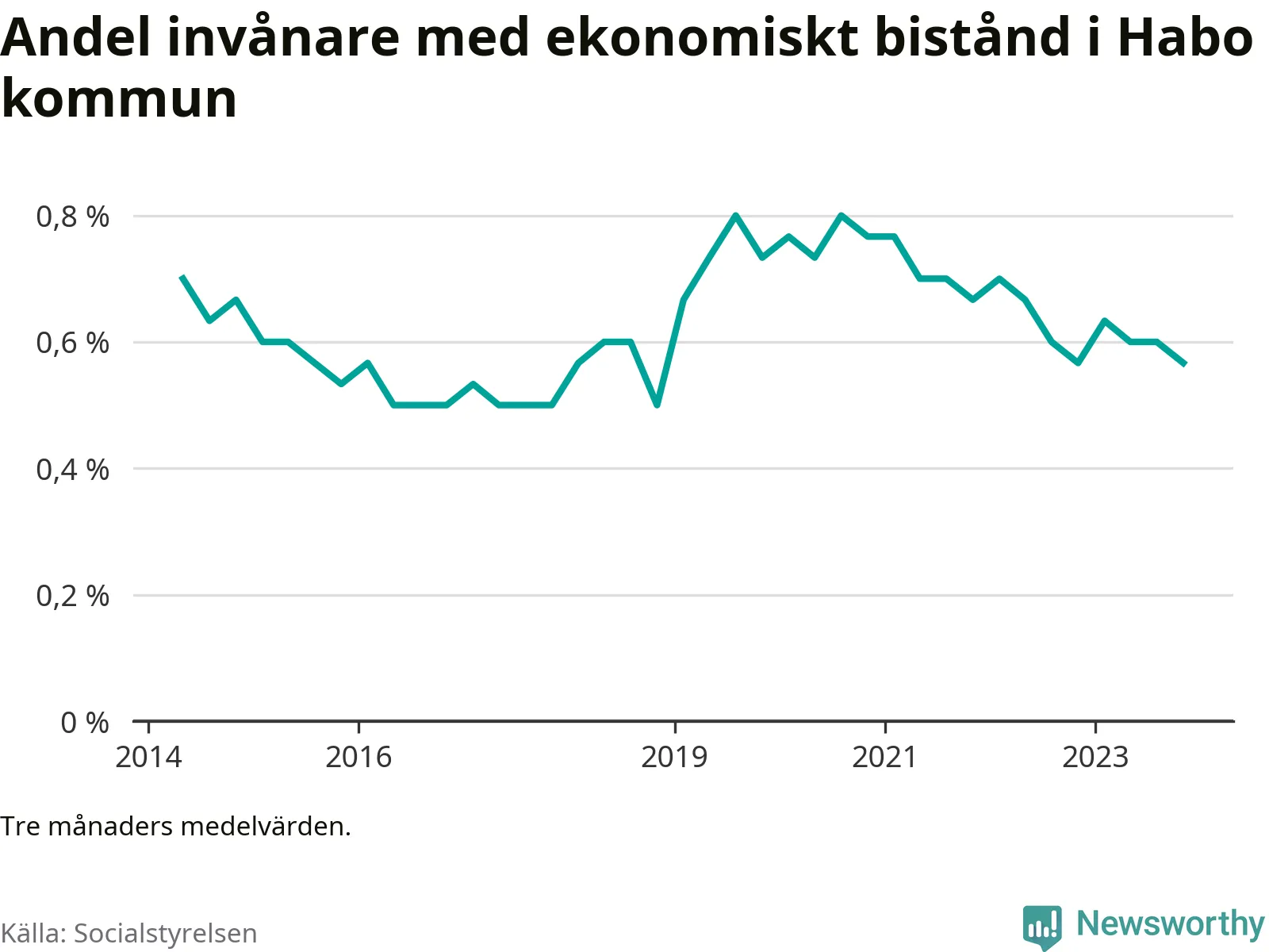 I genomsnitt 73 personer per månad fick ekonomiskt bistånd i Habo kommun