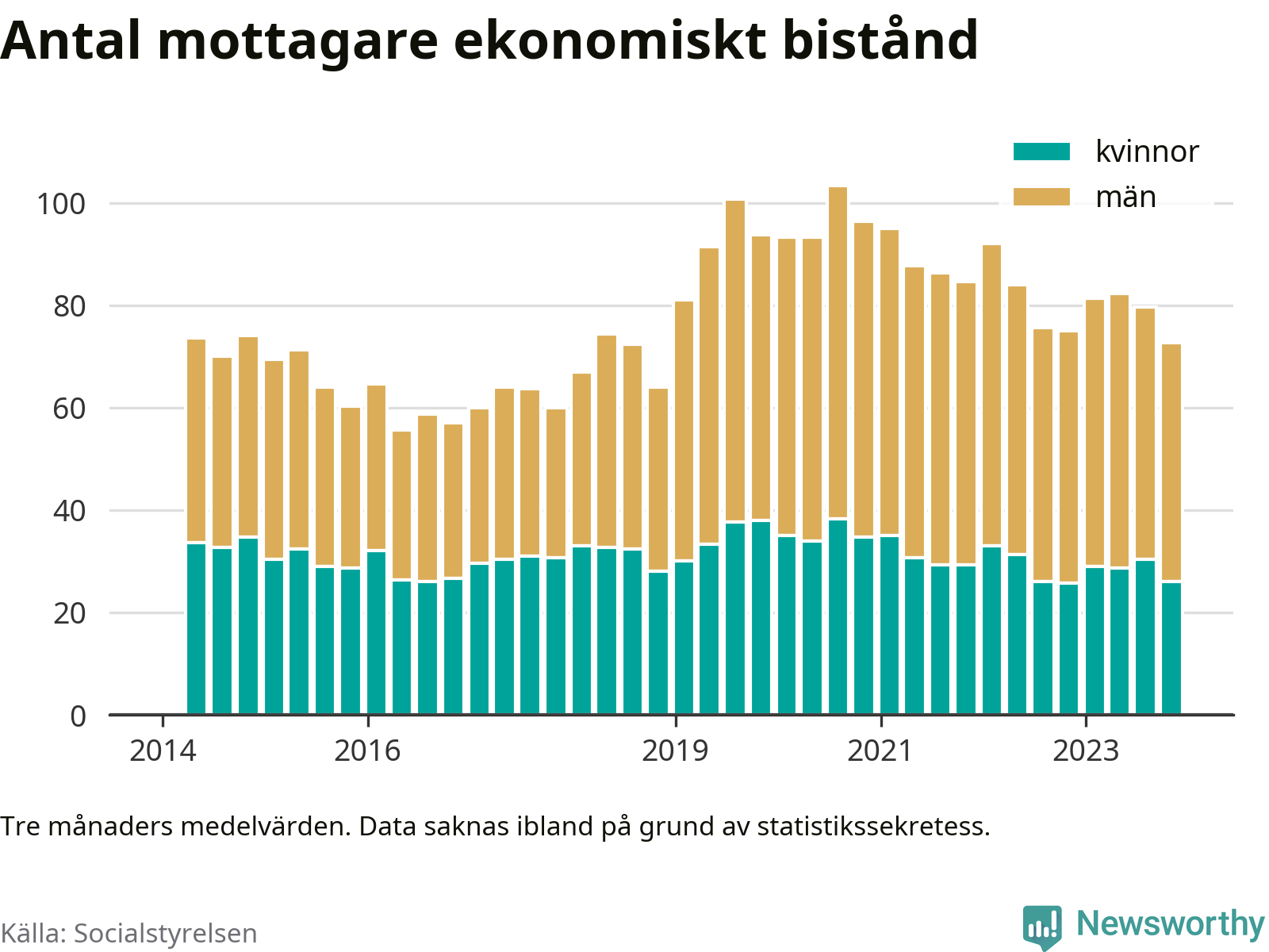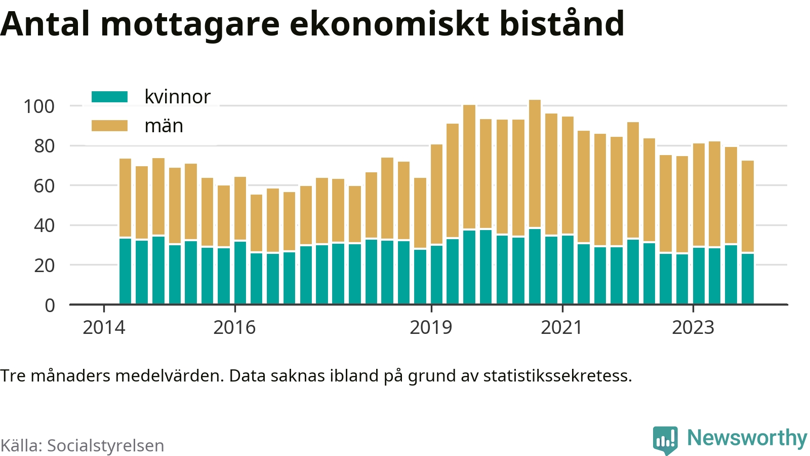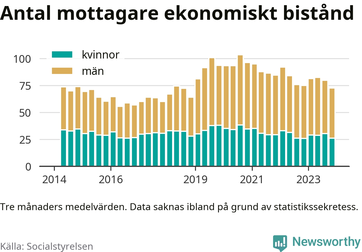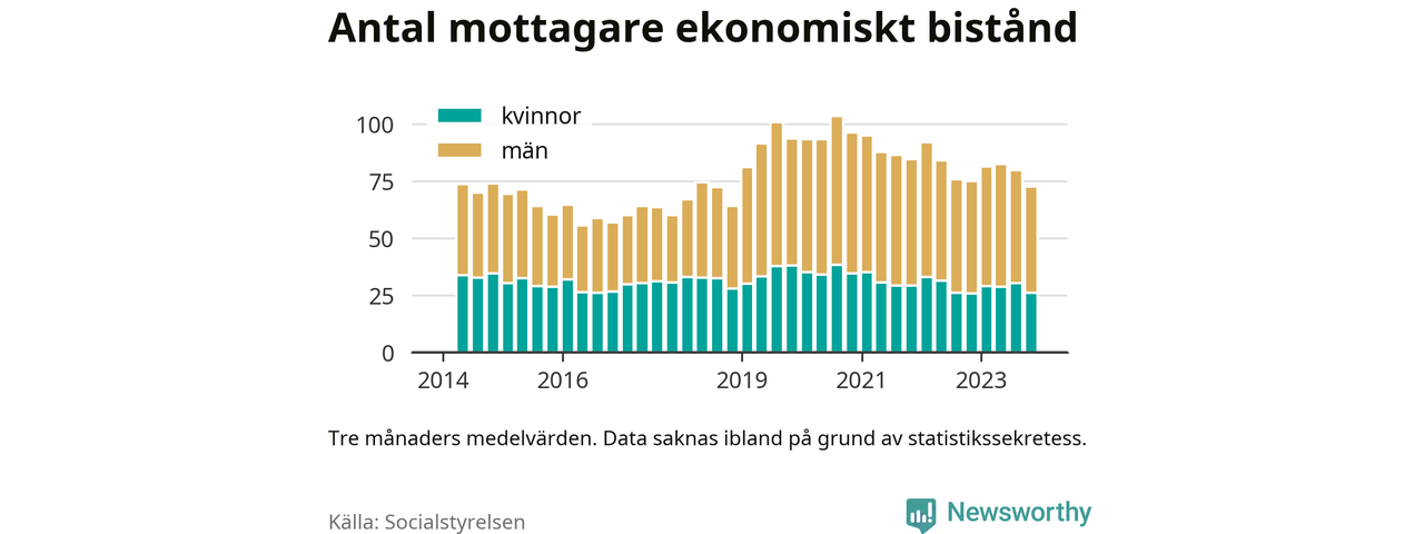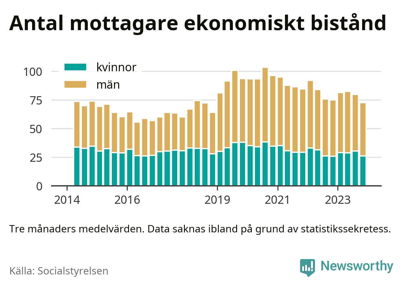 I genomsnitt 73 personer per månad fick ekonomiskt bistånd i Habo kommun