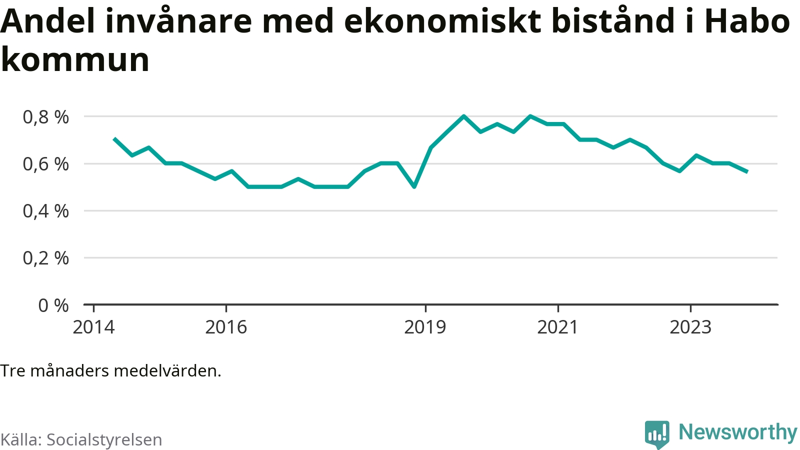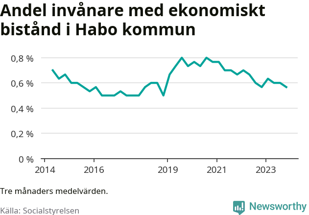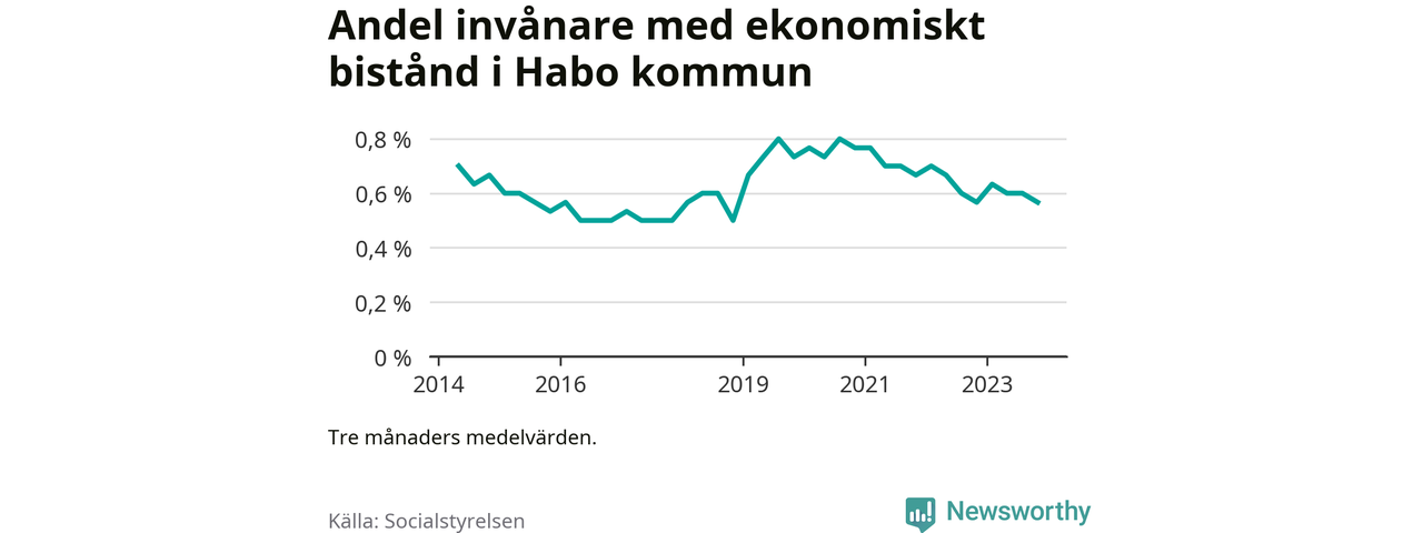 Andelen invånare med ekonomiskt bistånd i Habo kommun