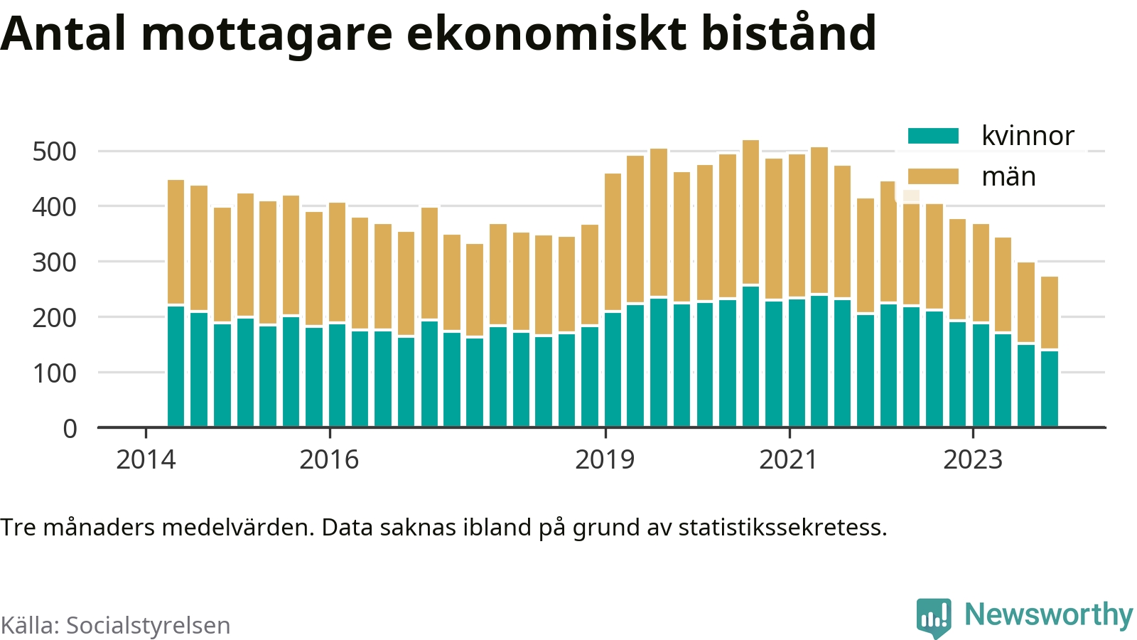 sedan åtminstone 2014, vilket är så långt tillbaka Socialstyrelsens statistik sträcker sig.