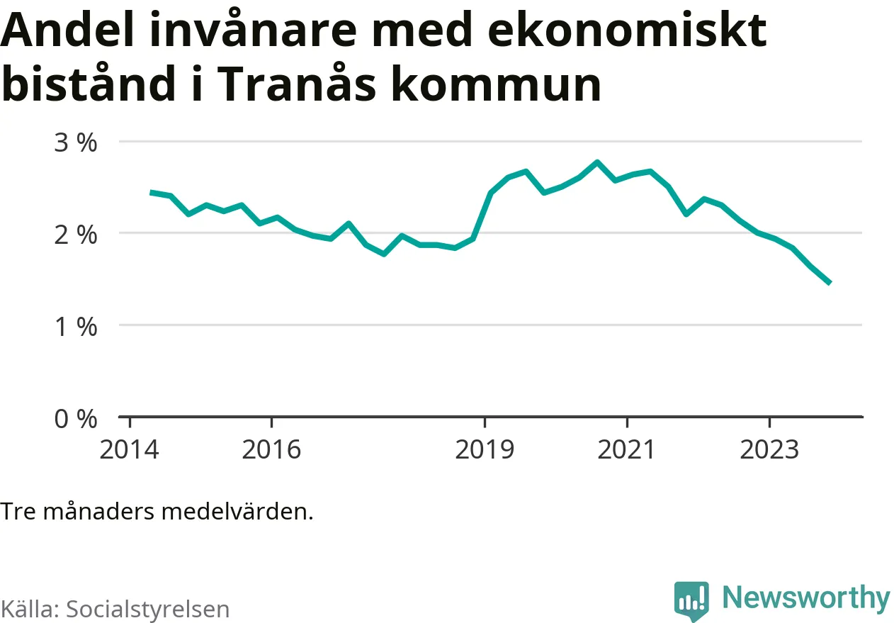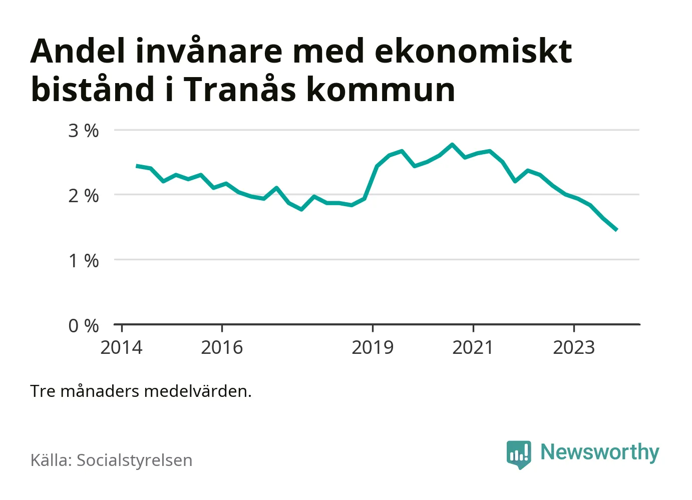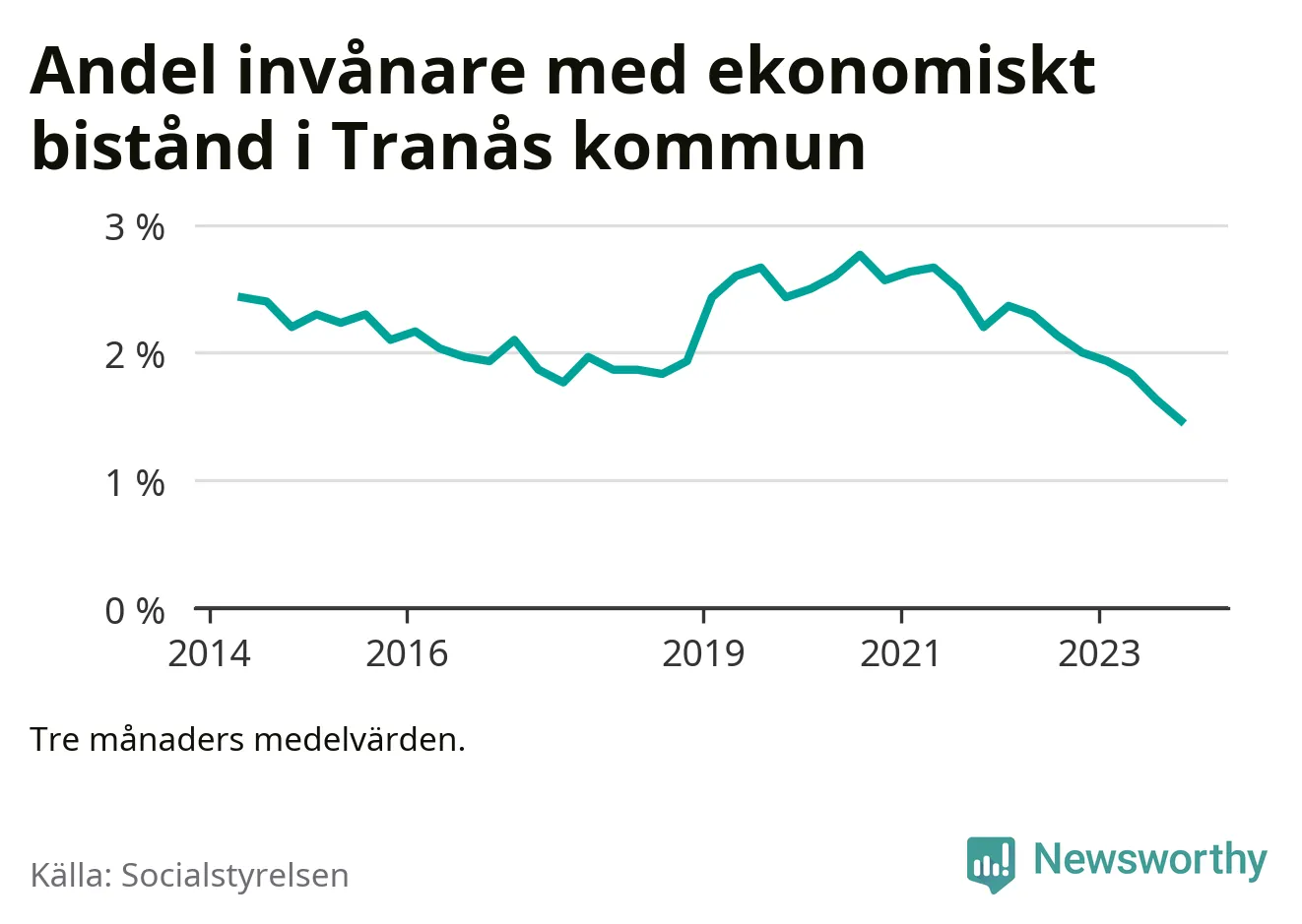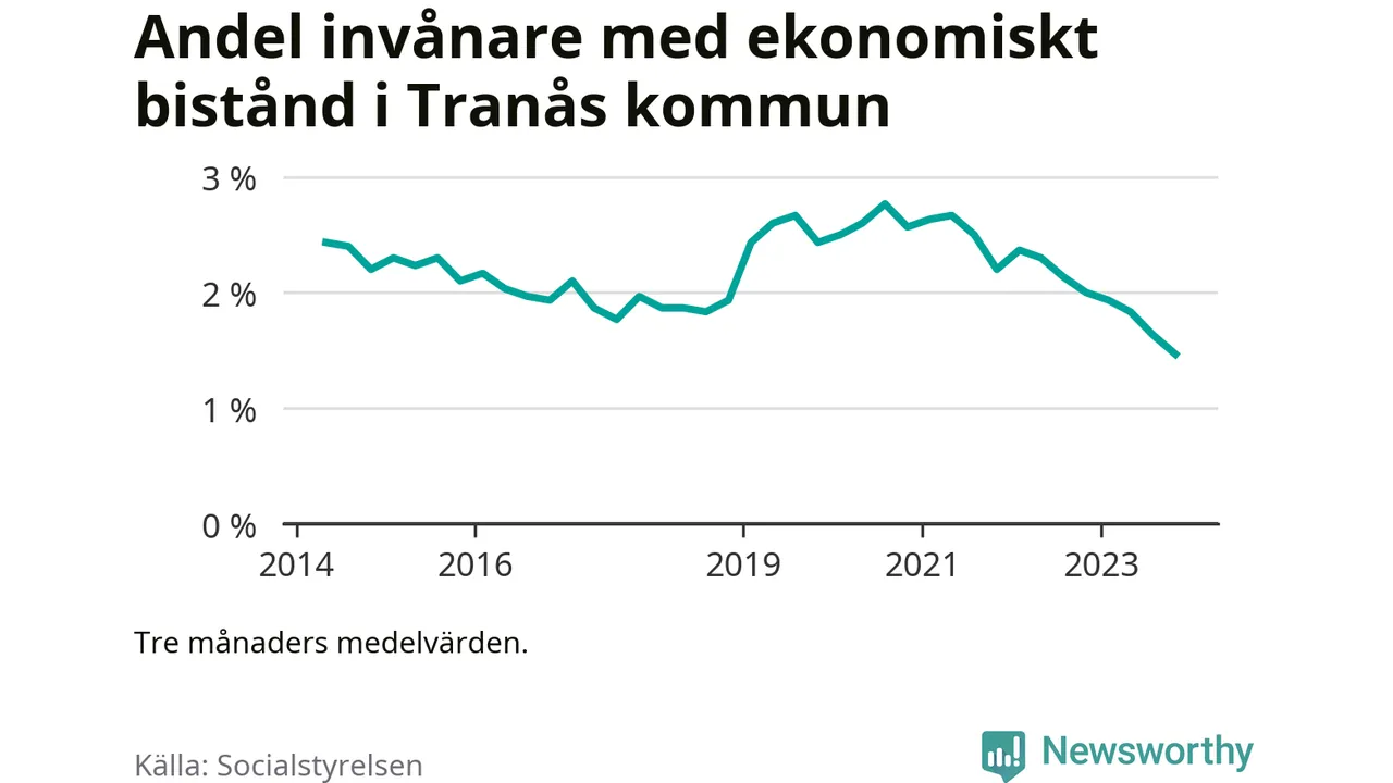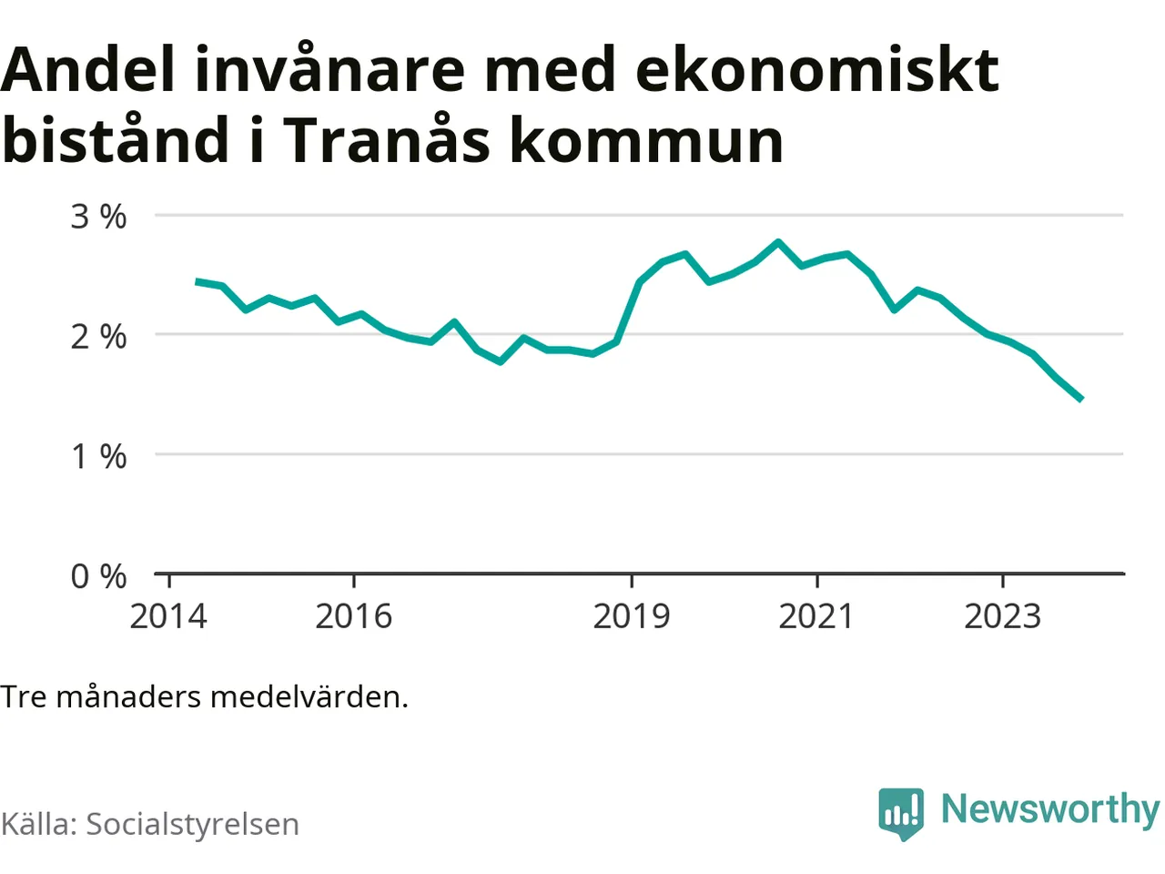 I genomsnitt 275 personer per månad fick ekonomiskt bistånd i Tranås kommun