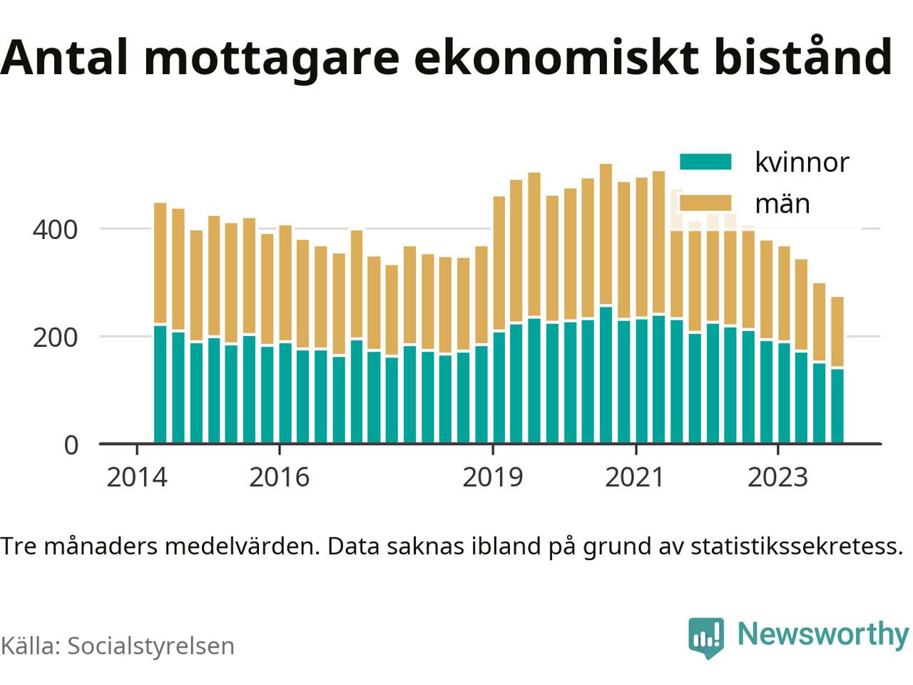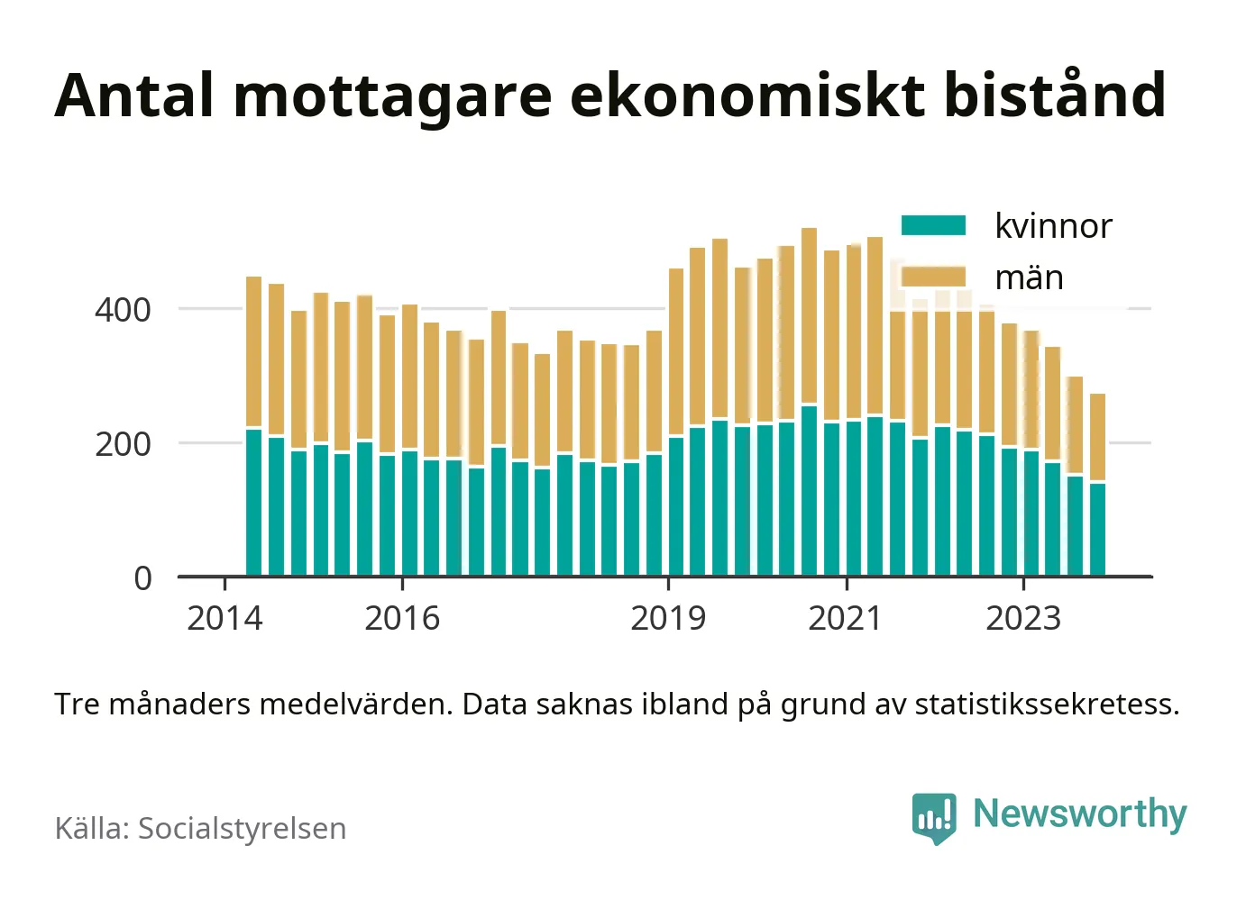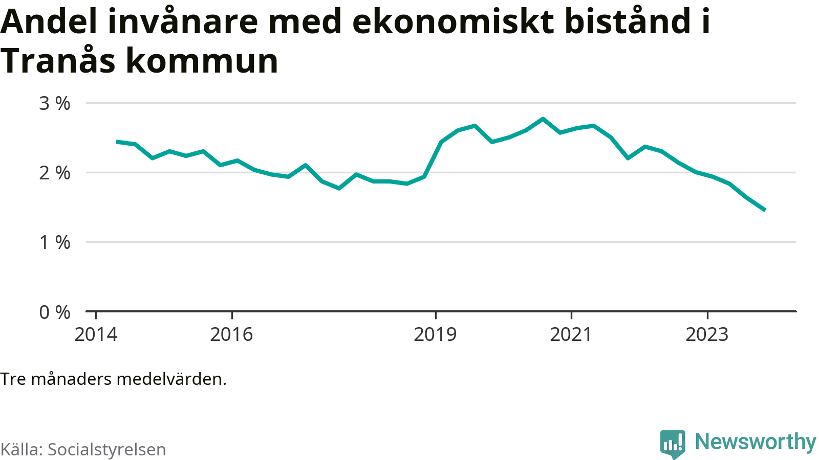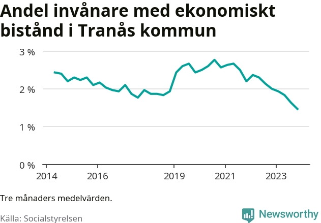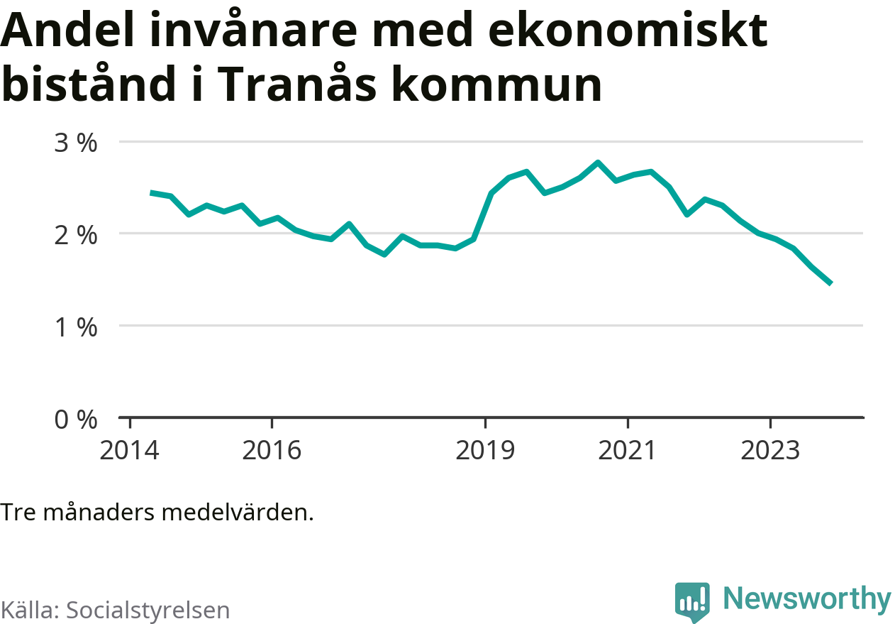 I genomsnitt 275 personer per månad fick ekonomiskt bistånd i Tranås kommun