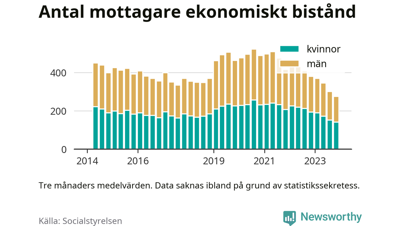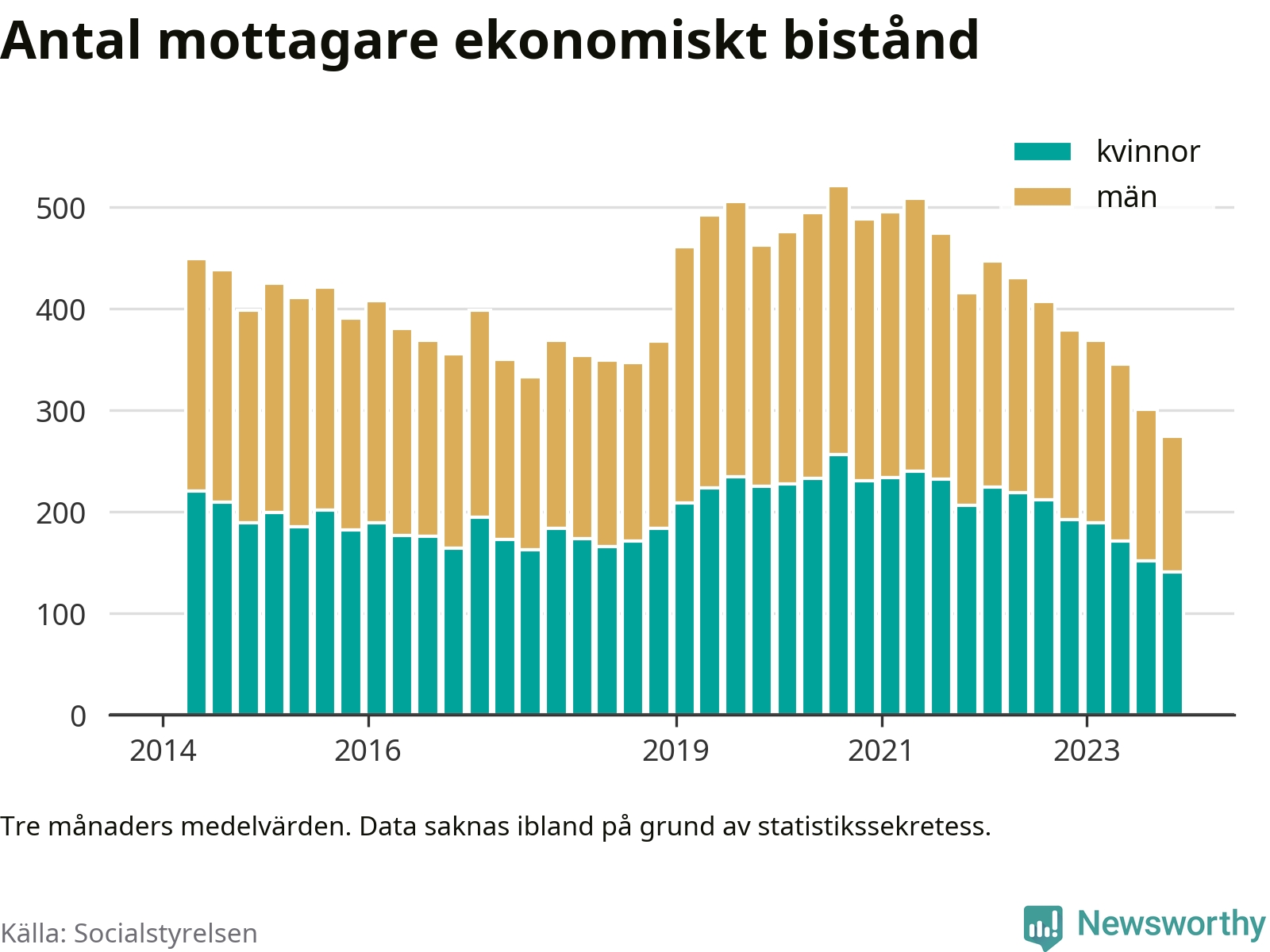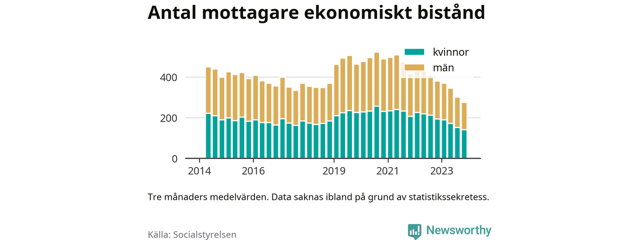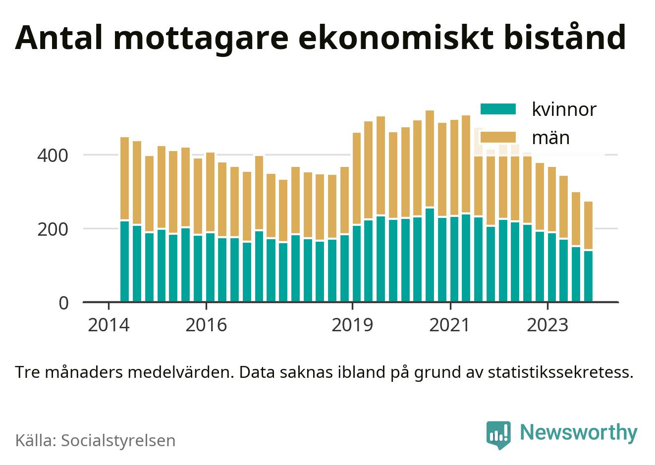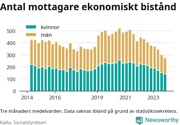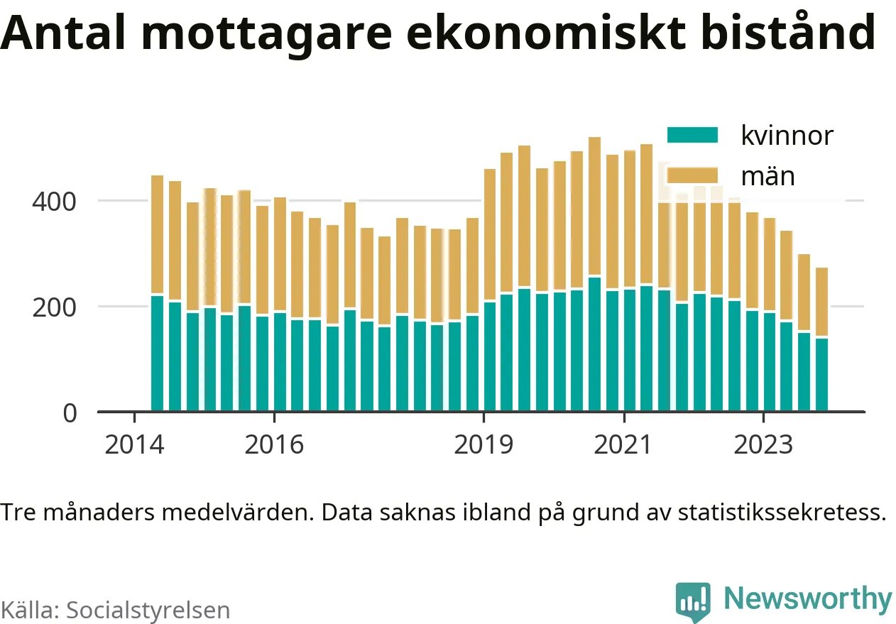 I genomsnitt 275 personer per månad fick ekonomiskt bistånd i Tranås kommun