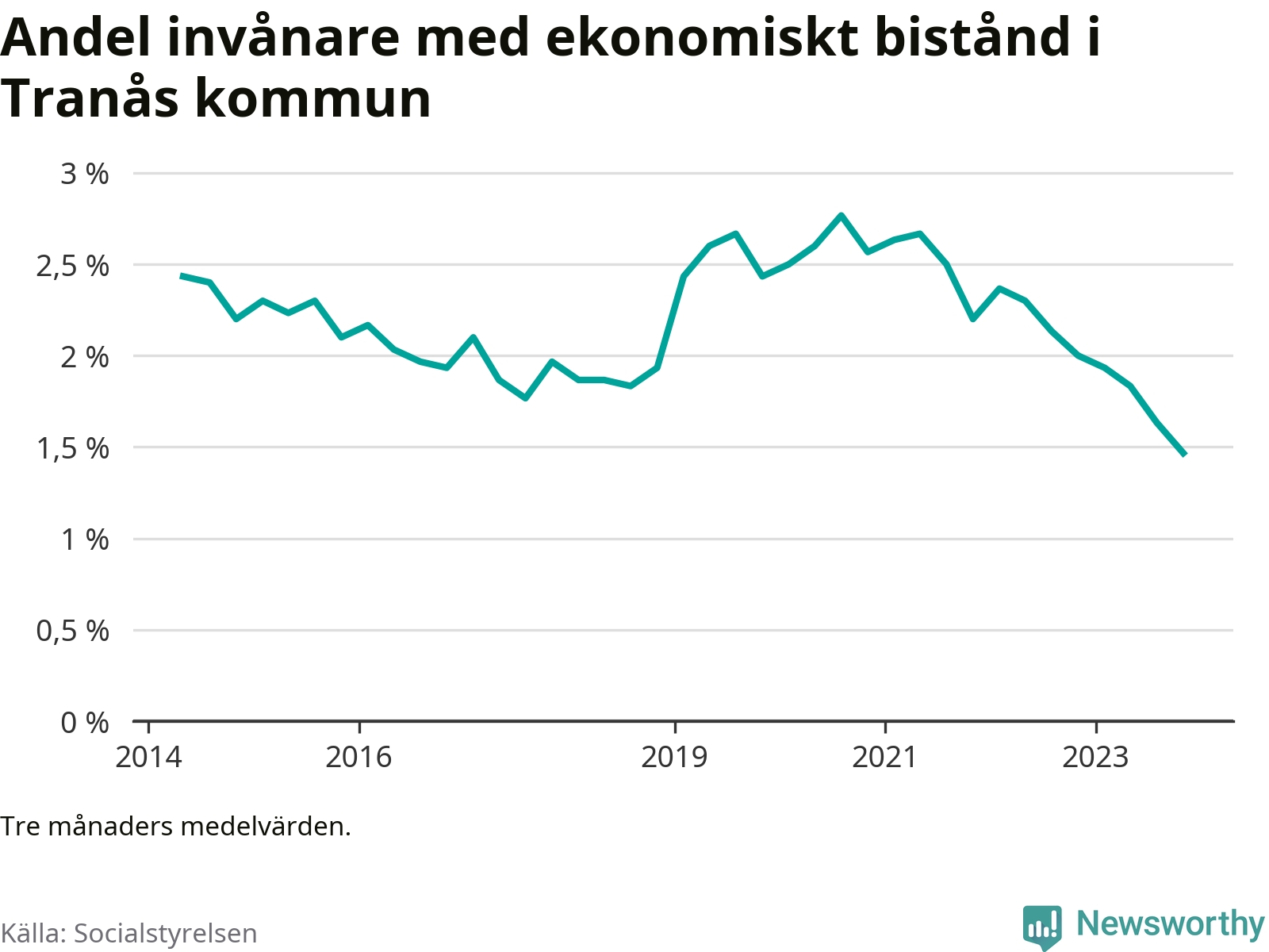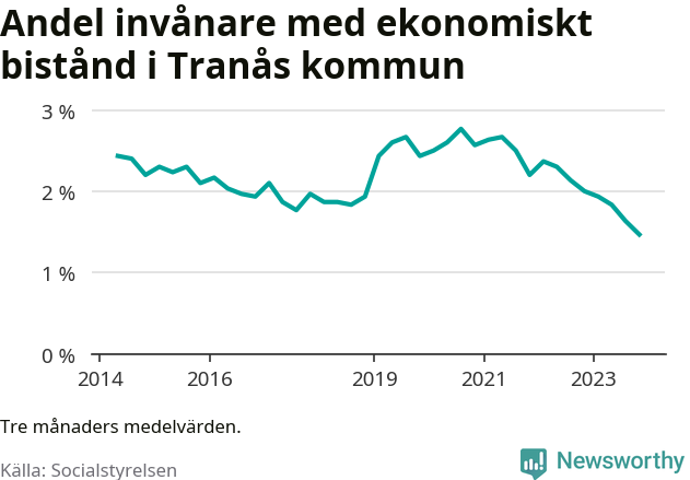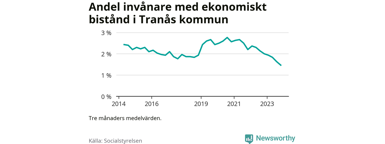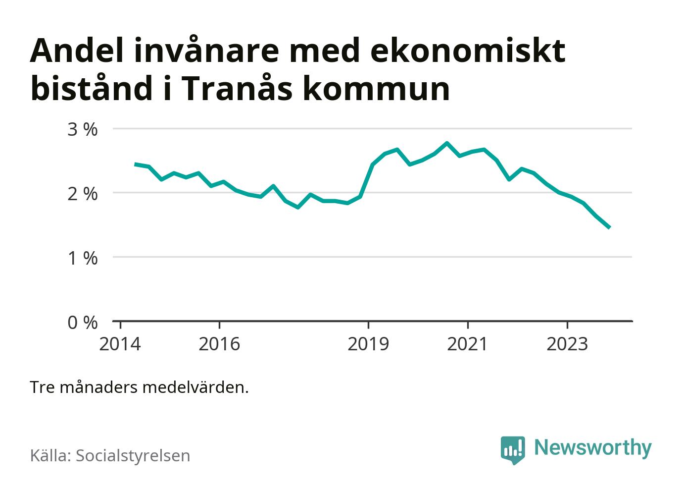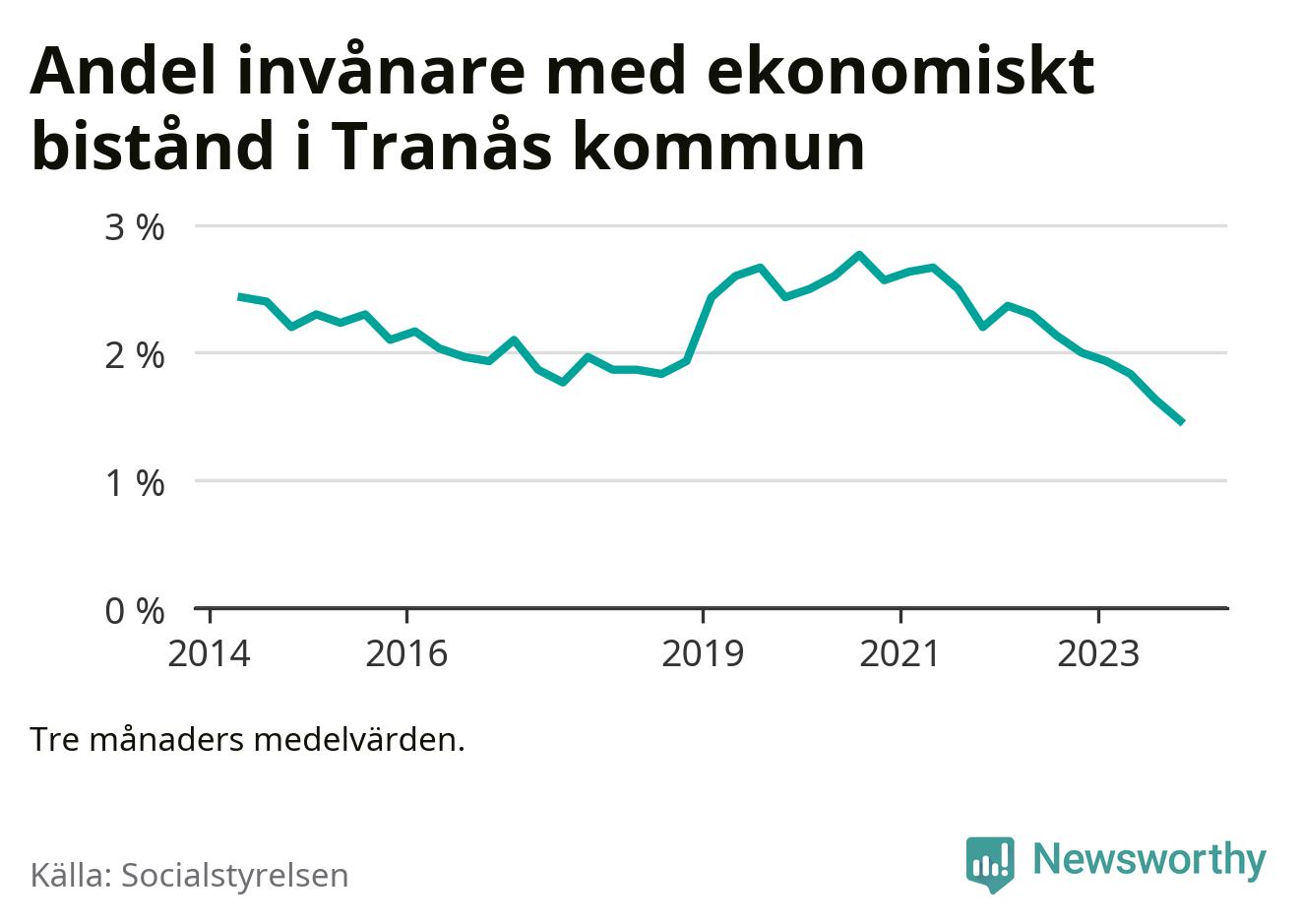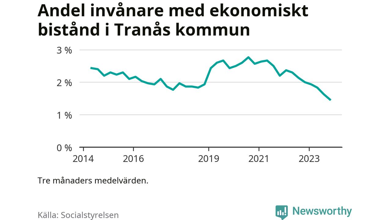 Andelen invånare med ekonomiskt bistånd i Tranås kommun