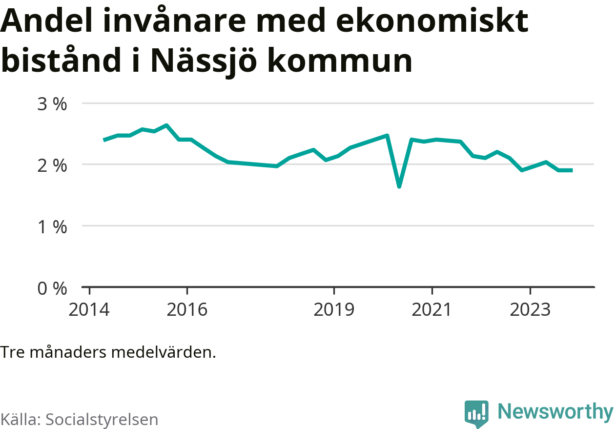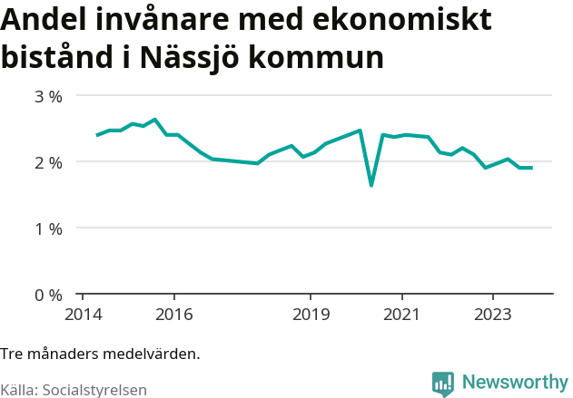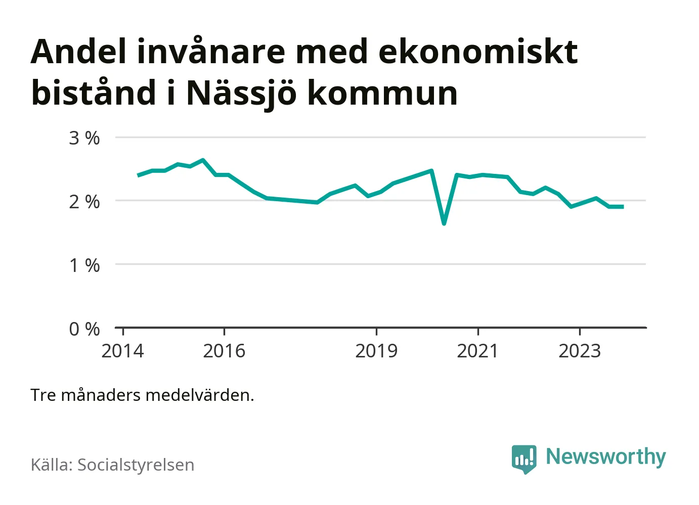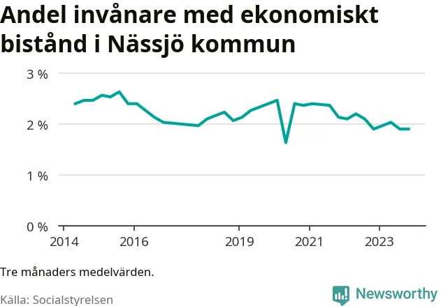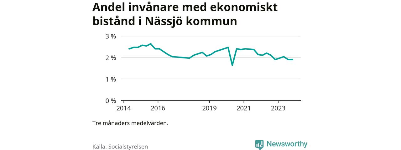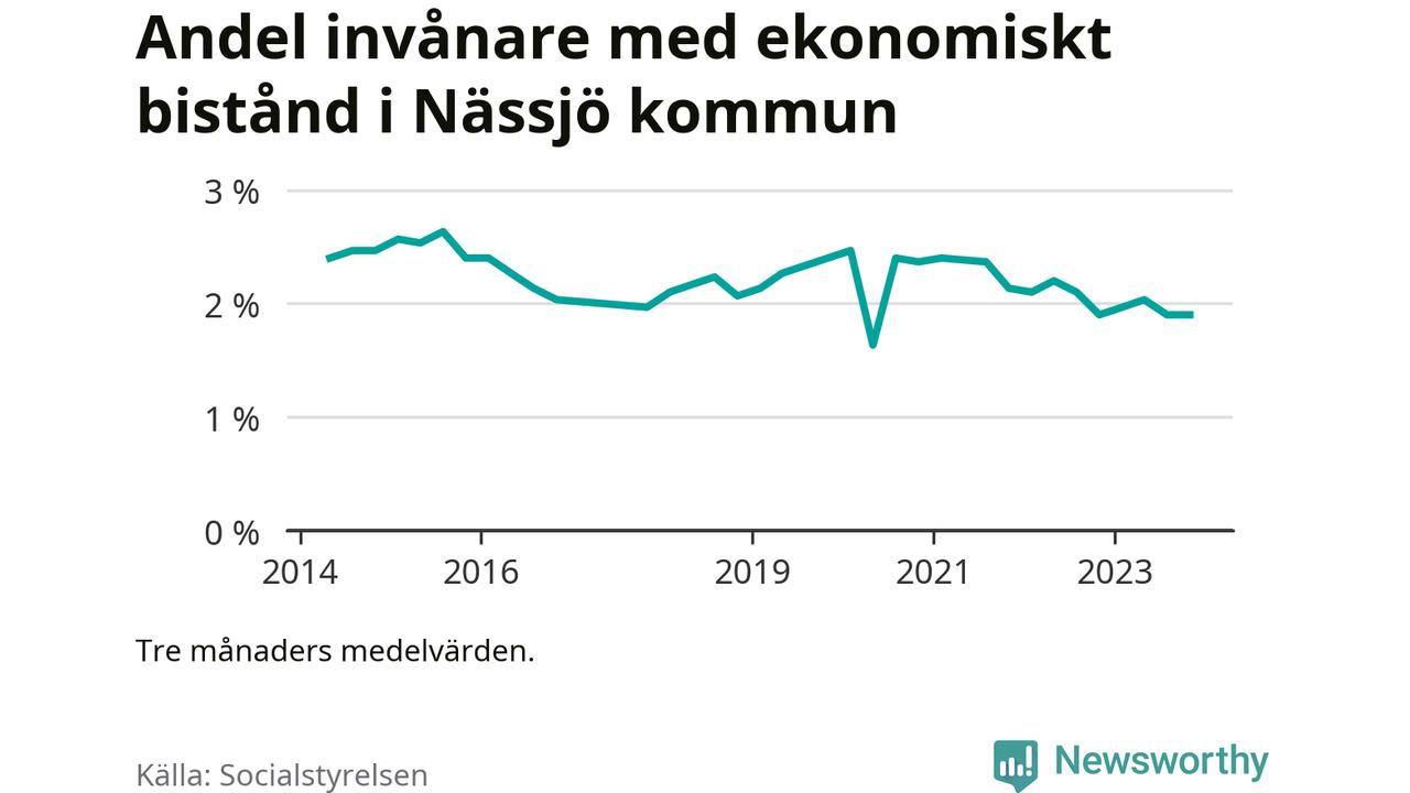 Andelen invånare med ekonomiskt bistånd i Nässjö kommun