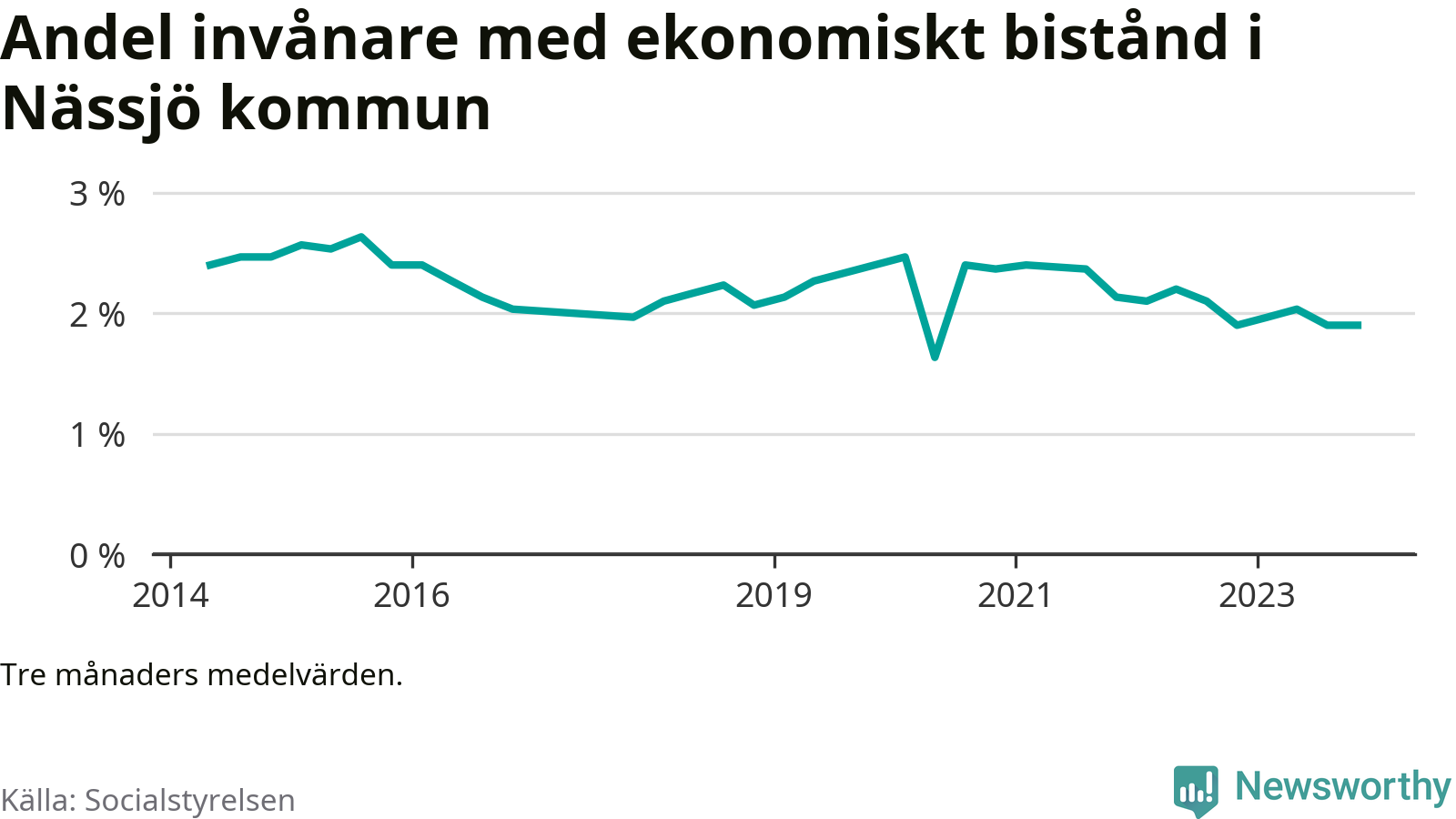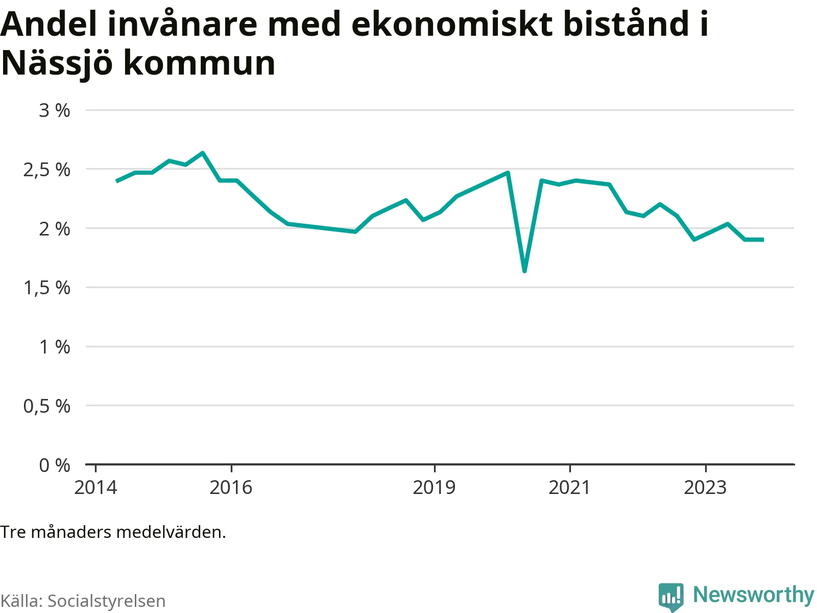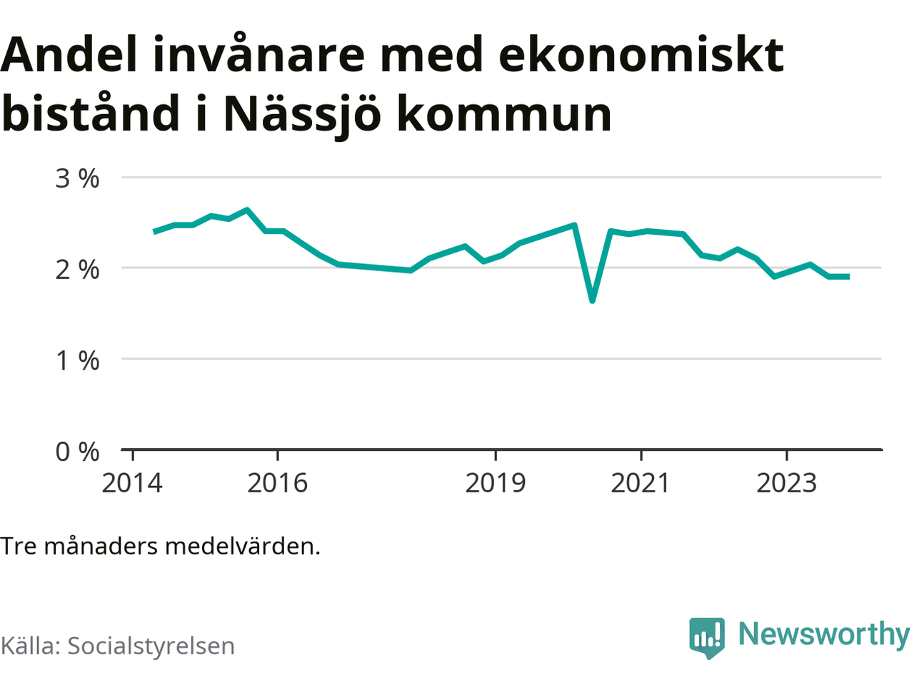 Andelen invånare med ekonomiskt bistånd i Nässjö kommun