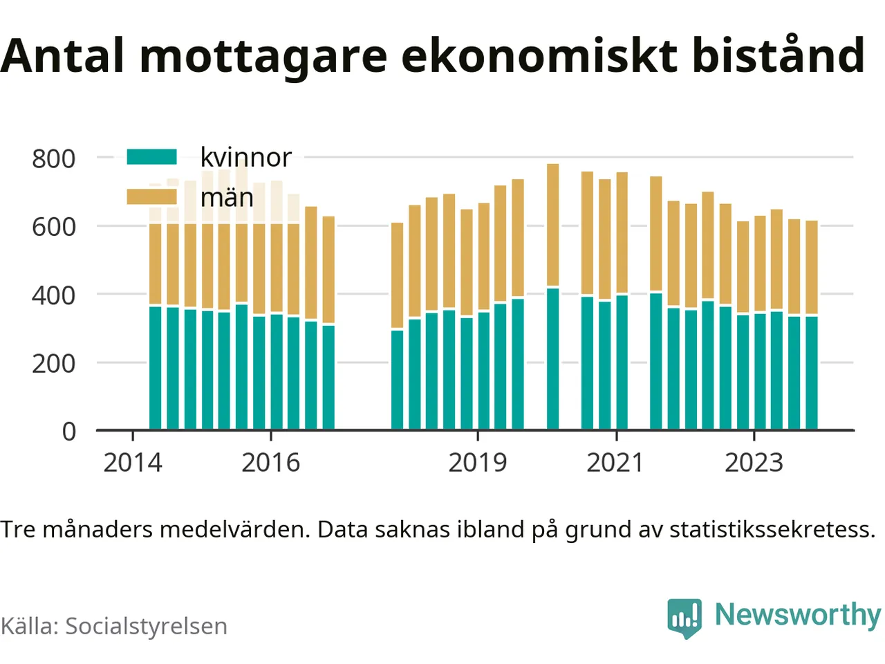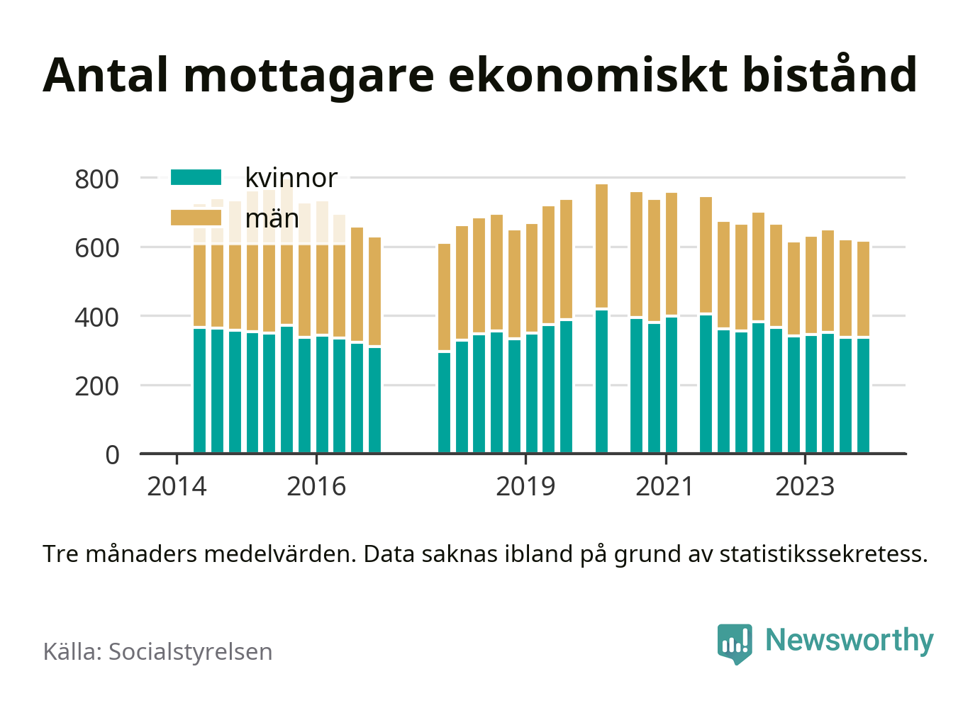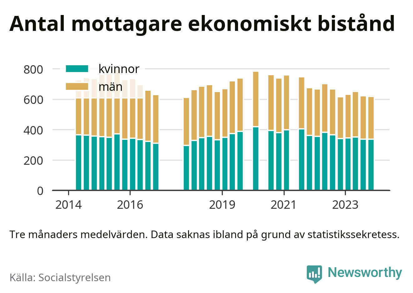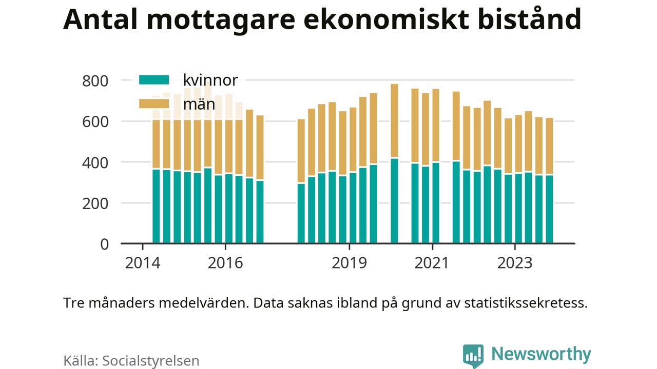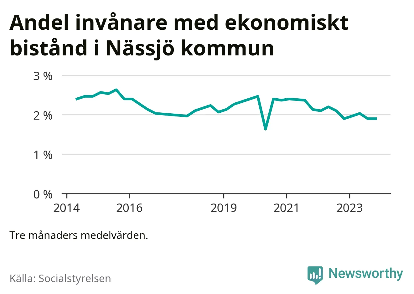 I genomsnitt 618 personer per månad fick ekonomiskt bistånd i Nässjö kommun