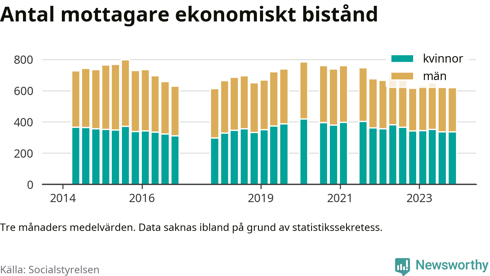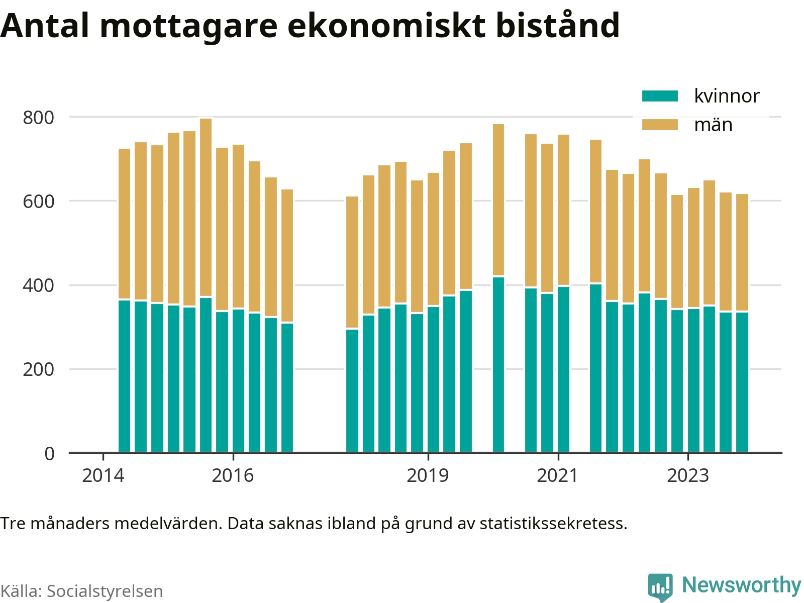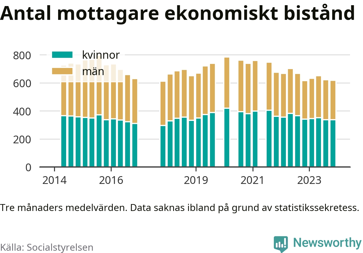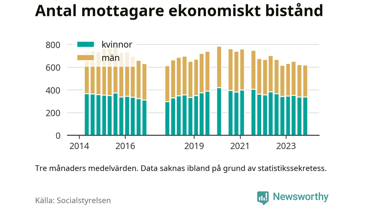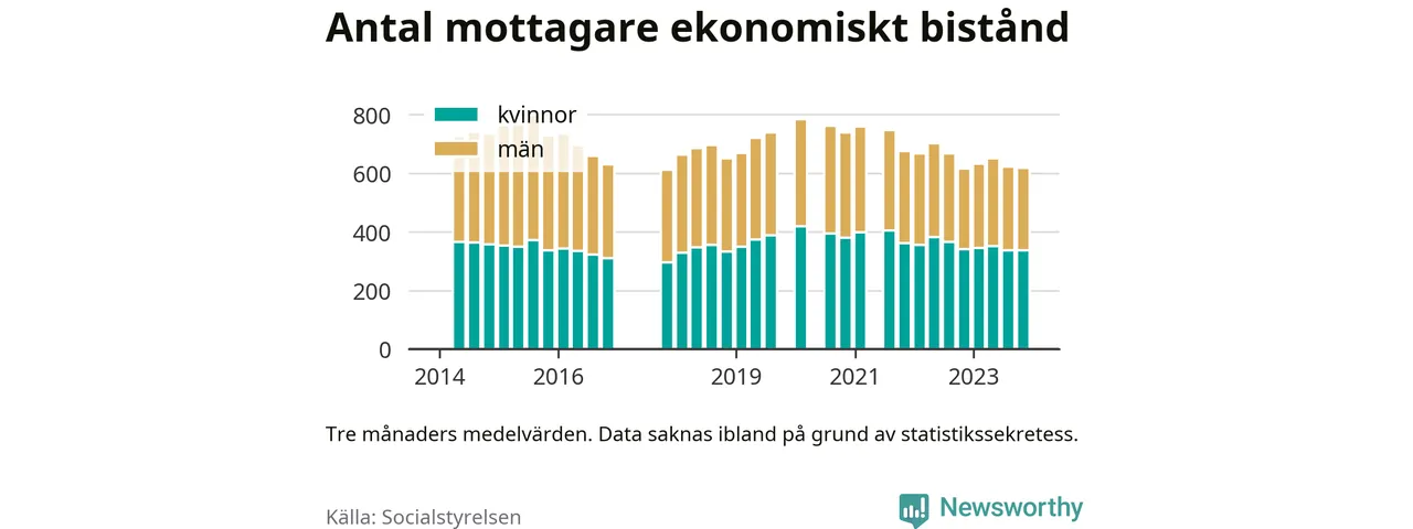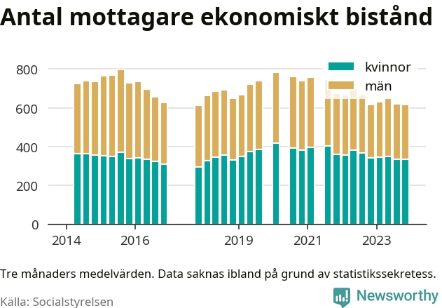 I genomsnitt 618 personer per månad fick ekonomiskt bistånd i Nässjö kommun