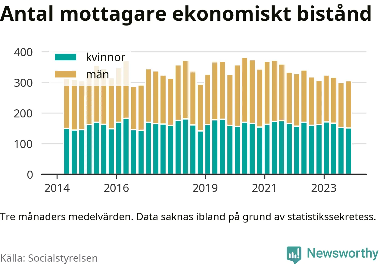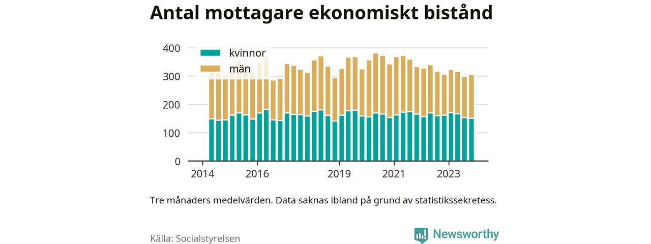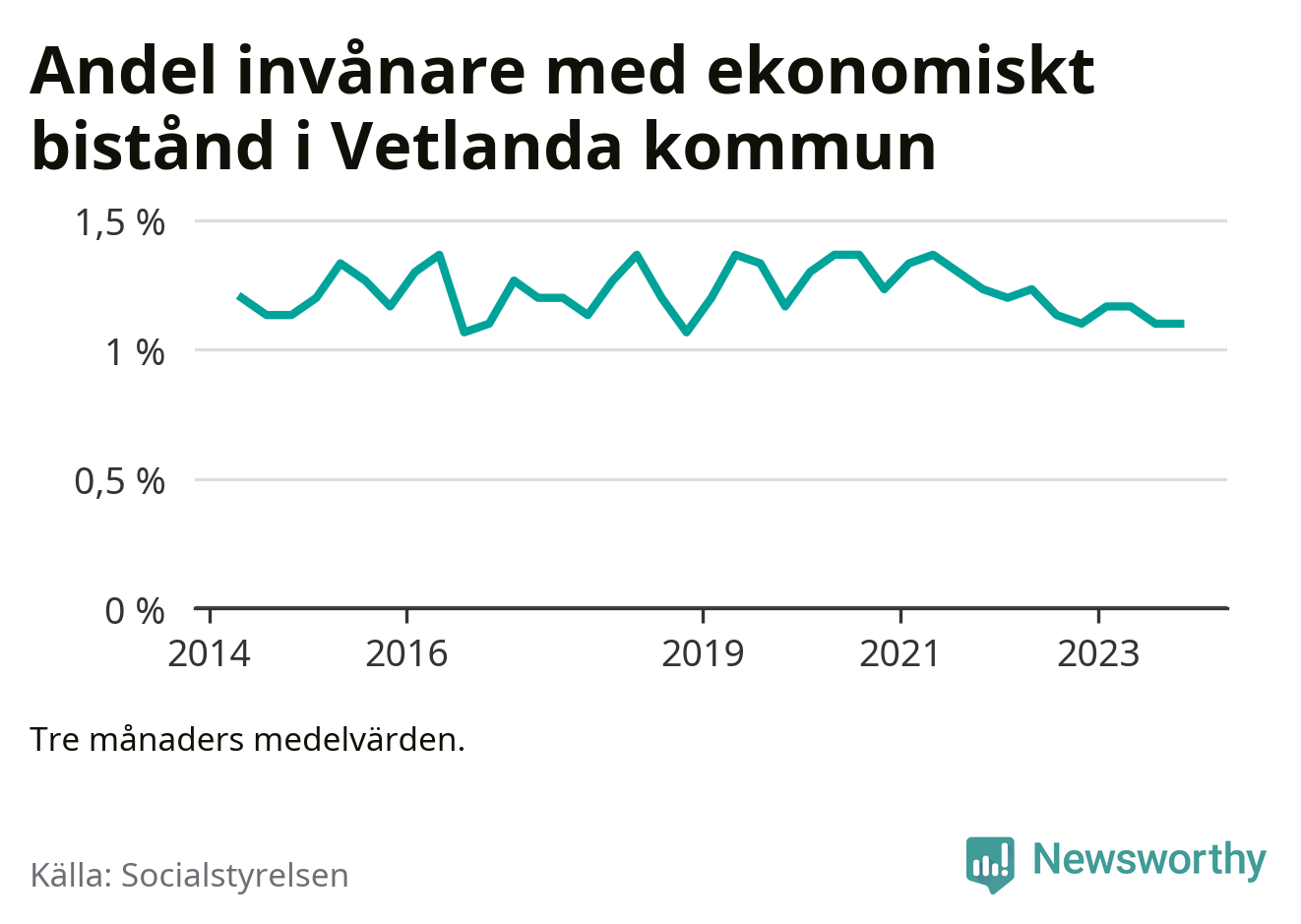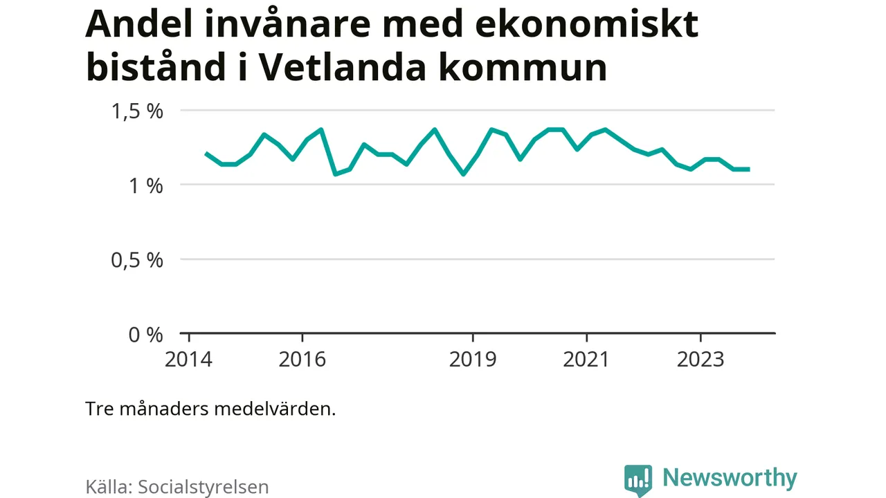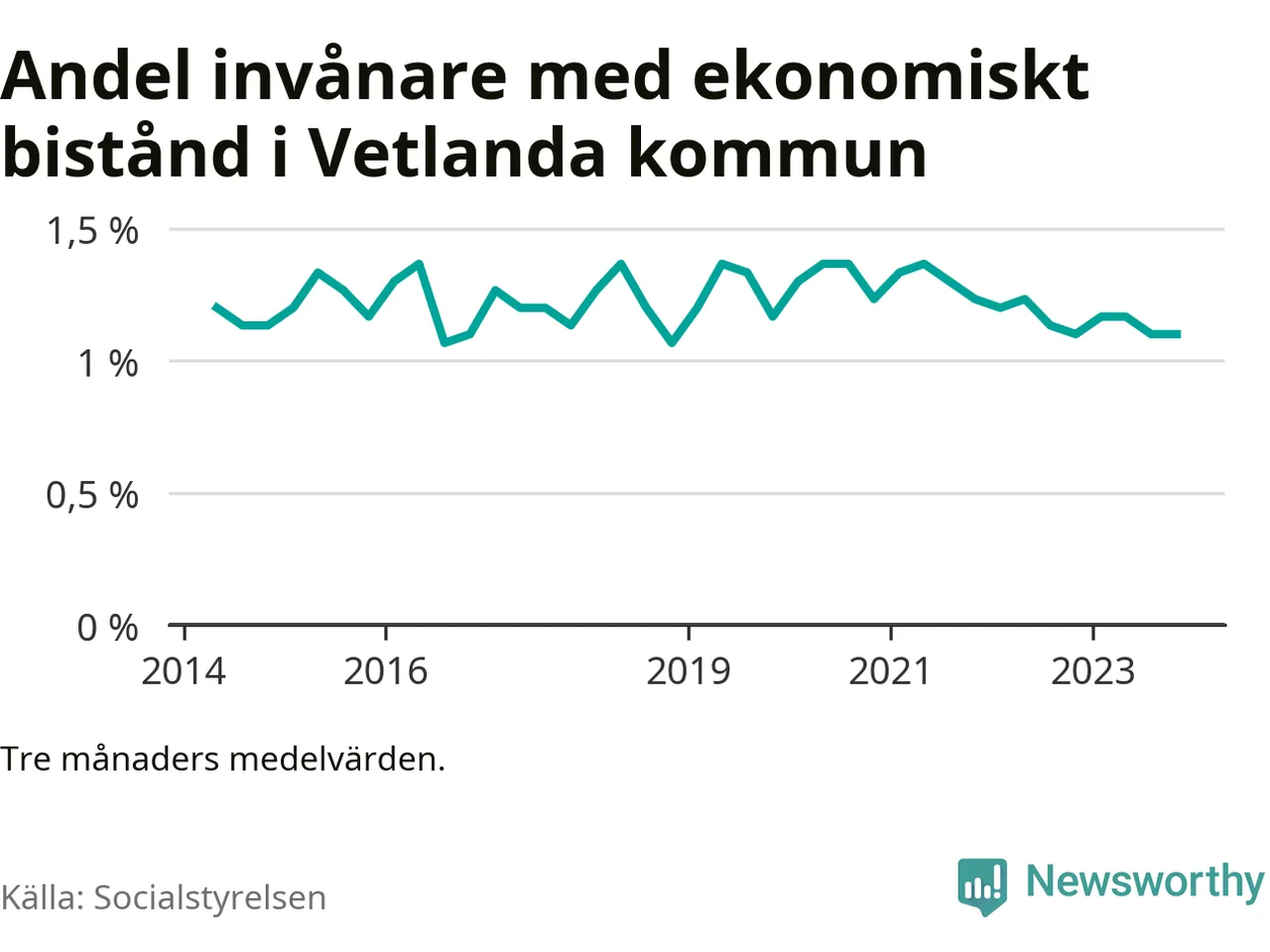 I genomsnitt 305 personer per månad fick ekonomiskt bistånd i Vetlanda kommun
