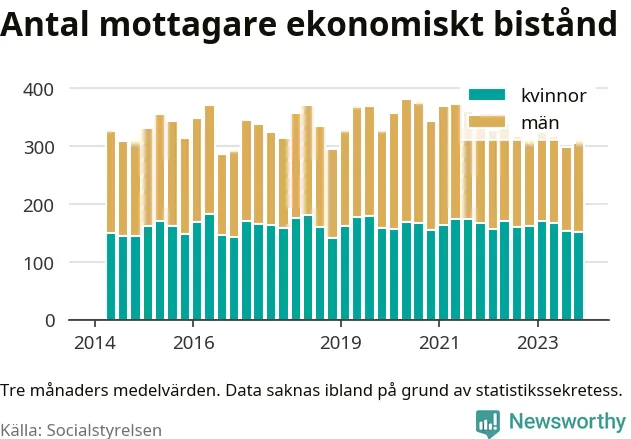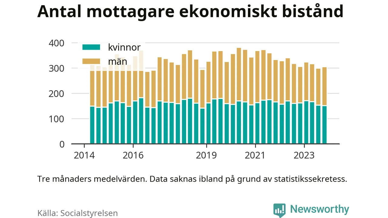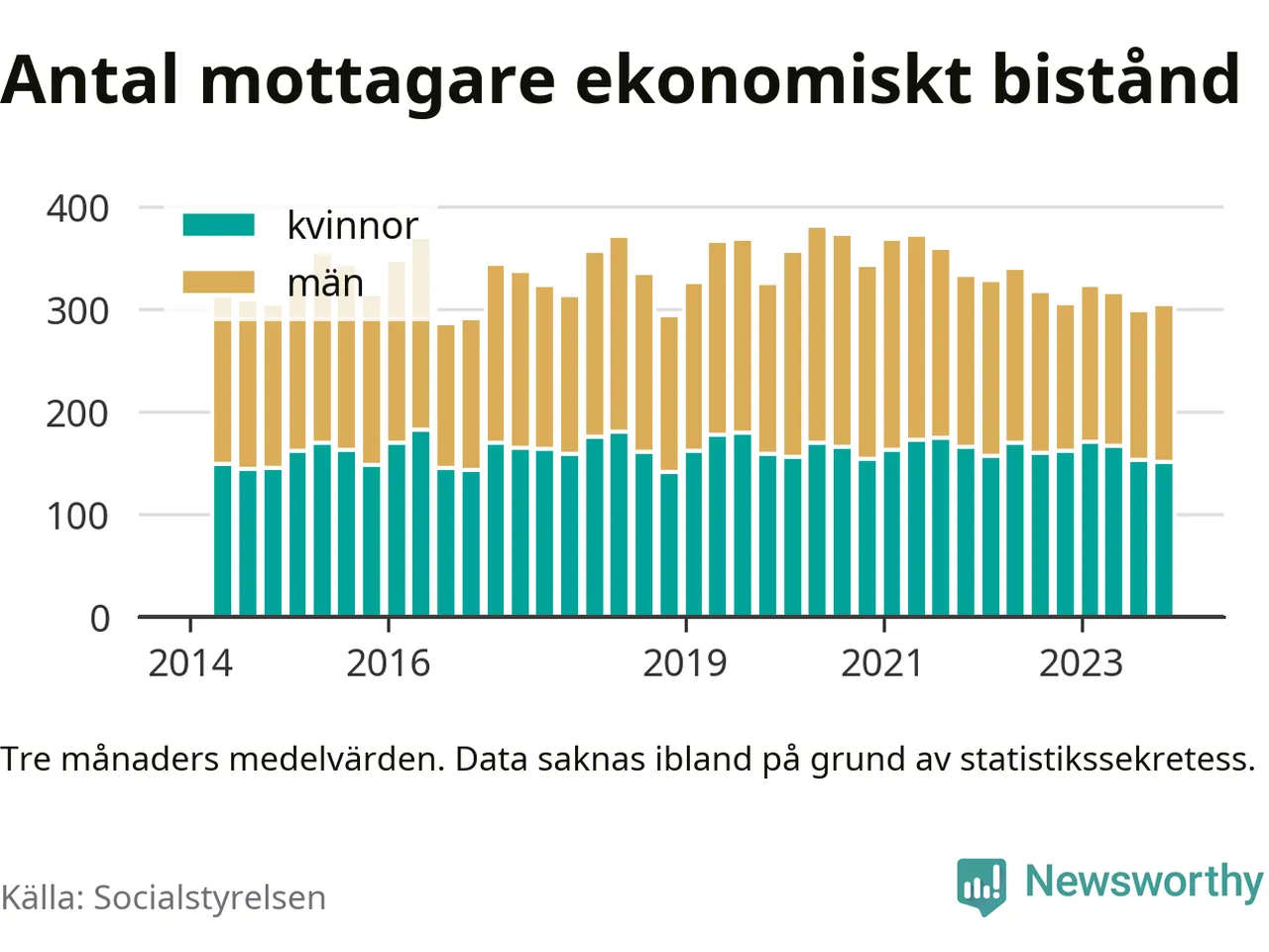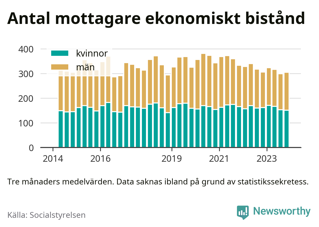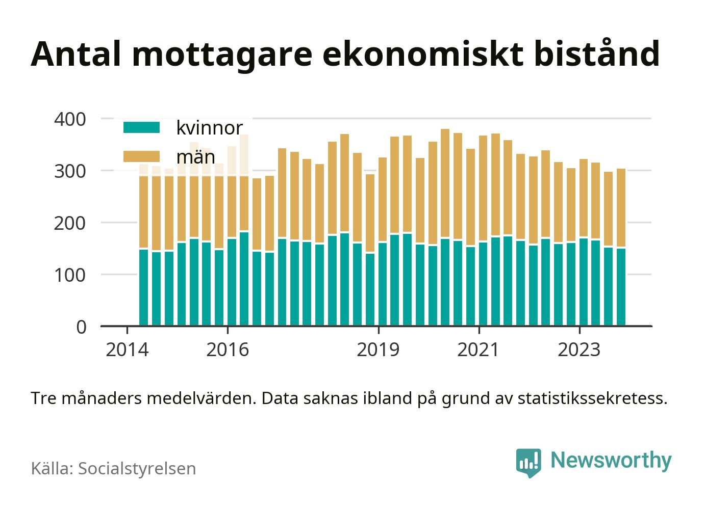 I genomsnitt 305 personer per månad fick ekonomiskt bistånd i Vetlanda kommun